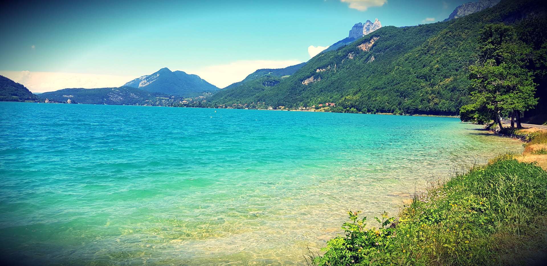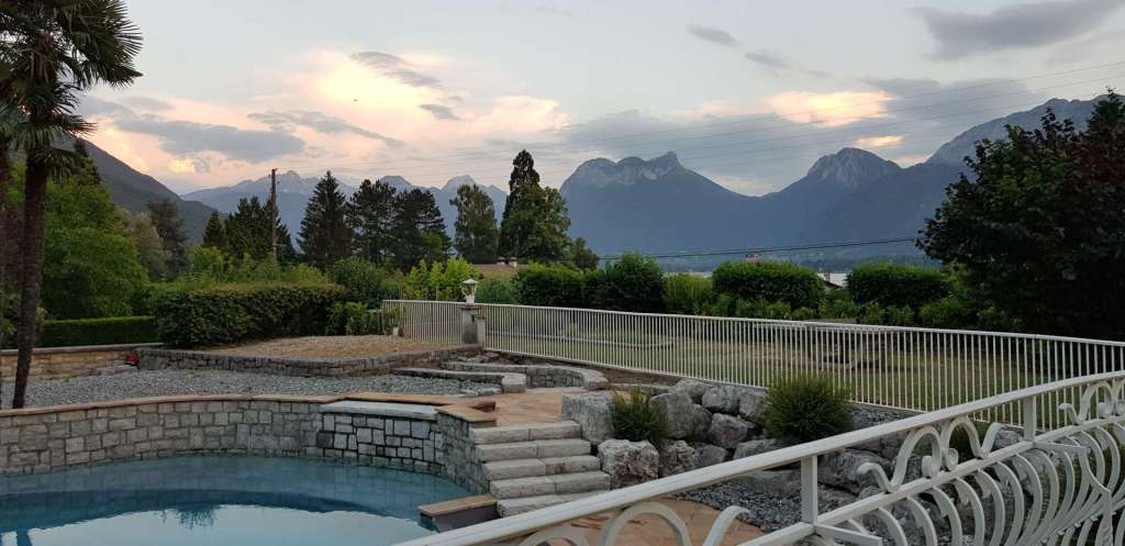 We spent a few minutes strolling round town admiring all the Tour de France paraphernalia that has already been put on display – whole bikes hanging from balconies, bunting in the colours of all the competition jerseys etc. The final treat of today was to stop off at Forclaz de Montmin on the way home, a brutally steep (I wouldn’t be able to climb it at my fittest) 5 mile climb. From the summit we had huge views along the length of Lake Annecy & could even make out our hotel on the valley floor, some 2,400 feet below. What a great way to round off a brilliant day of cycling!