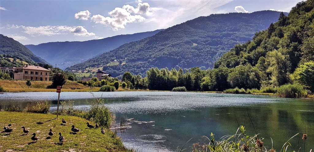 We retraced our wheels back to the Route de Roselend & then took another planned side road to check out the Lac de la Gittaz, which had been recommended by someone who had visited the region previously. Yes, it was pretty, but after all of today’s remarkable scenery, it didn’t stand out as much as it would on any other ride. However, I’m pleased we stopped to see it.
