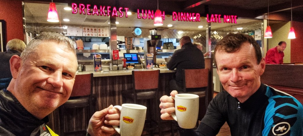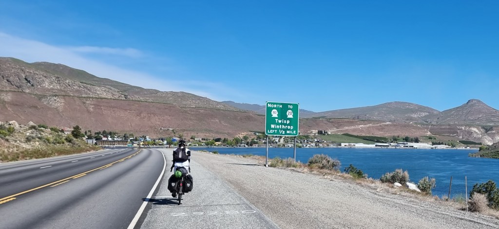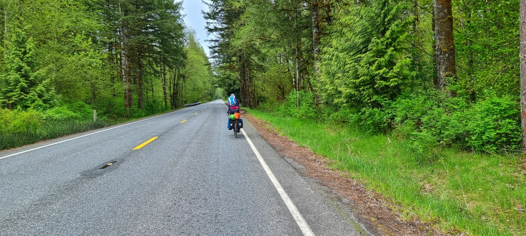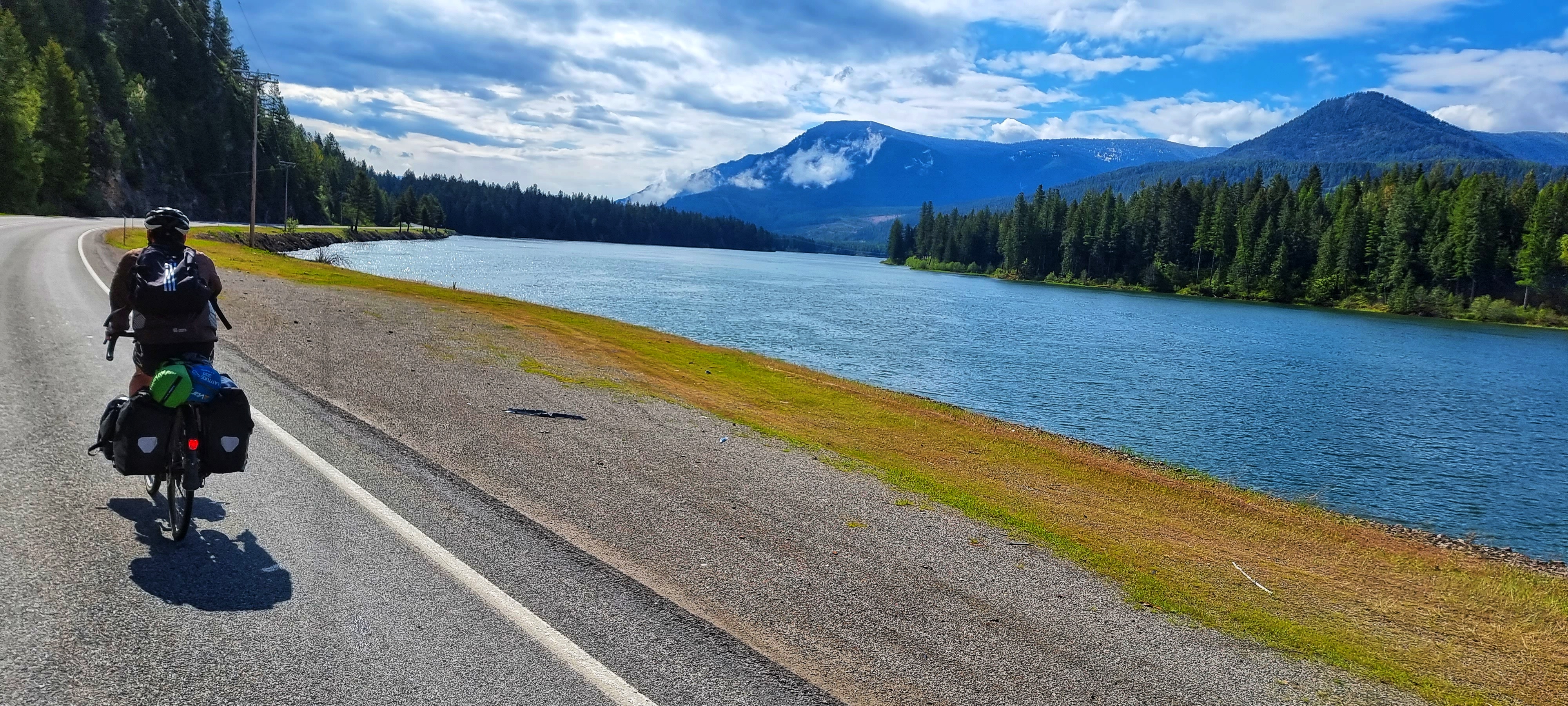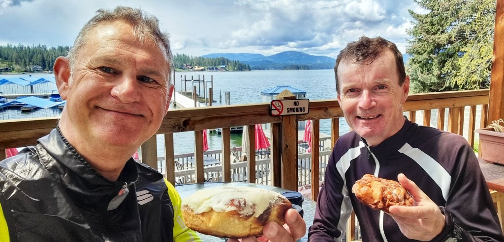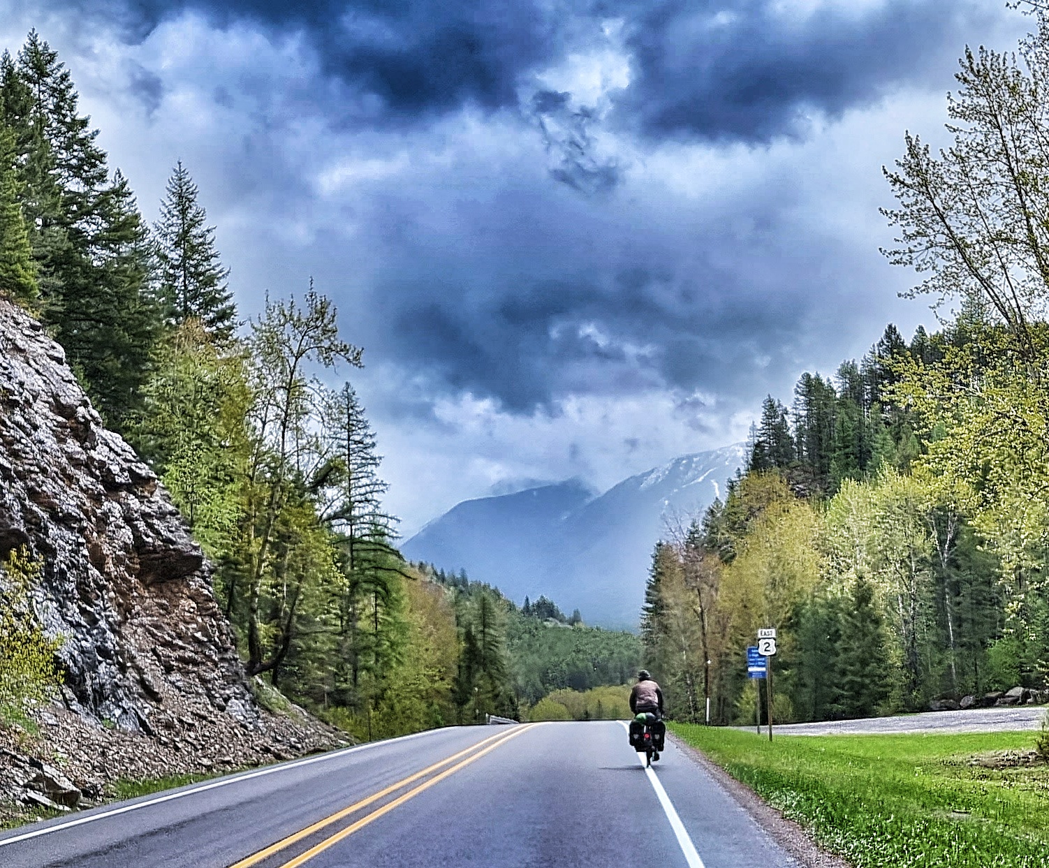 As we reached Apgar we took the campground loop road & then our own cycle path – although it had rained overnight, at this point we were still avoiding the rain! Leaving GNP, we stopped in West Glacier Village for breakfast, as we weren’t quite sure what (if any) our options would be on today’s route & we were still over 50 miles from East Glacier Village.