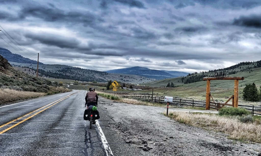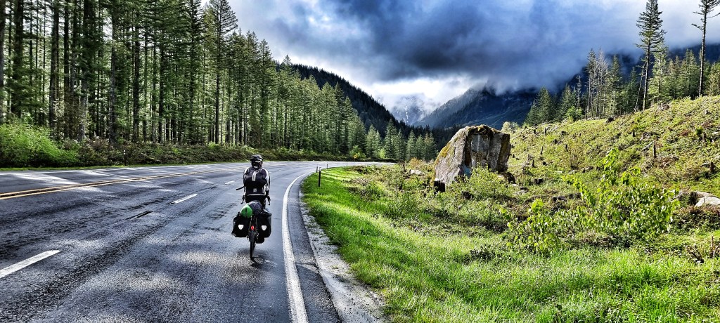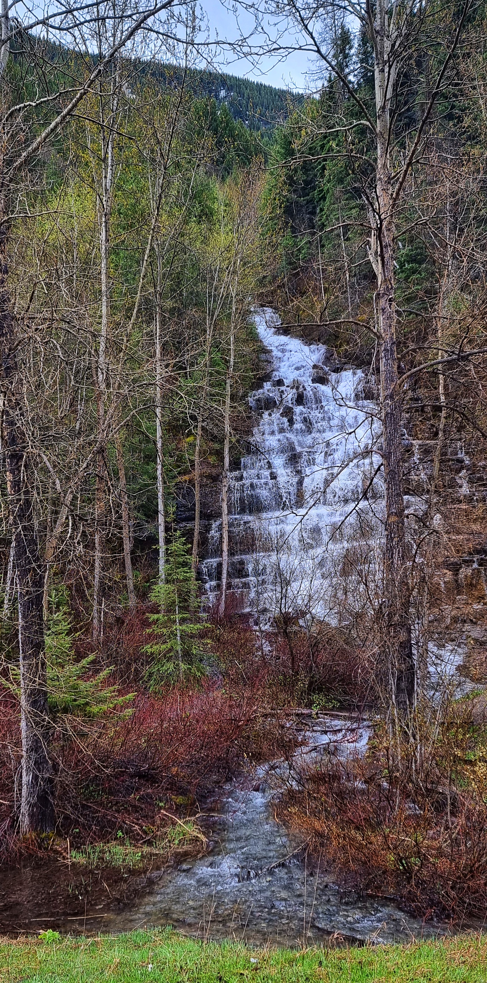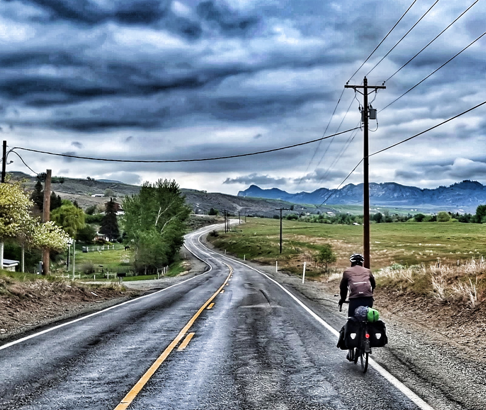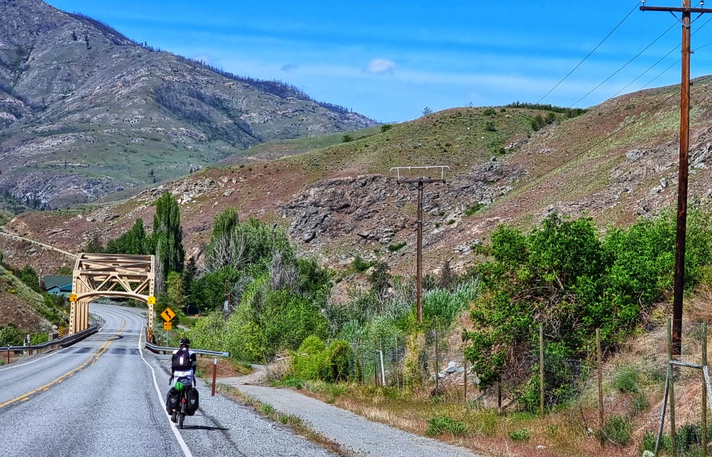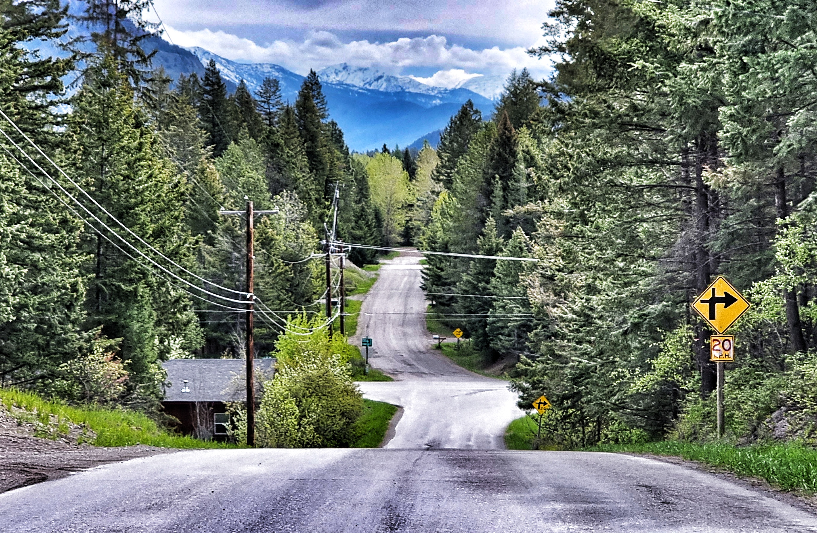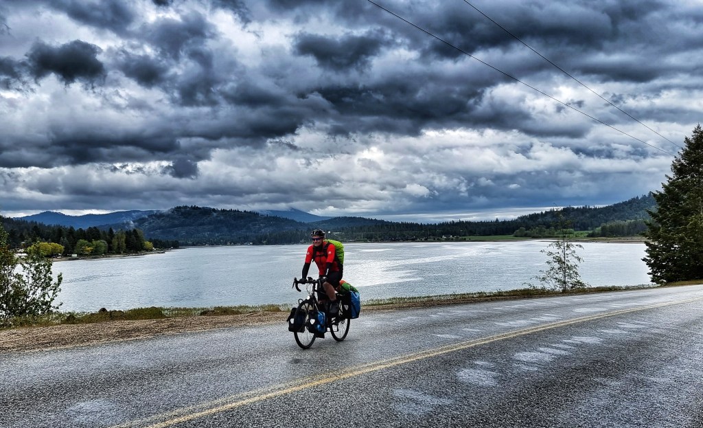 While we were relaxing inside, the heavens opened outside! Luckily by the time we remounted the steel steeds, we only had to deal with light rain & the short, sharp climb as soon as we joined the US 2 soon warmed us up! In no time we had big views over the river & railroad below, but then almost immediately gave all those hard fought for feet back! At Nimrod we left the Flathead river behind us & started following the course of the babbling Bear Creek.