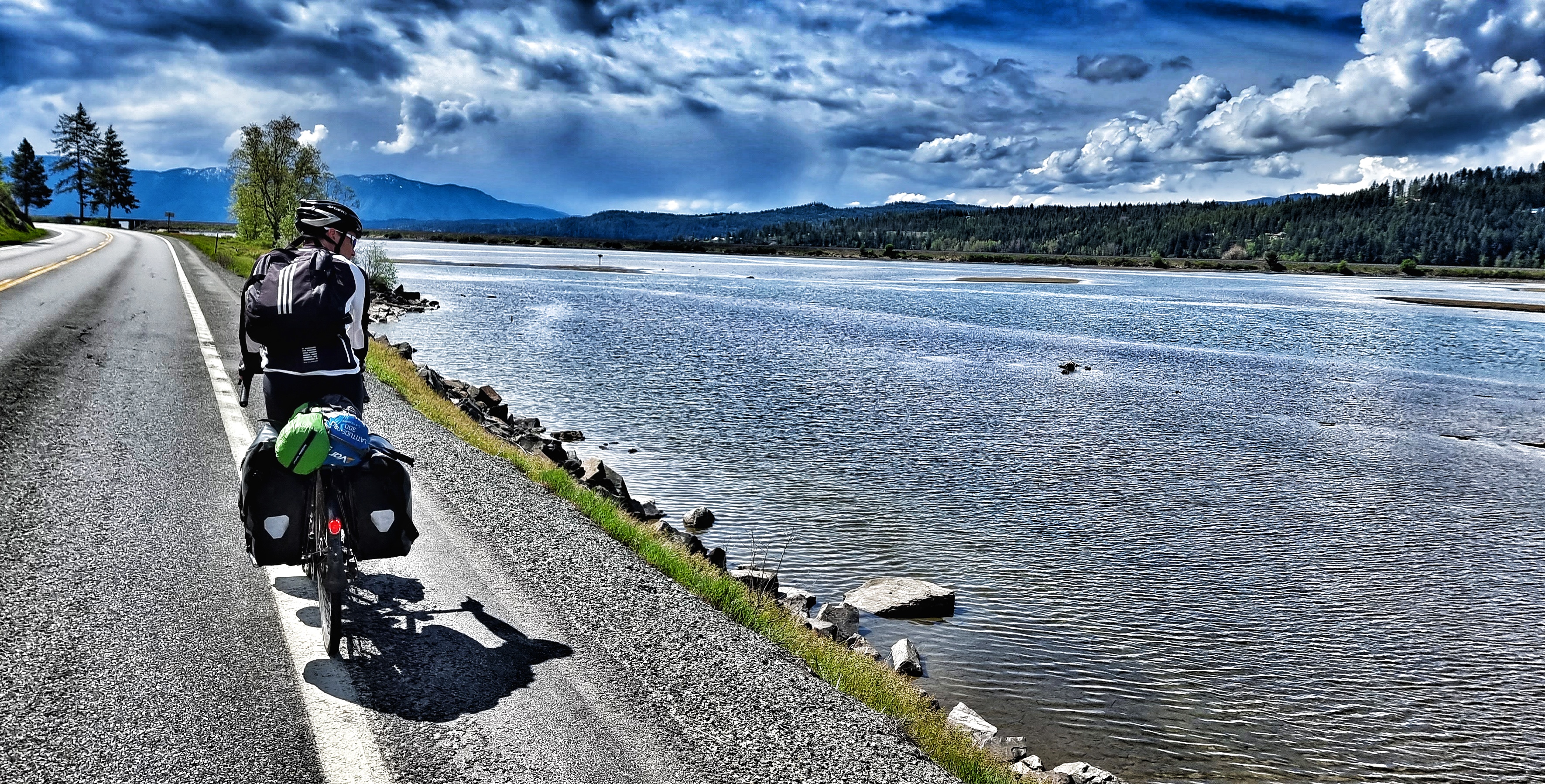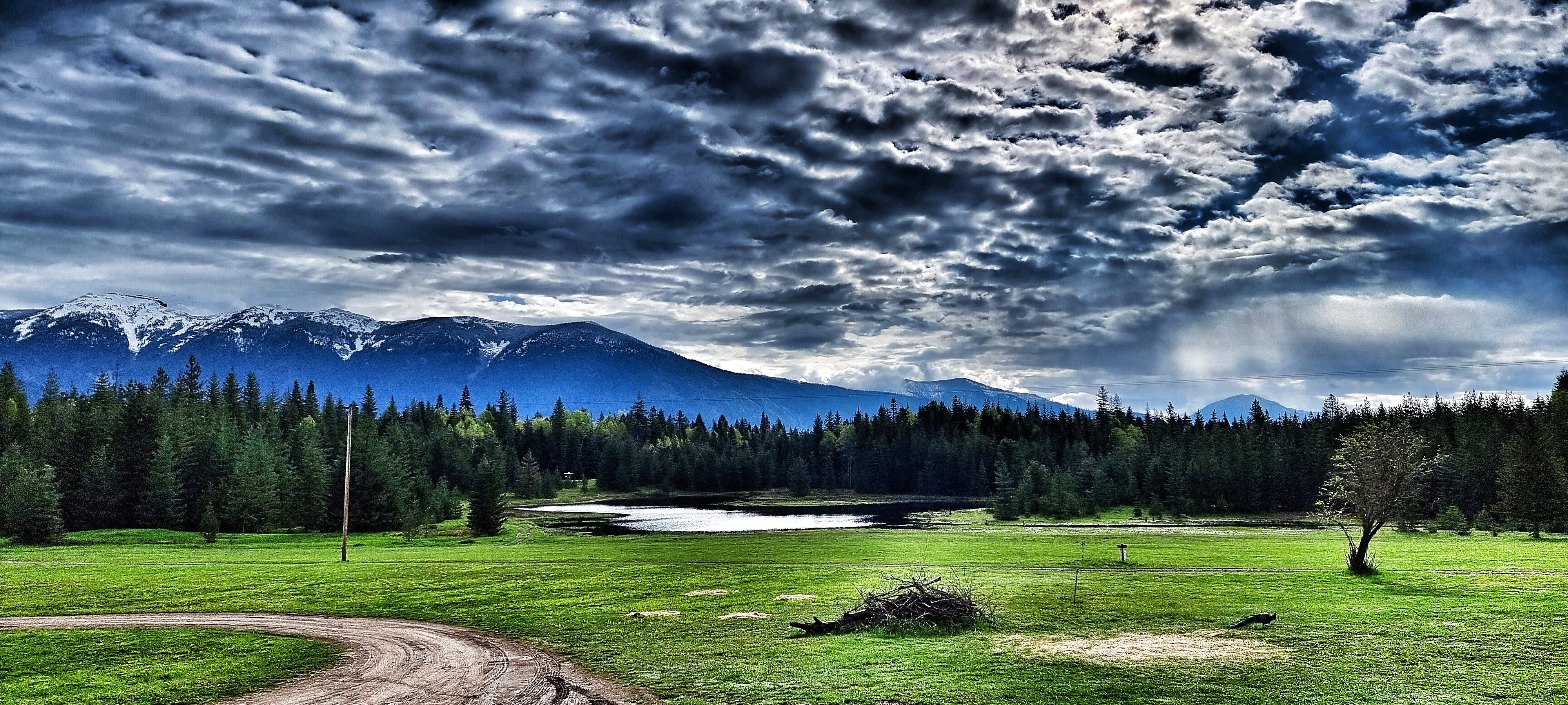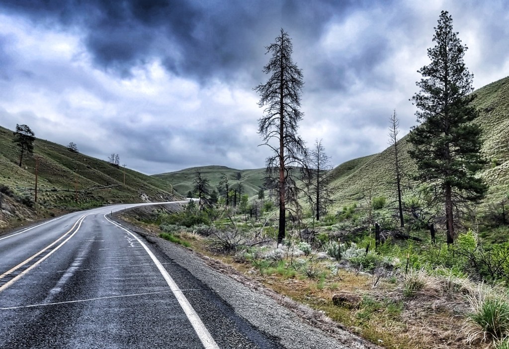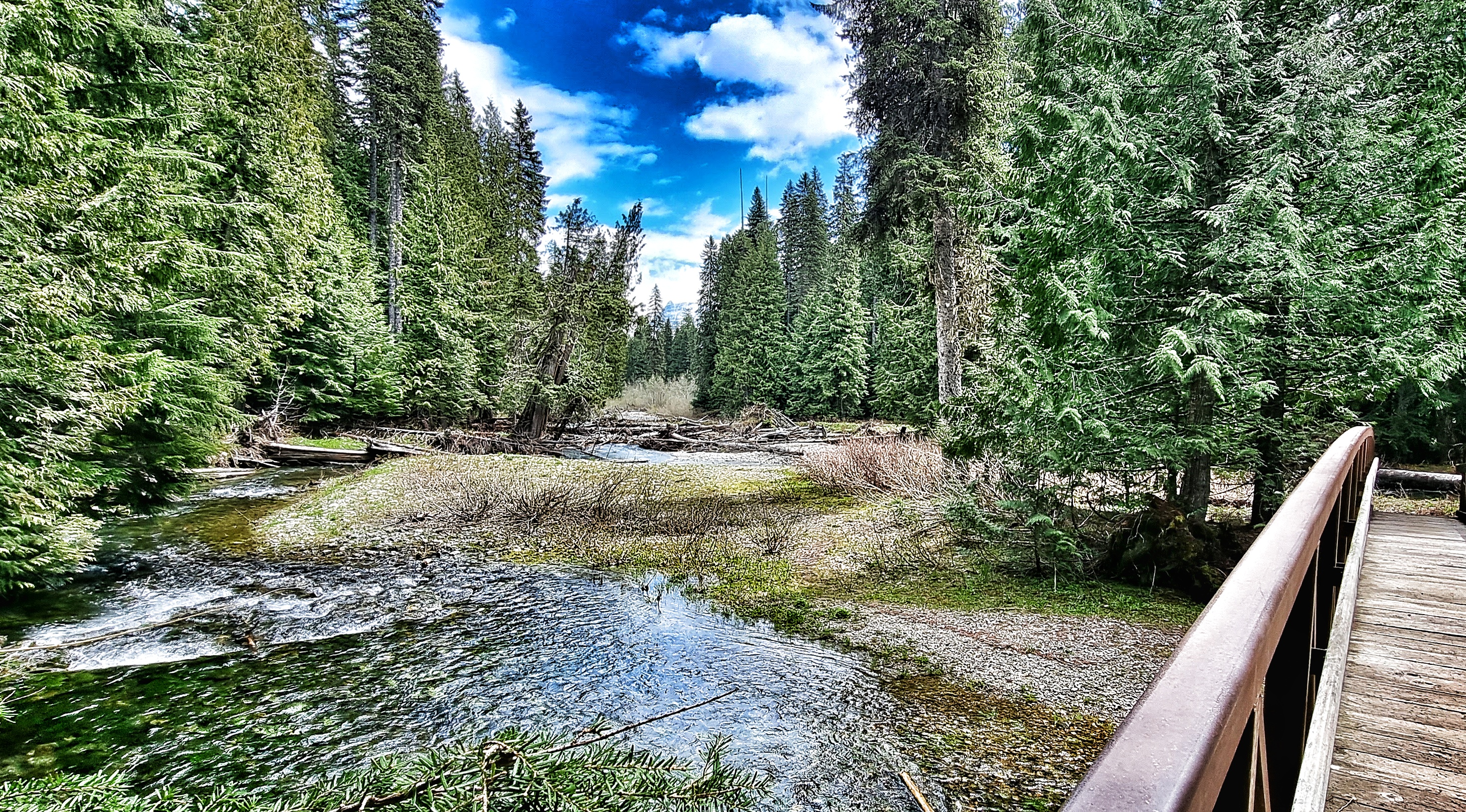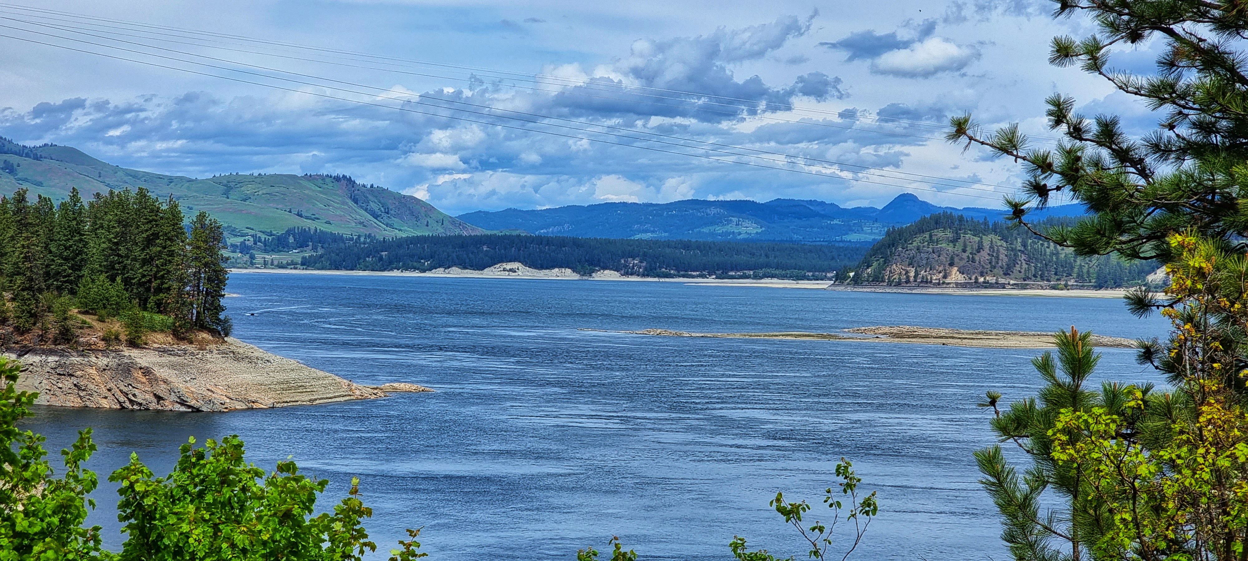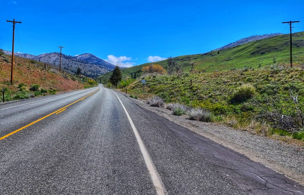 While we were relaxing inside, the heavens opened outside! Luckily by the time we remounted the steel steeds, we only had to deal with light rain & the short, sharp climb as soon as we joined the US 2 soon warmed us up! In no time we had big views over the river & railroad below, but then almost immediately gave all those hard fought for feet back! At Nimrod we left the Flathead river behind us & started following the course of the babbling Bear Creek.