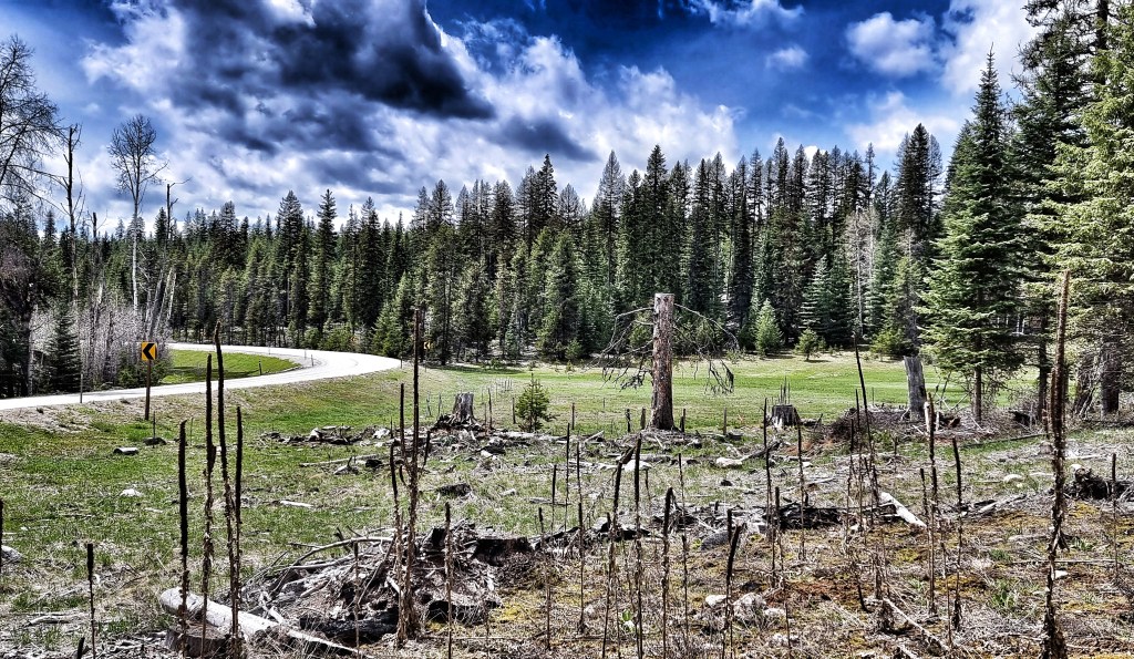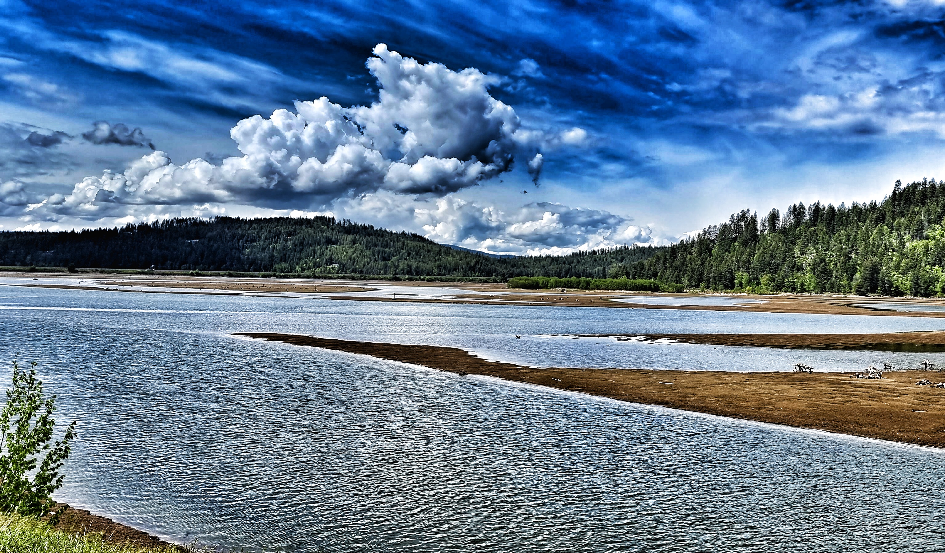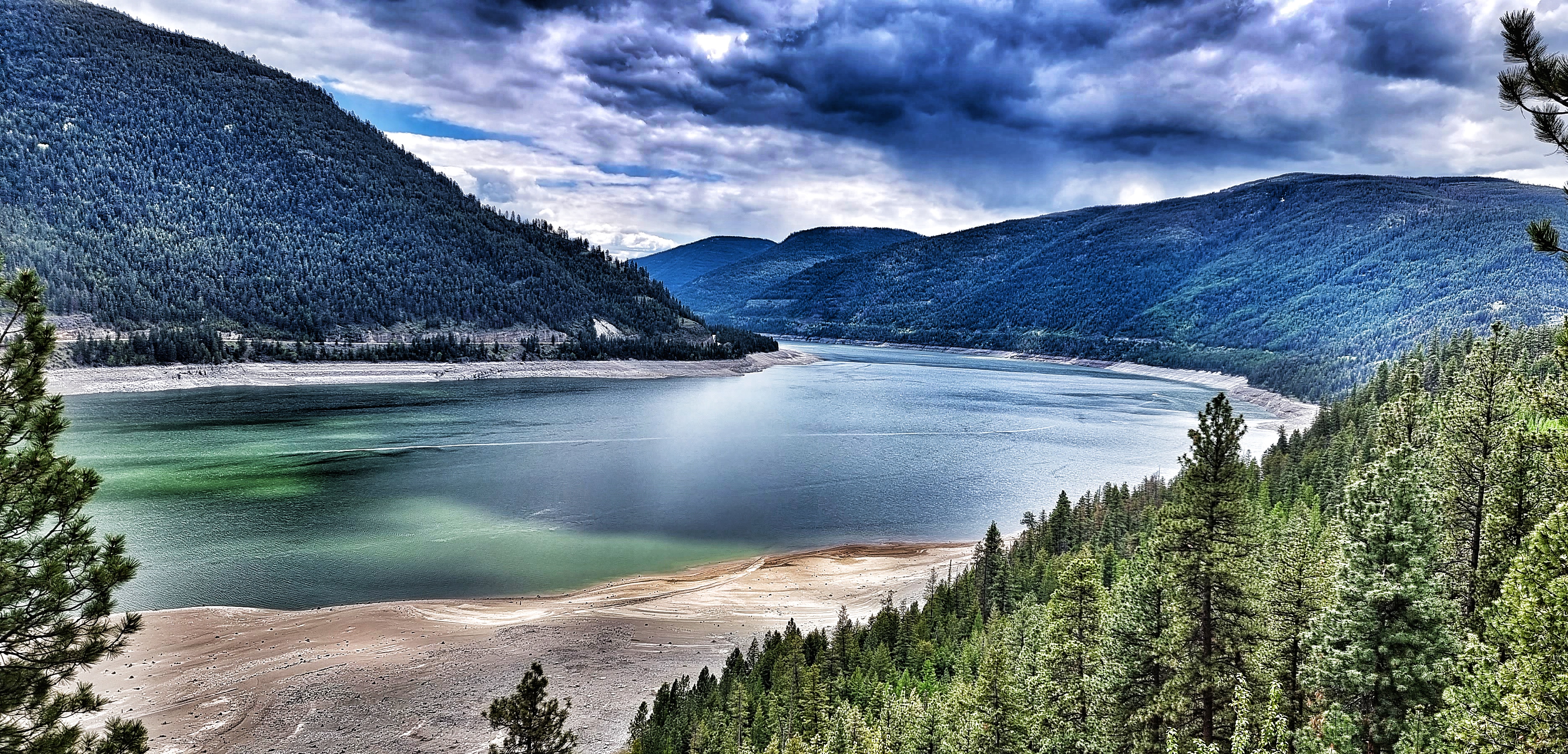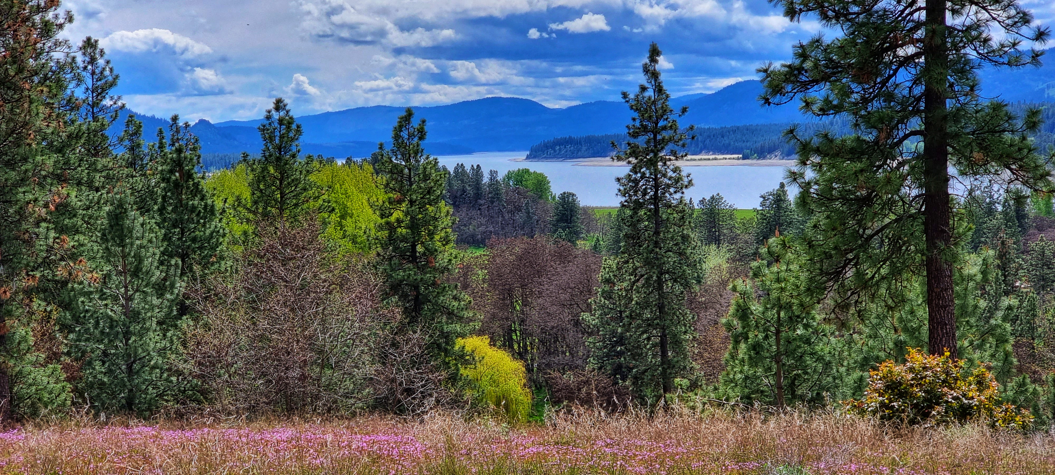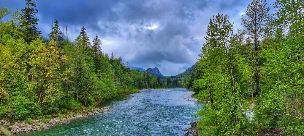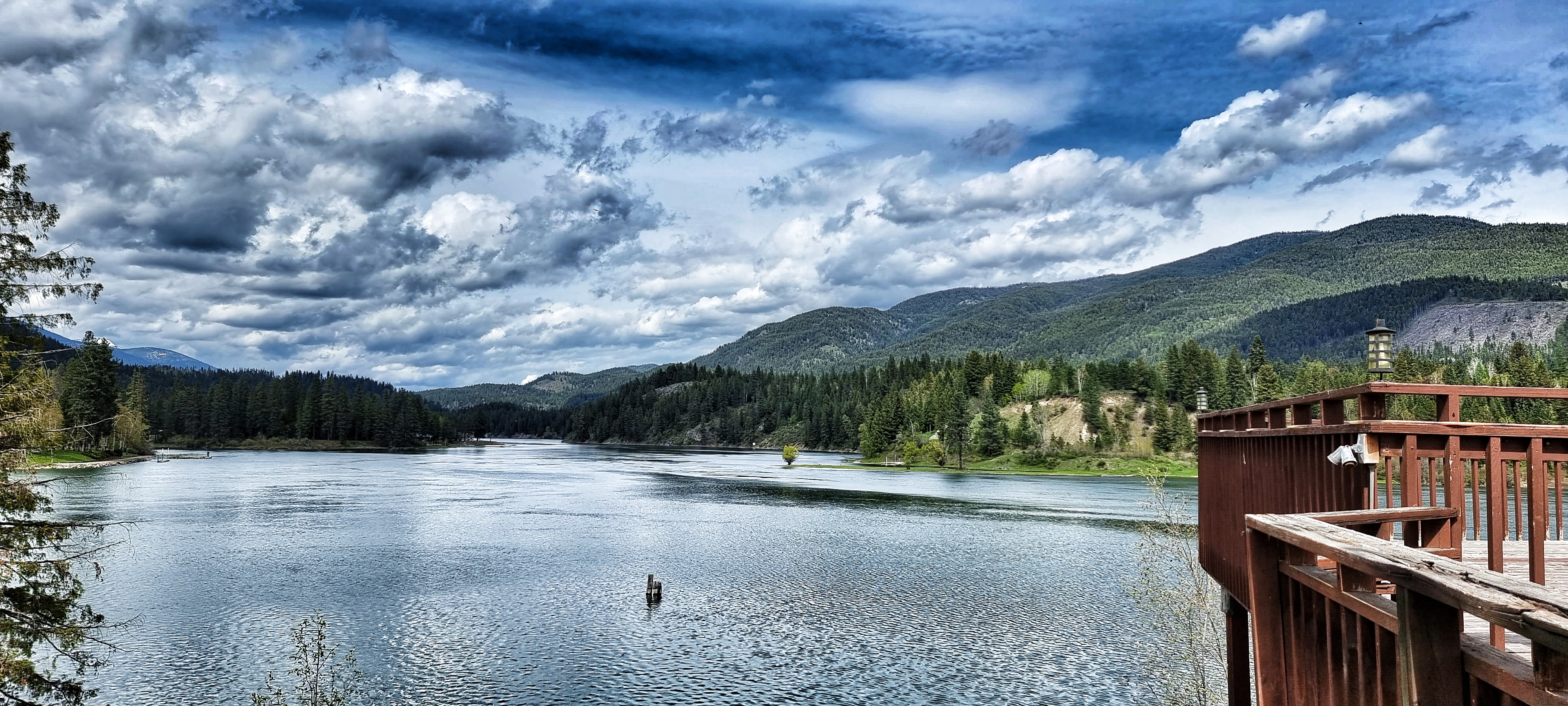 While we were relaxing inside, the heavens opened outside! Luckily by the time we remounted the steel steeds, we only had to deal with light rain & the short, sharp climb as soon as we joined the US 2 soon warmed us up! In no time we had big views over the river & railroad below, but then almost immediately gave all those hard fought for feet back! At Nimrod we left the Flathead river behind us & started following the course of the babbling Bear Creek.