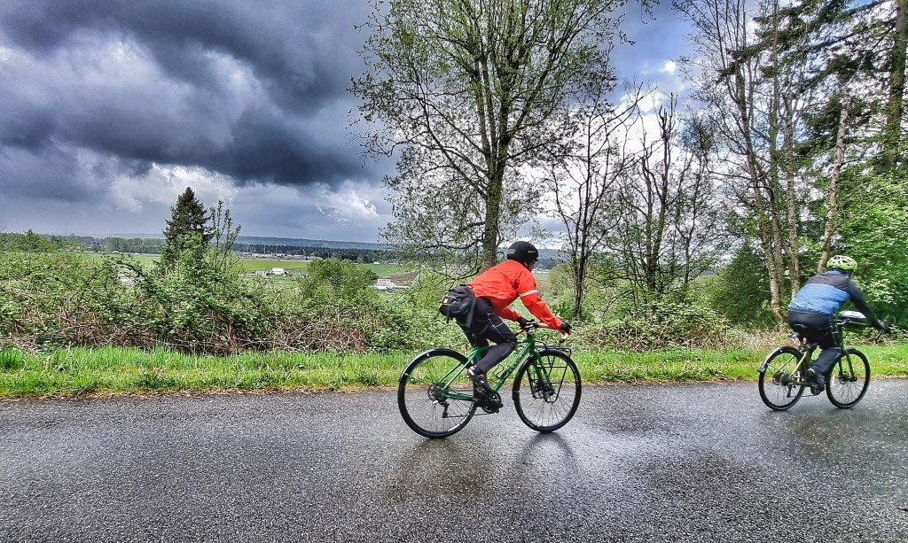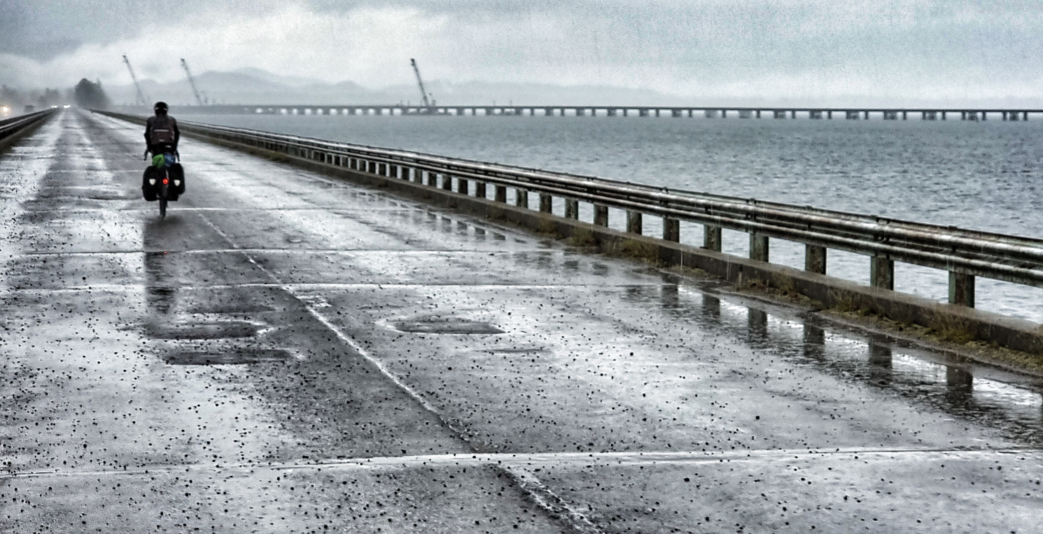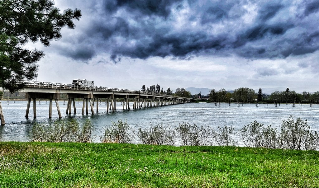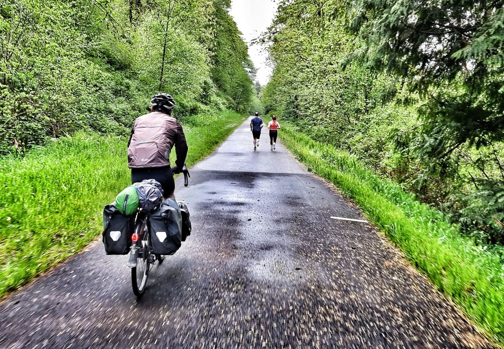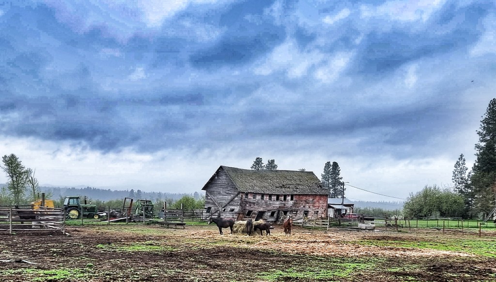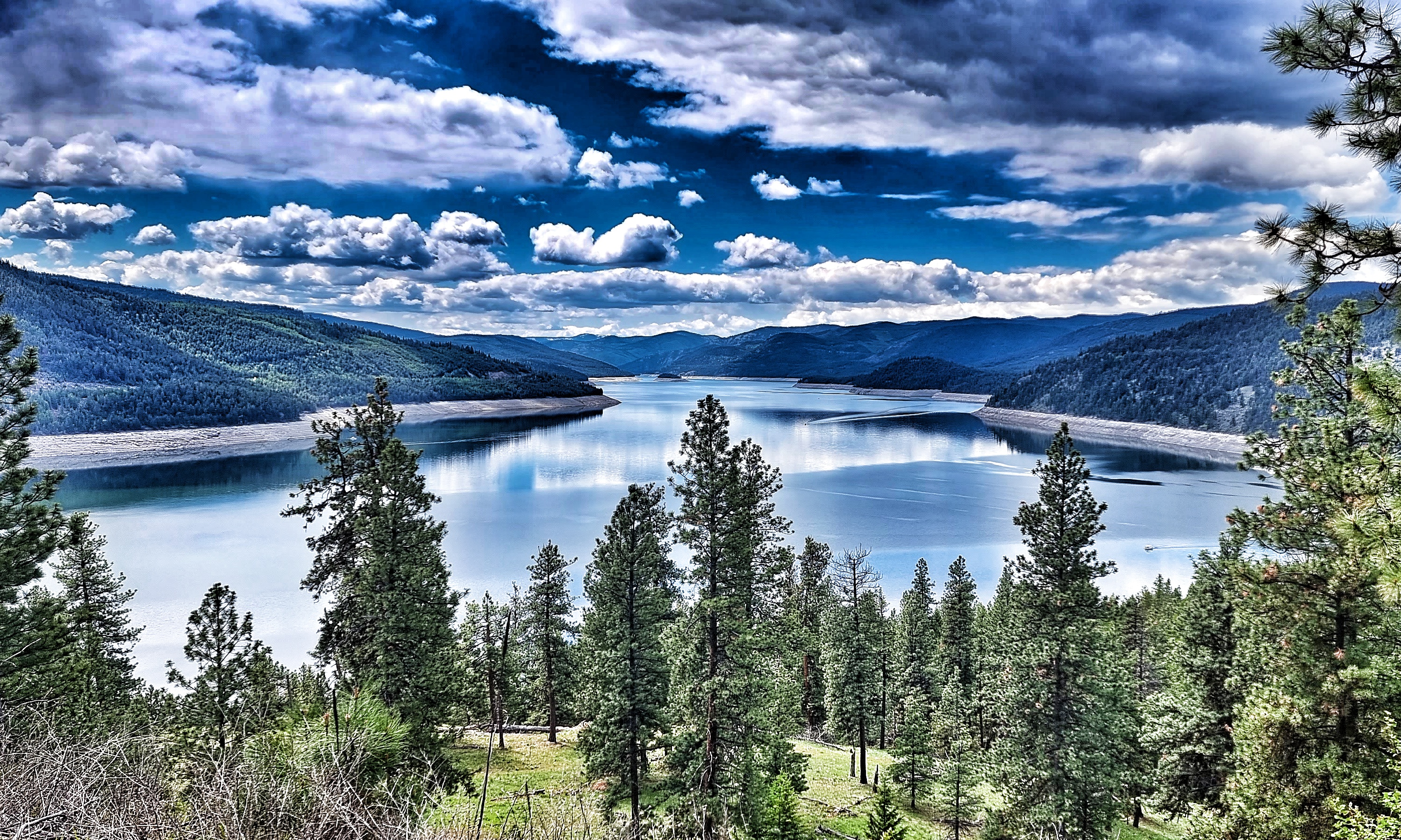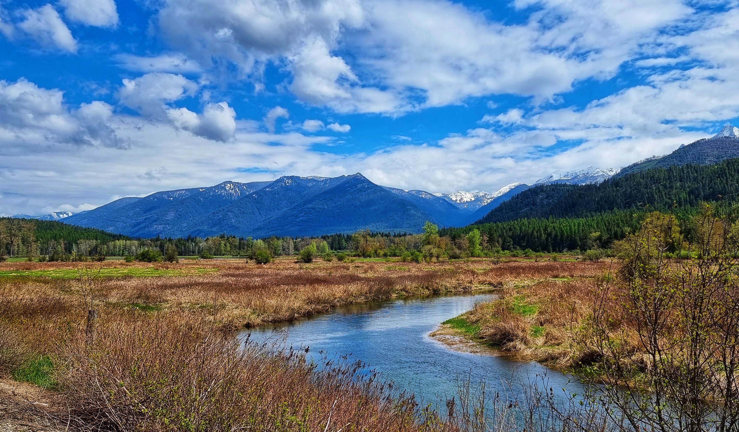 While we were relaxing inside, the heavens opened outside! Luckily by the time we remounted the steel steeds, we only had to deal with light rain & the short, sharp climb as soon as we joined the US 2 soon warmed us up! In no time we had big views over the river & railroad below, but then almost immediately gave all those hard fought for feet back! At Nimrod we left the Flathead river behind us & started following the course of the babbling Bear Creek.