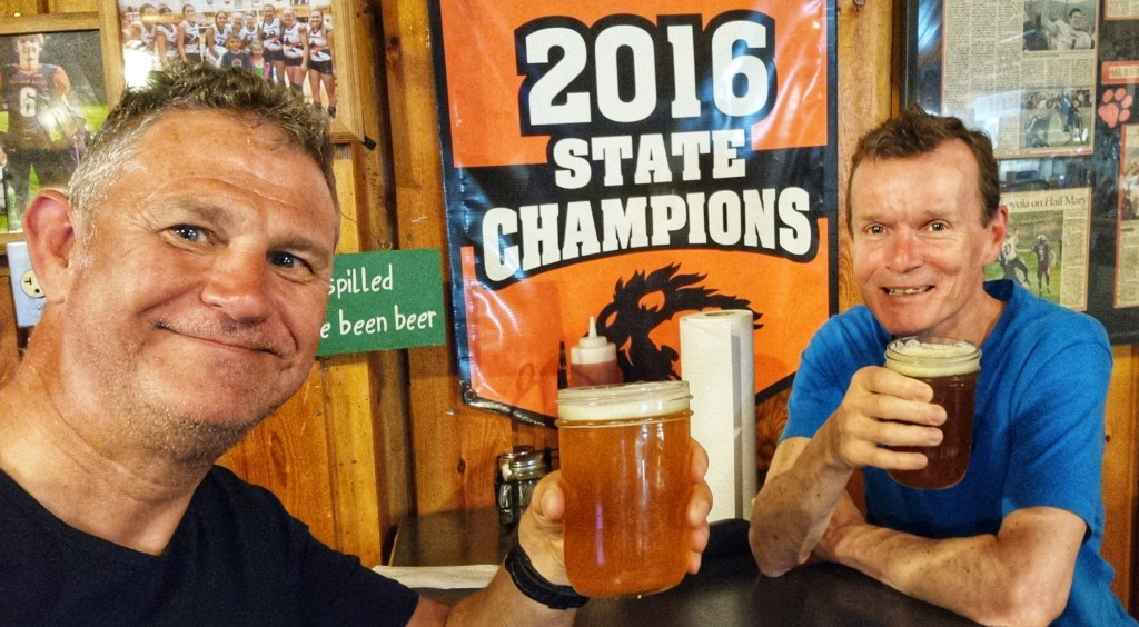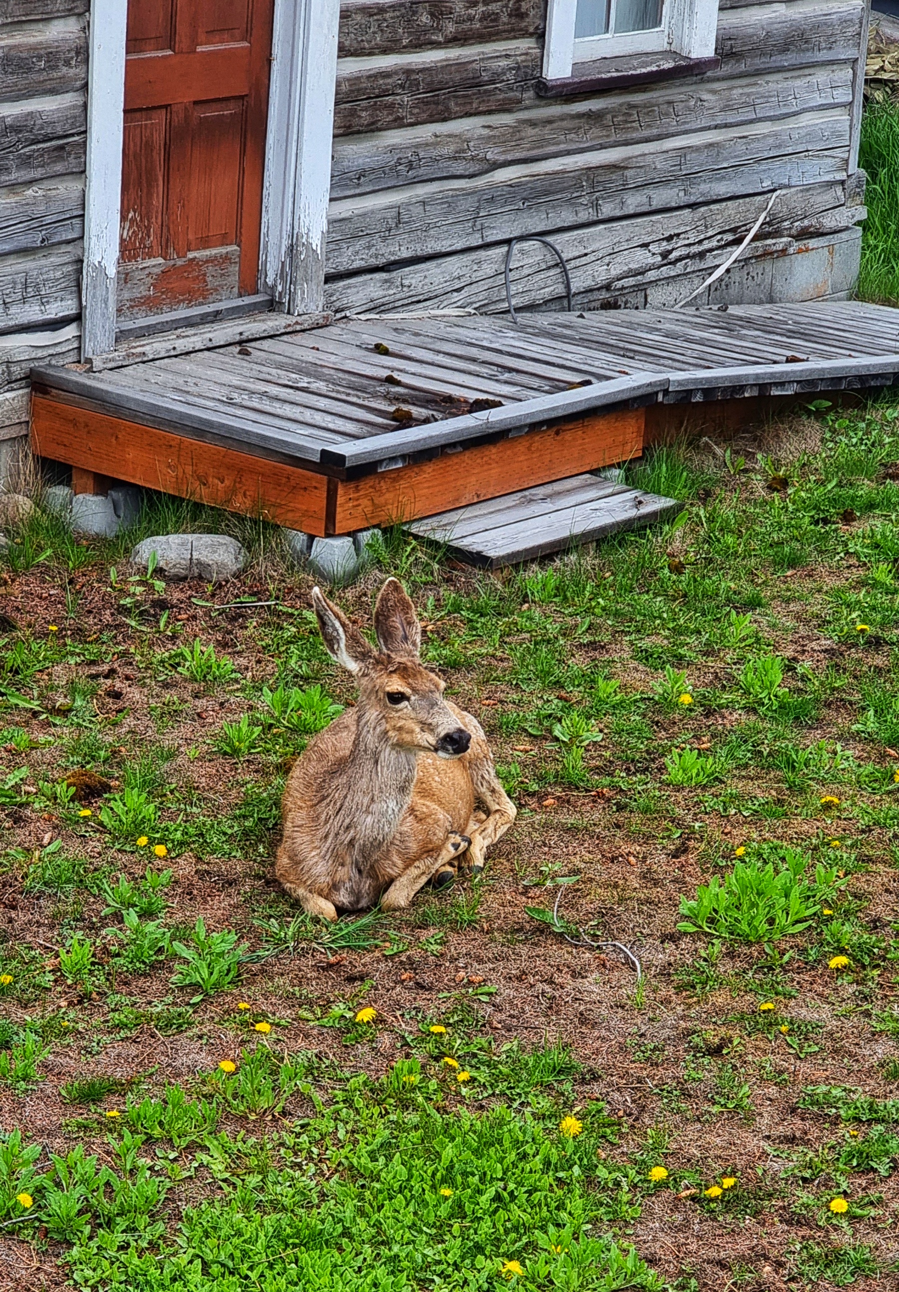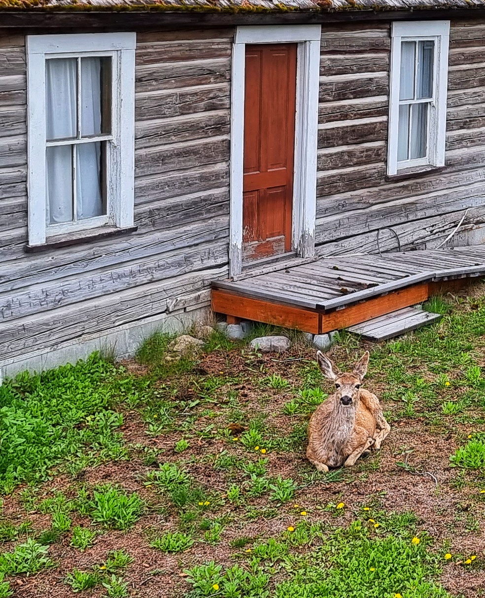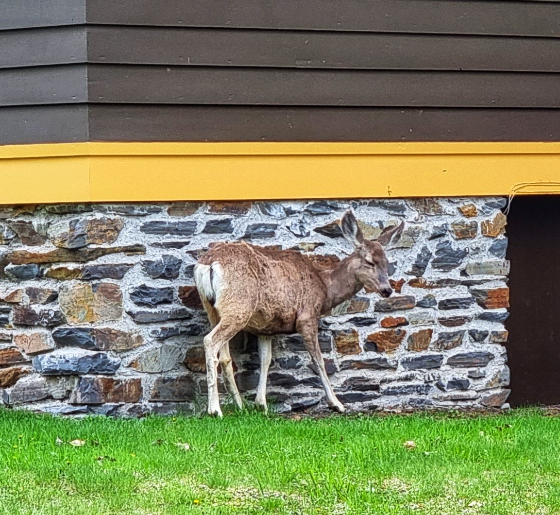Once we arrived back at our motel, we had a quick shower & change before heading across to the posher Lake McDonald Lodge to reflect on what has been a monumental day in the saddle – we’re clearly making an impression, as one of the deer popped over to check on the out of towners!
