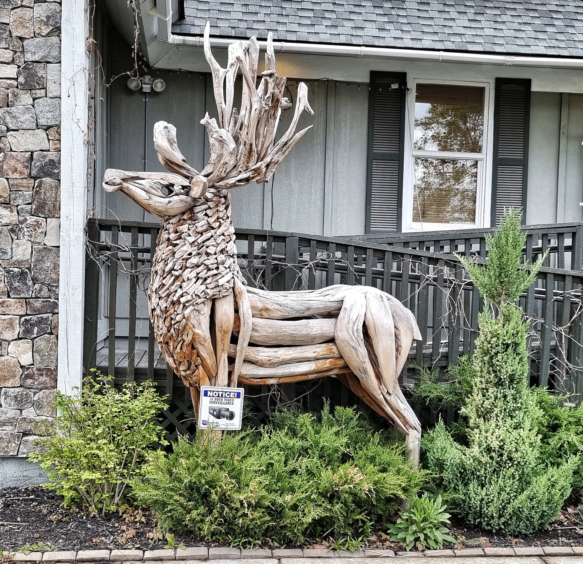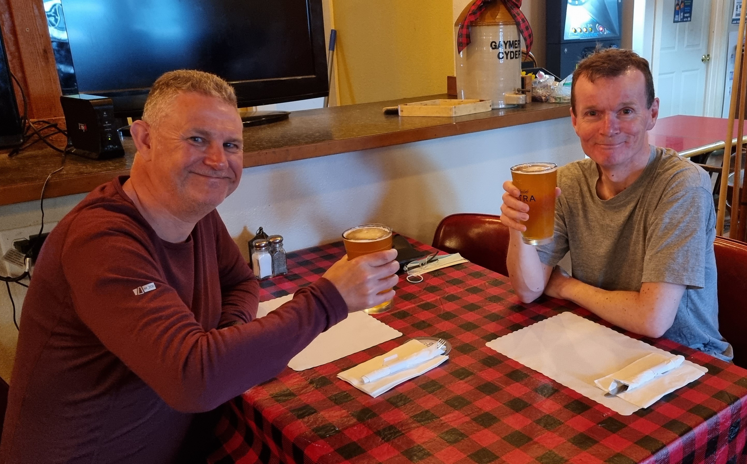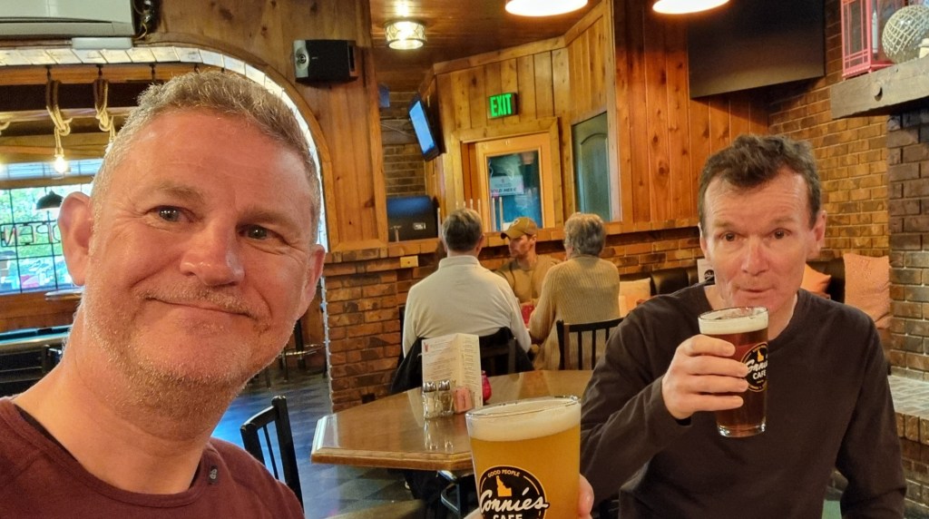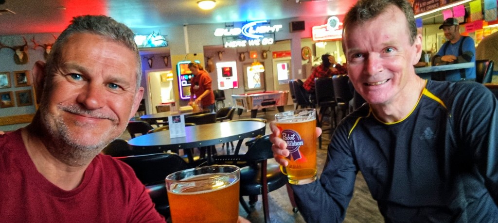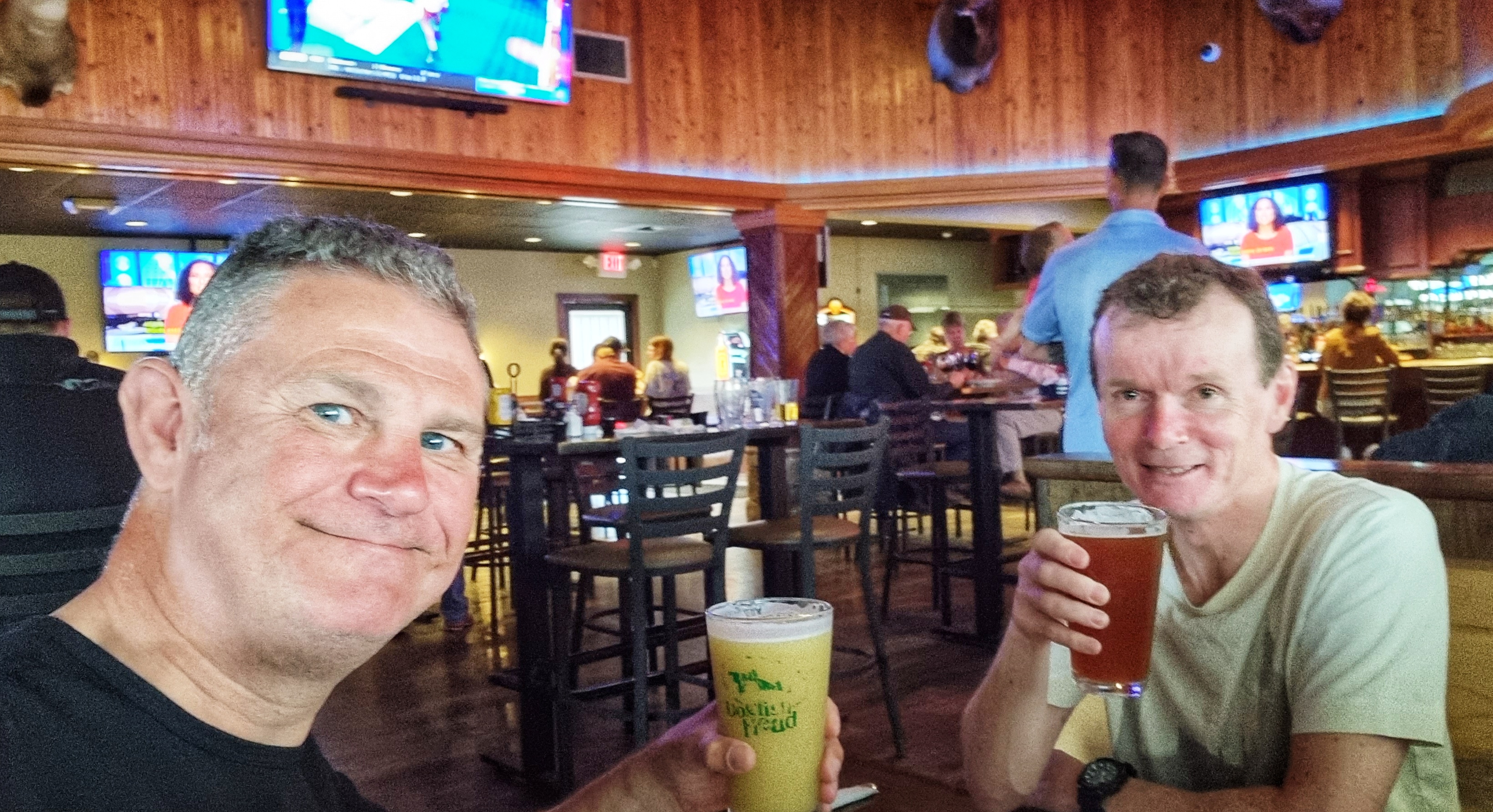 Once we arrived back at our motel, we had a quick shower & change before heading across to the posher Lake McDonald Lodge to reflect on what has been a monumental day in the saddle – we’re clearly making an impression, as one of the deer popped over to check on the out of towners!