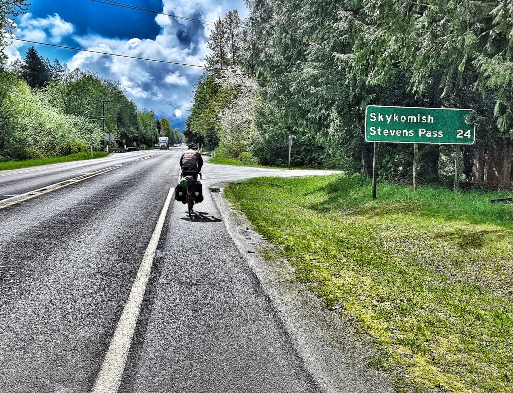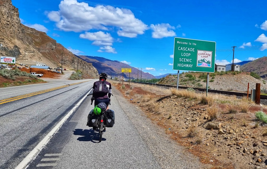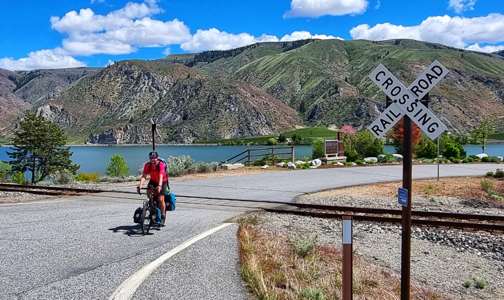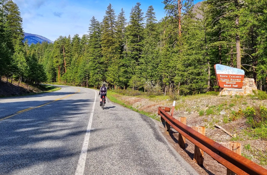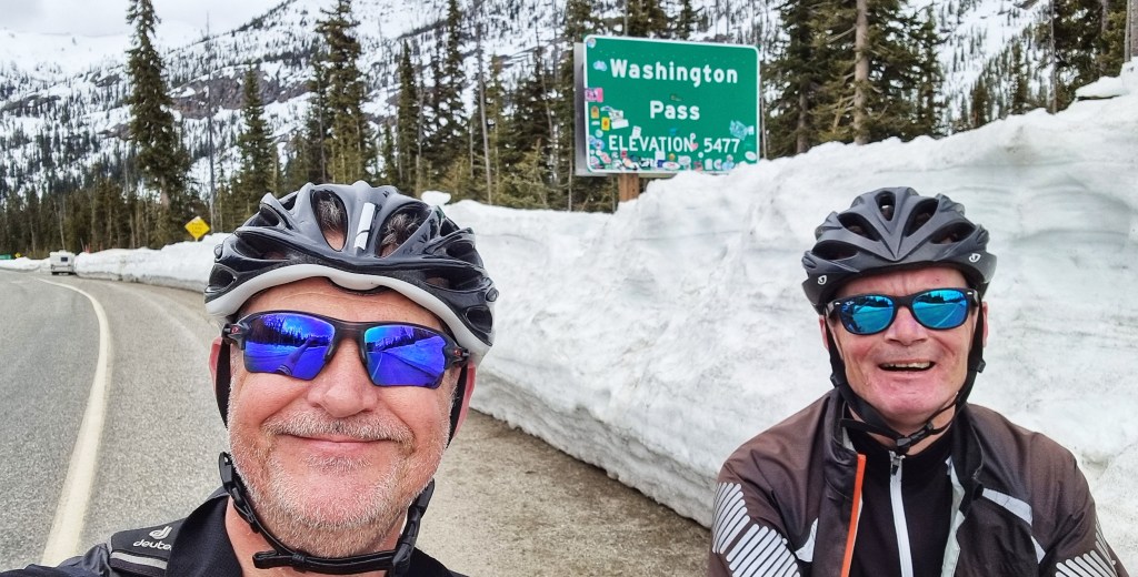 As we passed the Silver Staircase waterfall, it felt like this was where the climb to Marias Pass really began, even though we’d been gently climbing for the last 10 miles. The final 5 miles had a constant 4% gradient & this was made to feel a bit easier by the tailwind we’d picked up. Rounding the final corner, we were treated to the honk of a horn from a passing BNSF freight train.