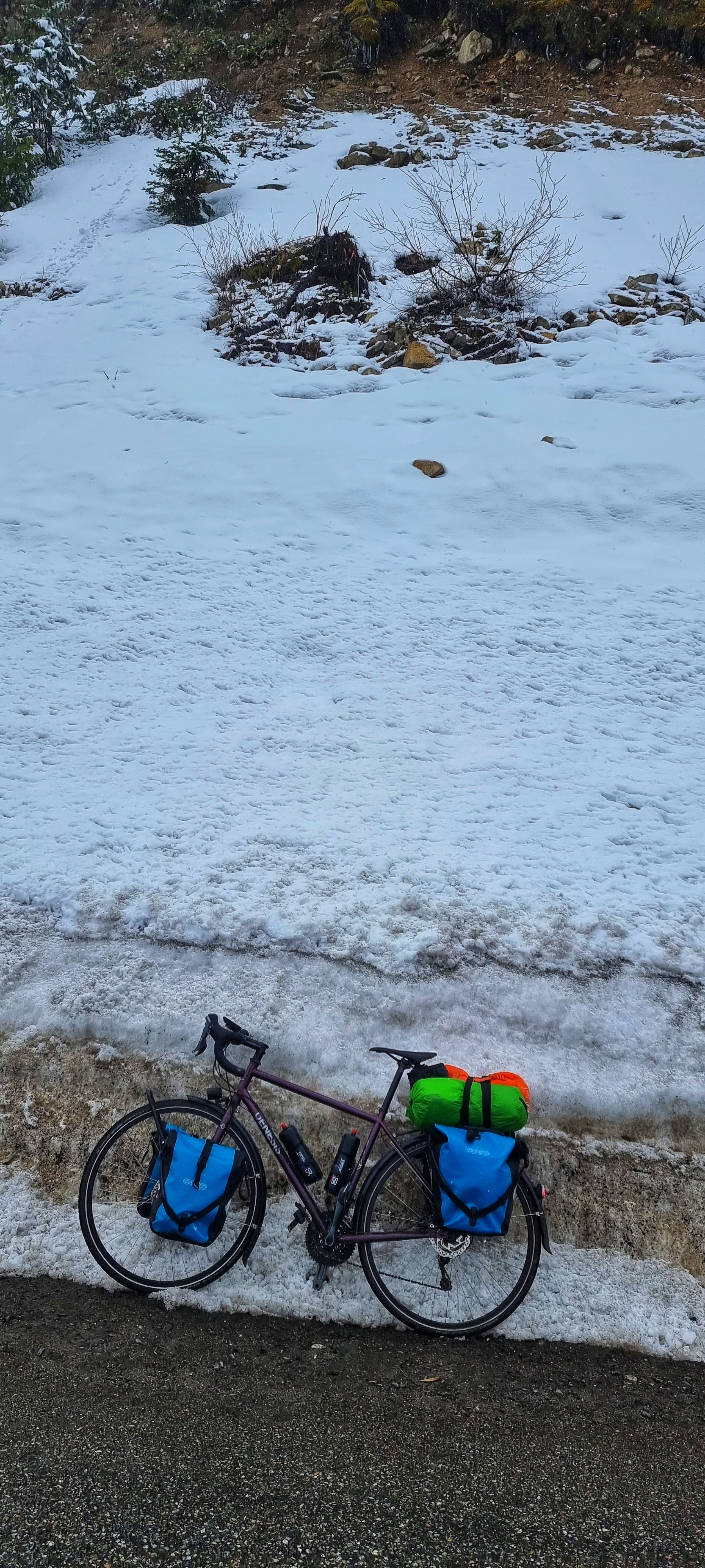 As we started climbing, snowbanks soon came into view as the road followed the twisting route of the river valley – some of the banks were slightly larger than others. I checked the snow cave for signs of wildlife before offering them a mouthful (or 2) of my prime rump!!