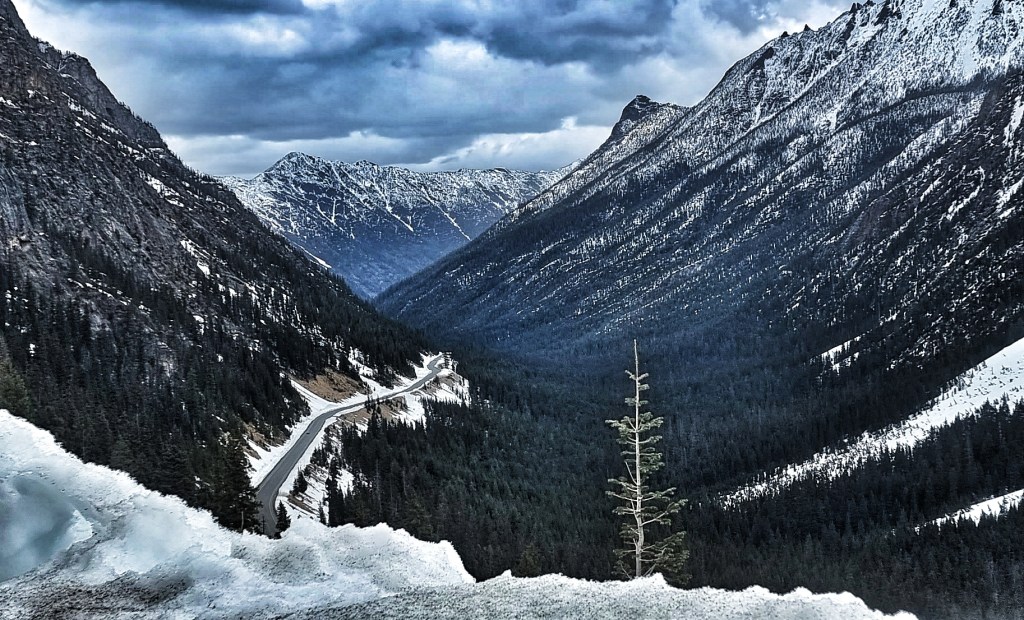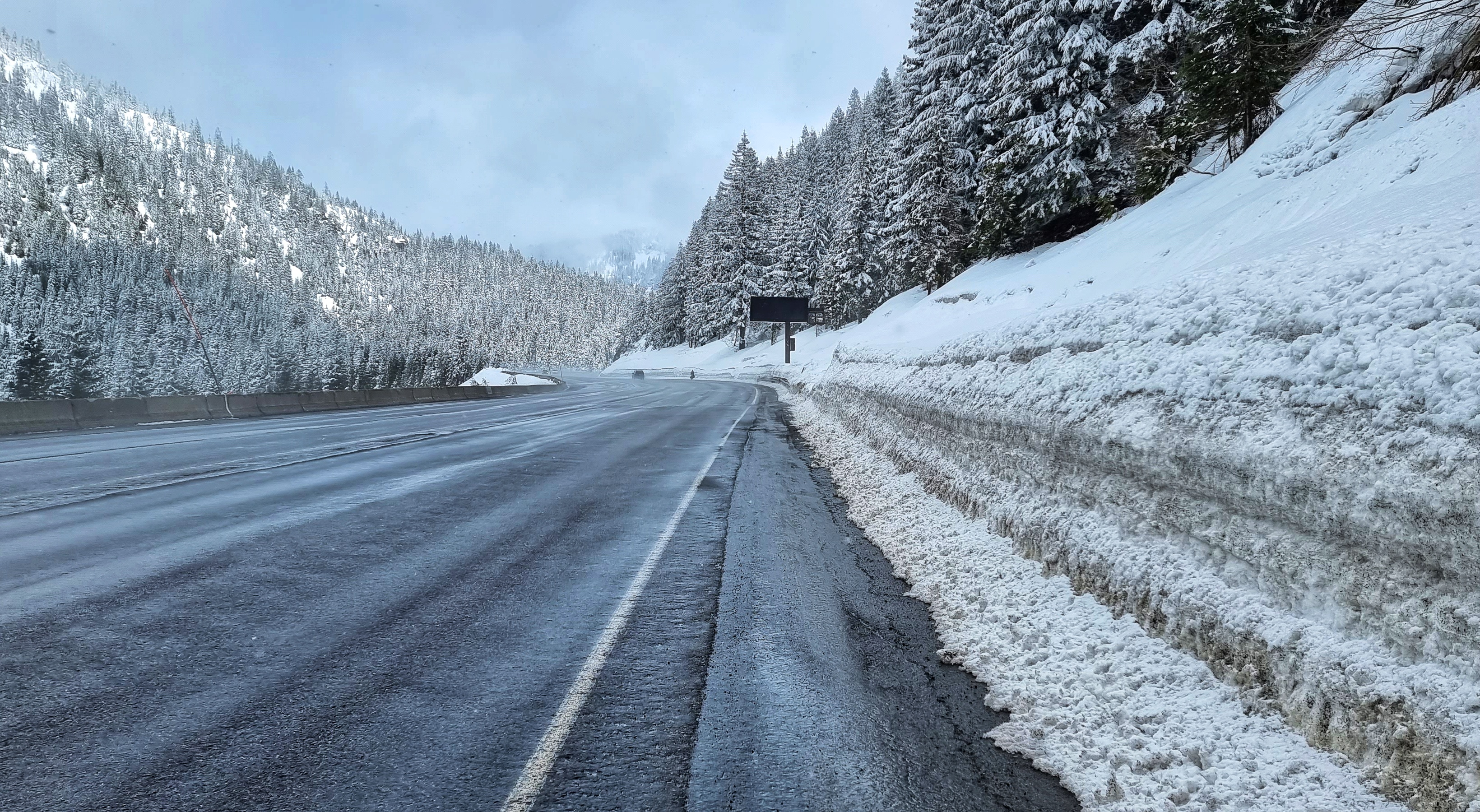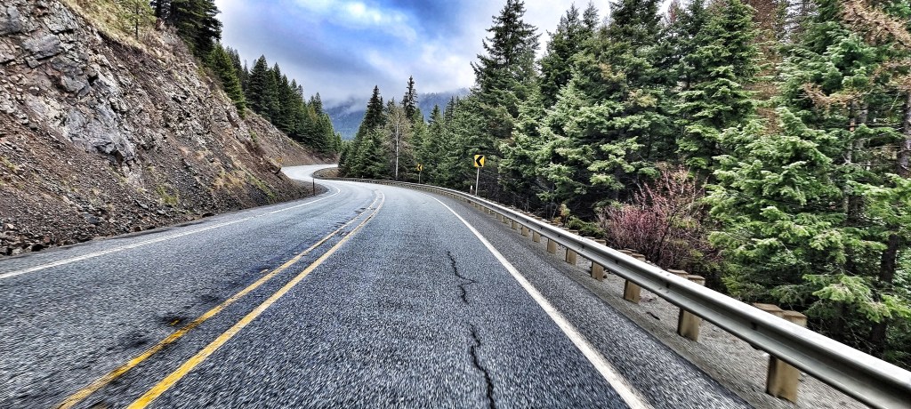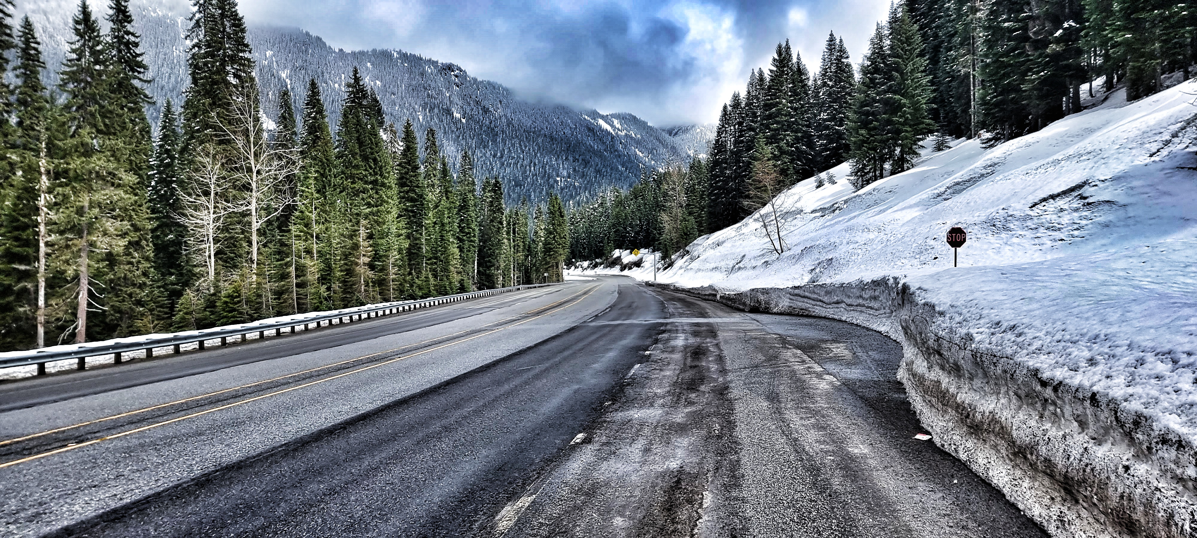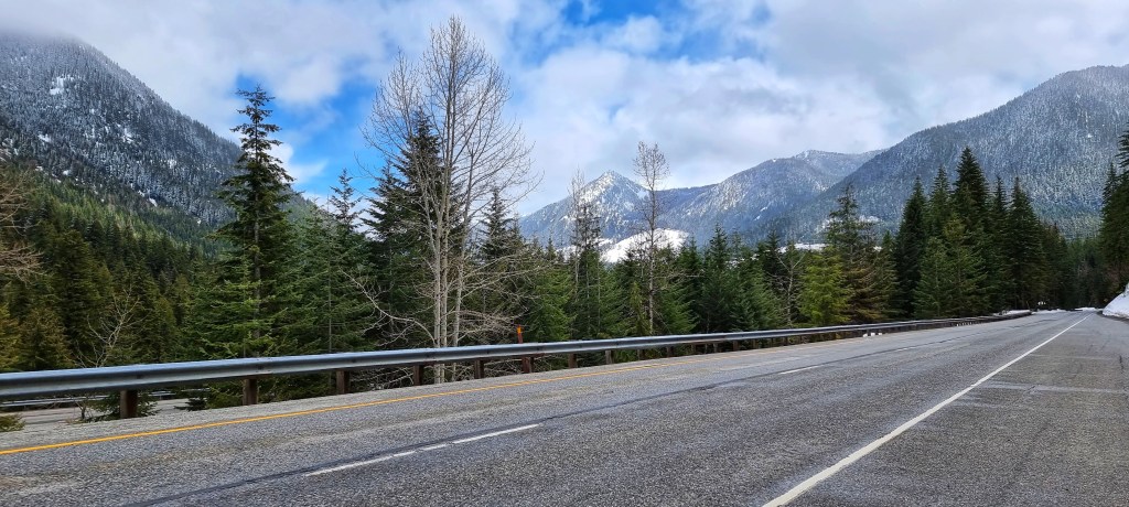 We could just make out the path of the road above. It looked like the lower shelf was clear but the snow crews hadn’t yet made it to the higher shelf, as that looked to be covered in snow. The good news was we still had more road to explore!