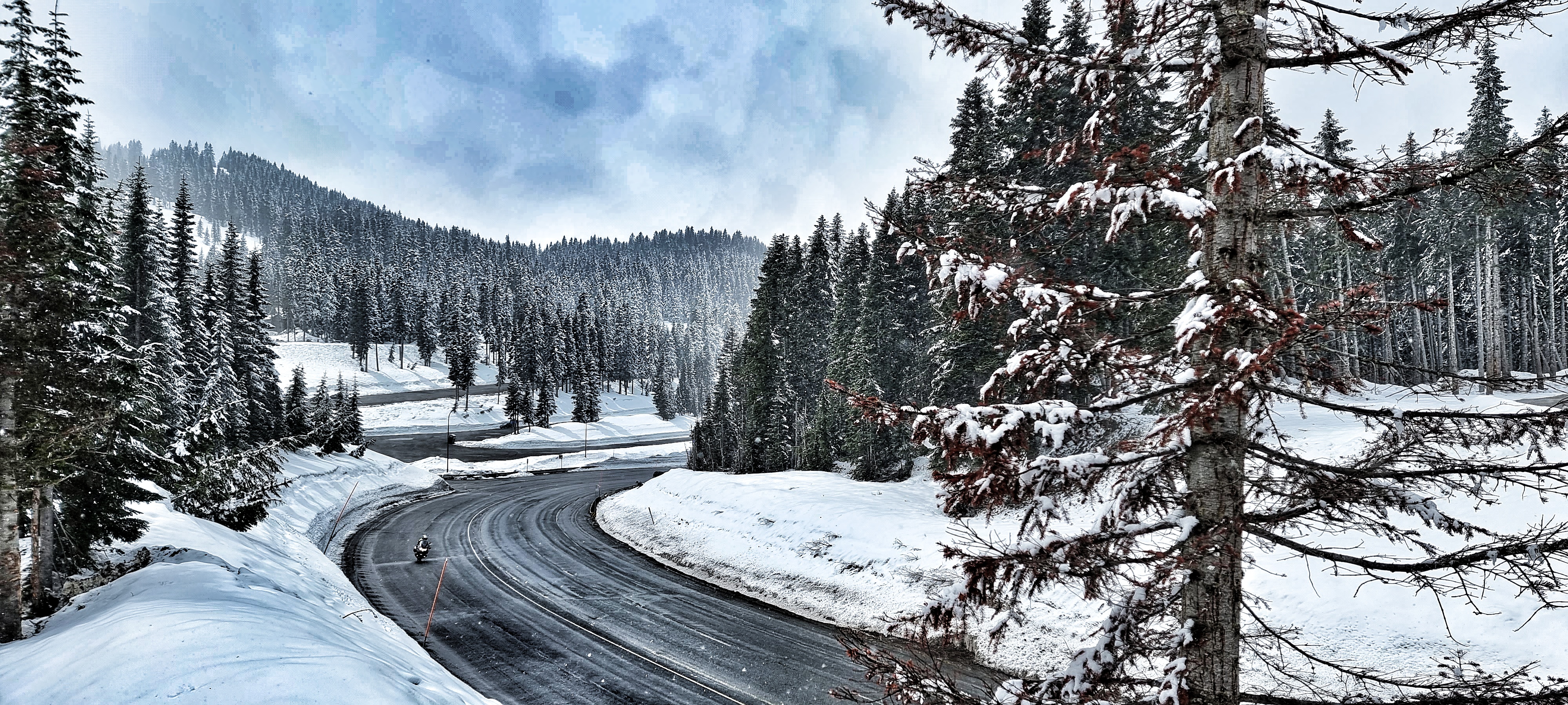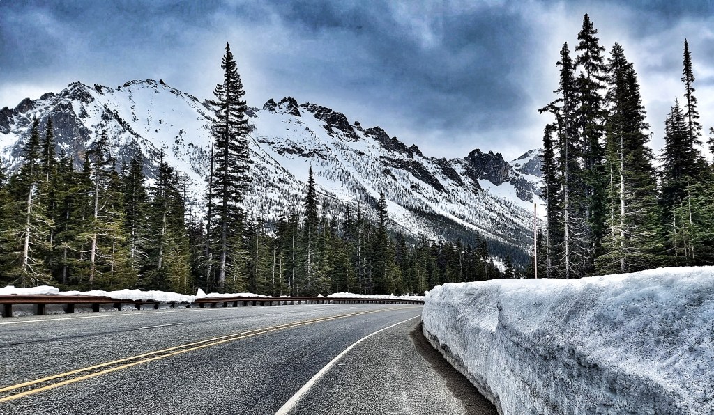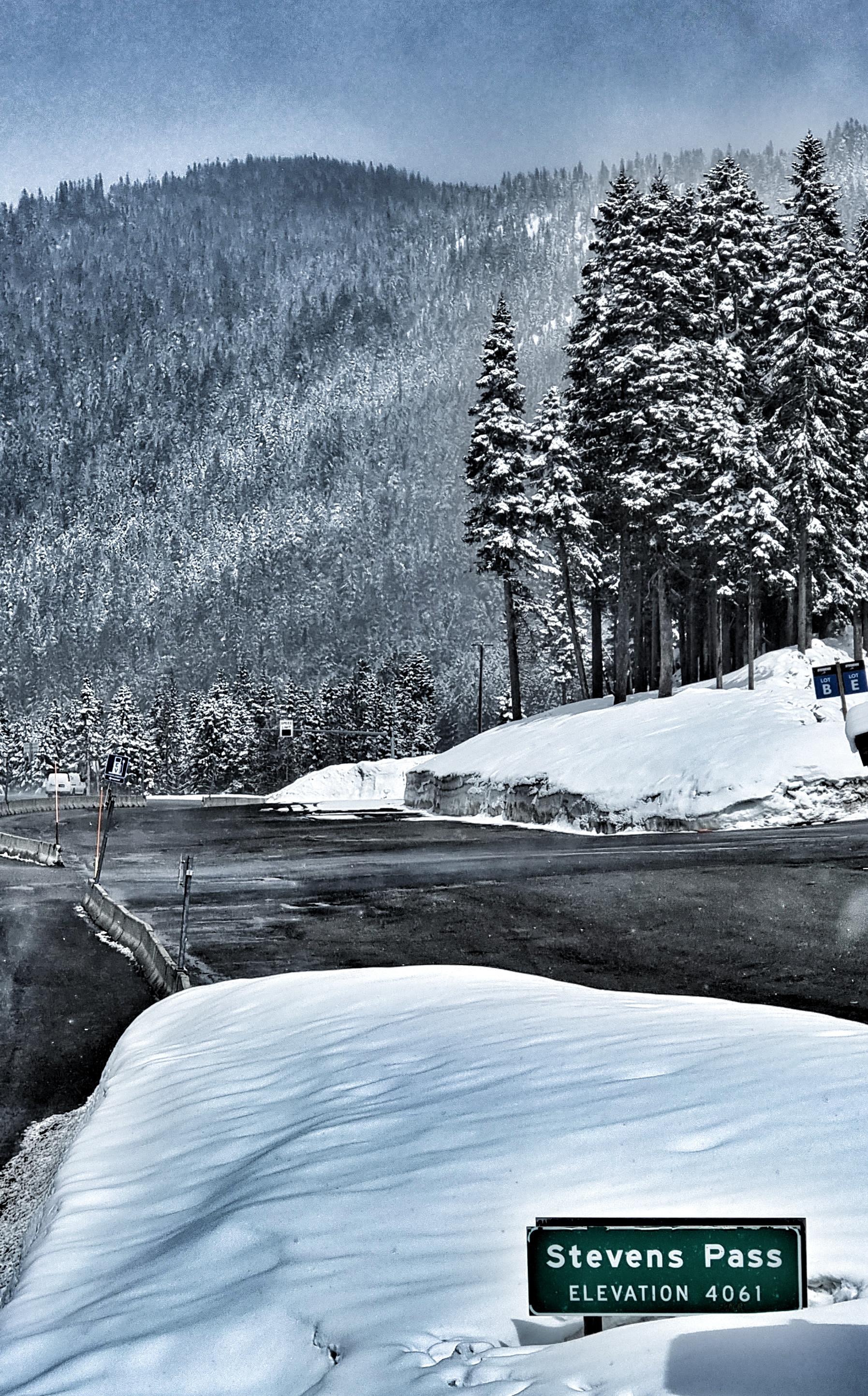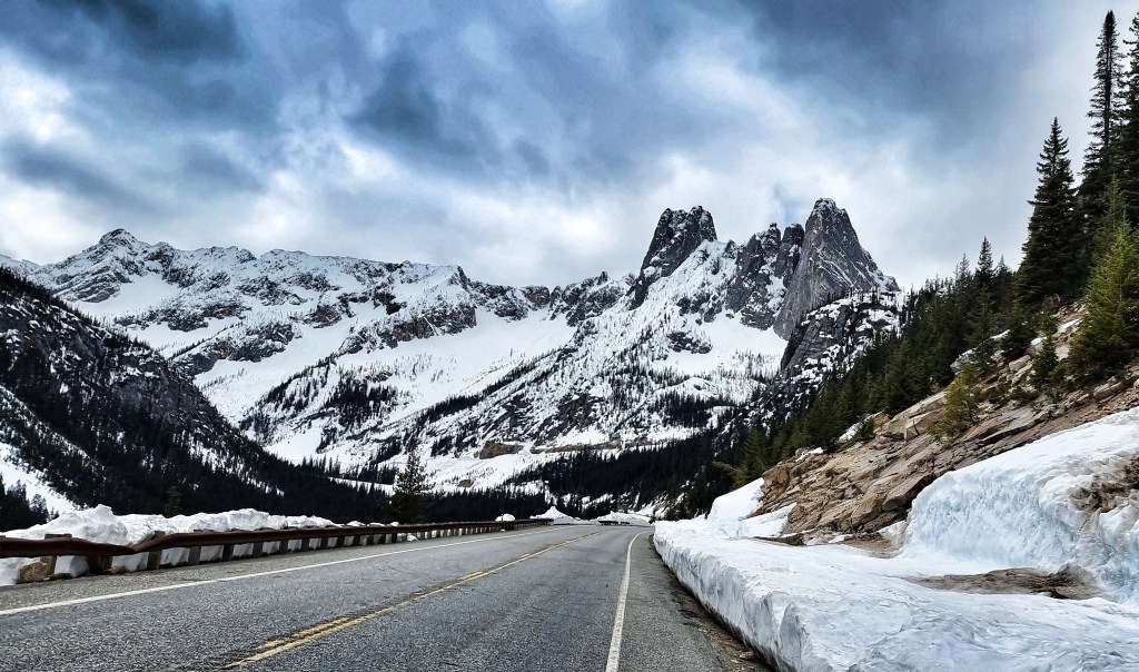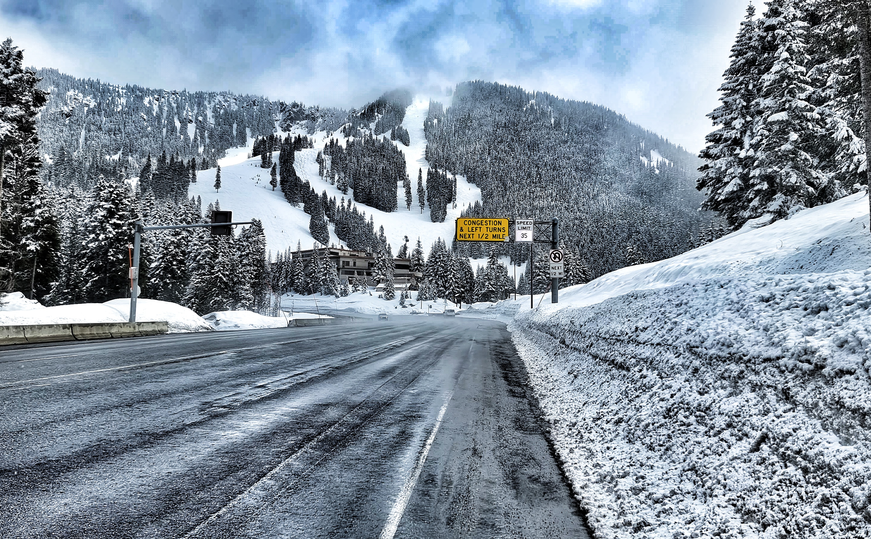 We could just make out the path of the road above. It looked like the lower shelf was clear but the snow crews hadn’t yet made it to the higher shelf, as that looked to be covered in snow. The good news was we still had more road to explore!