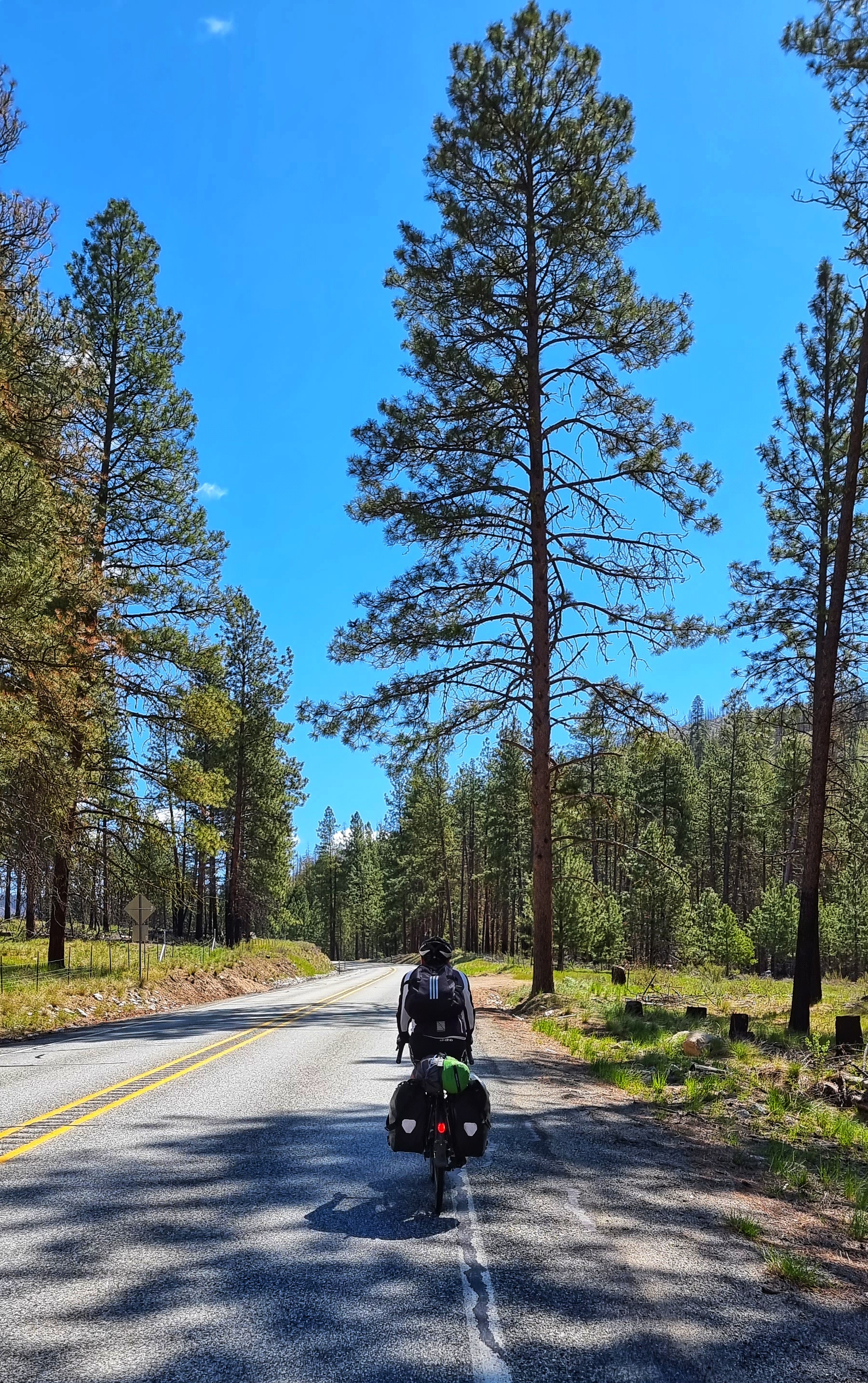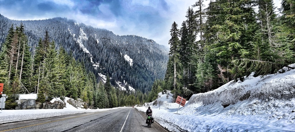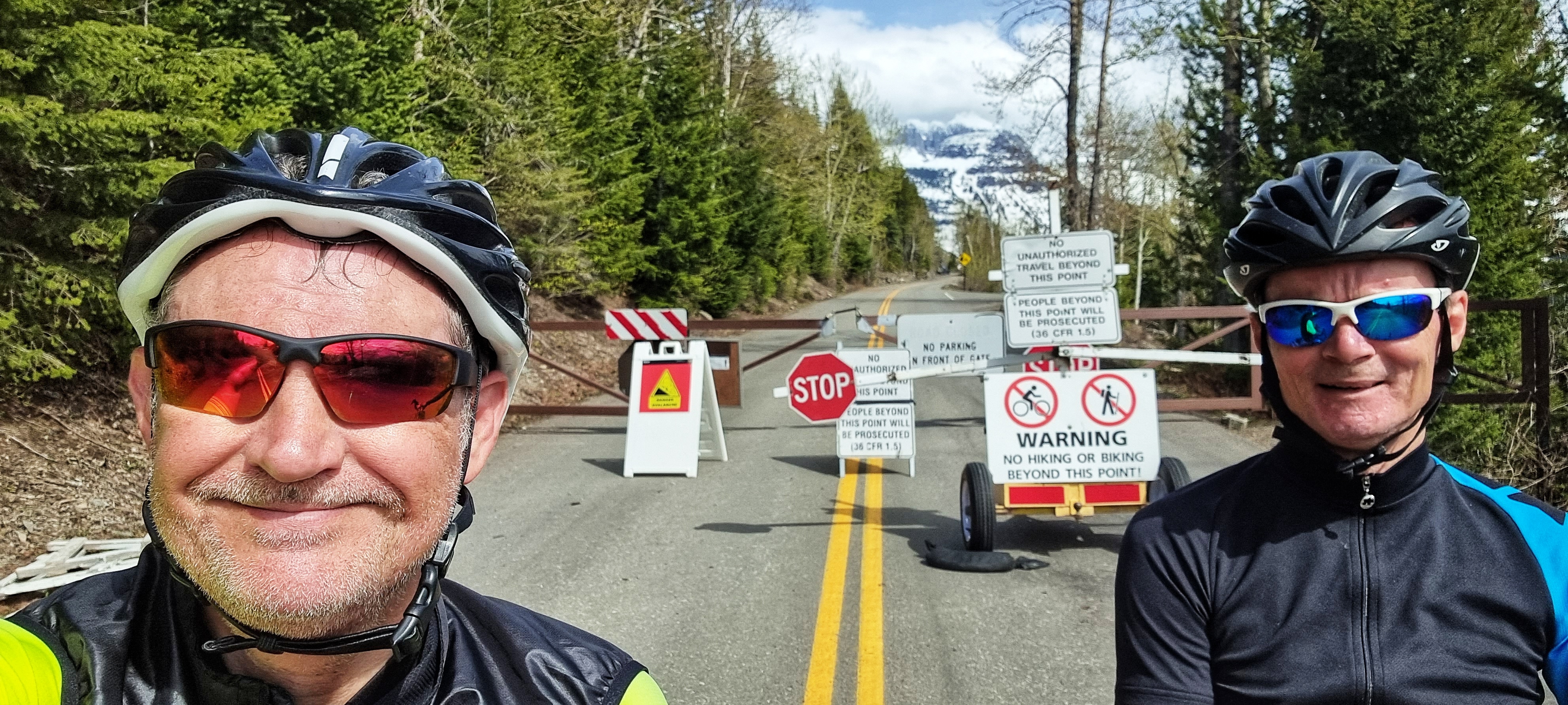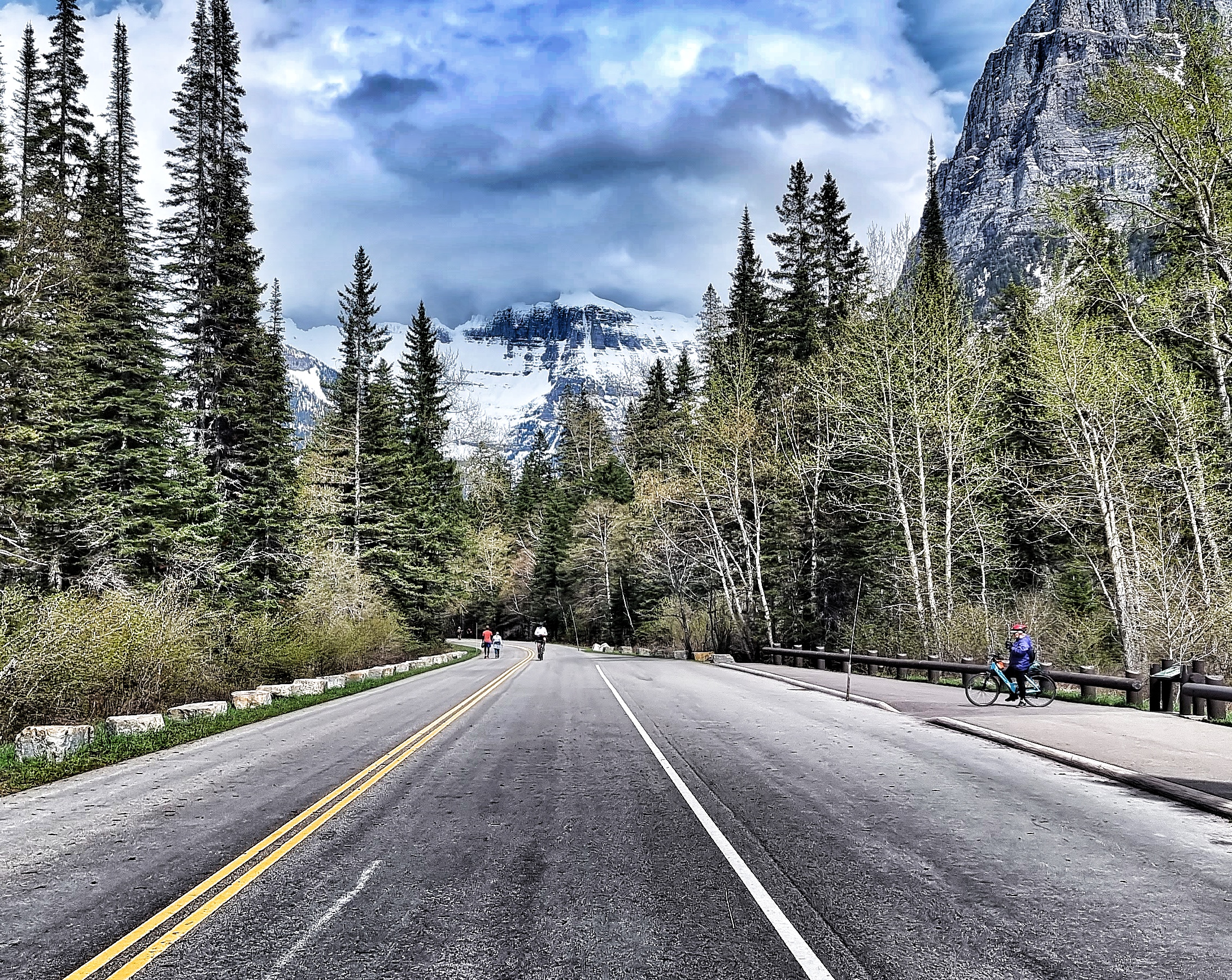 As we reached that single switchback, huge views of the climb up to Logan Pass came into view. Our friendly Ranger who sold us our tickets had told us the road would be closed to motorised traffic from Avalanche Creek & that there were avalanche warnings in place just after Lookout Point – we had to stop climbing at this point. We’d had 8 miles of riding on empty roads, so truly appreciated our good fortune.