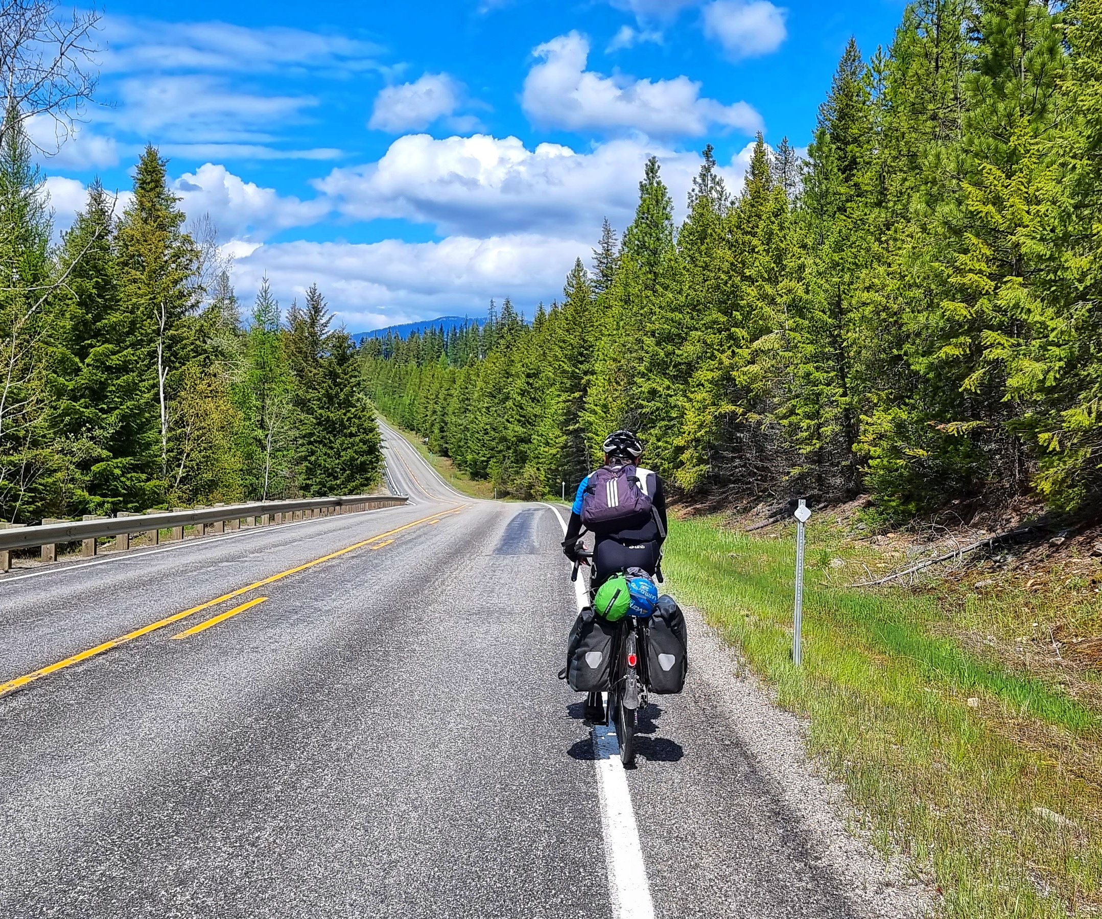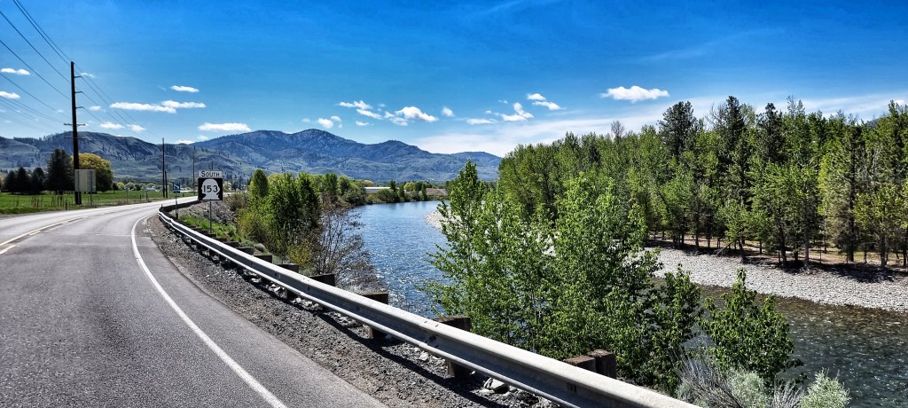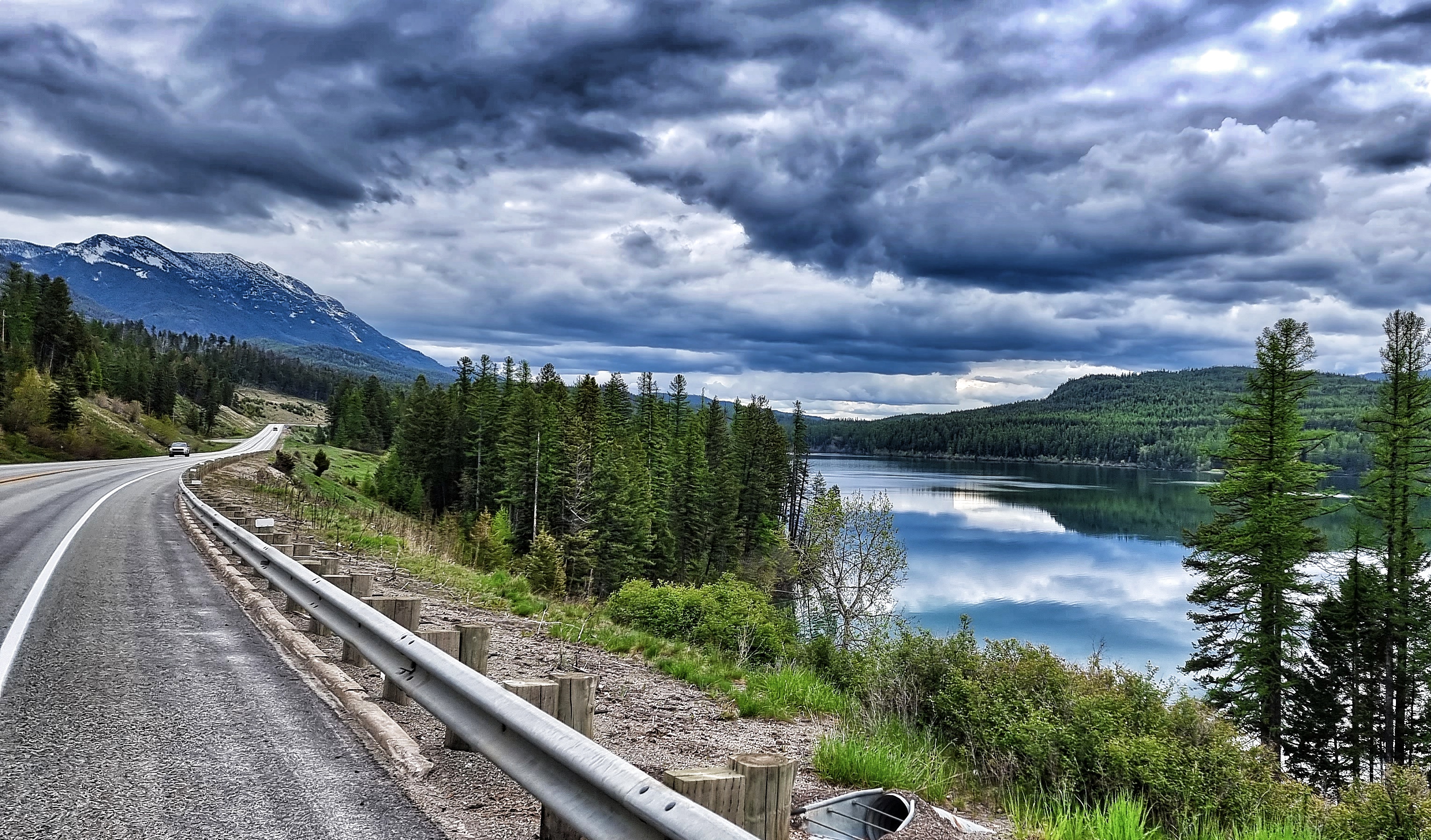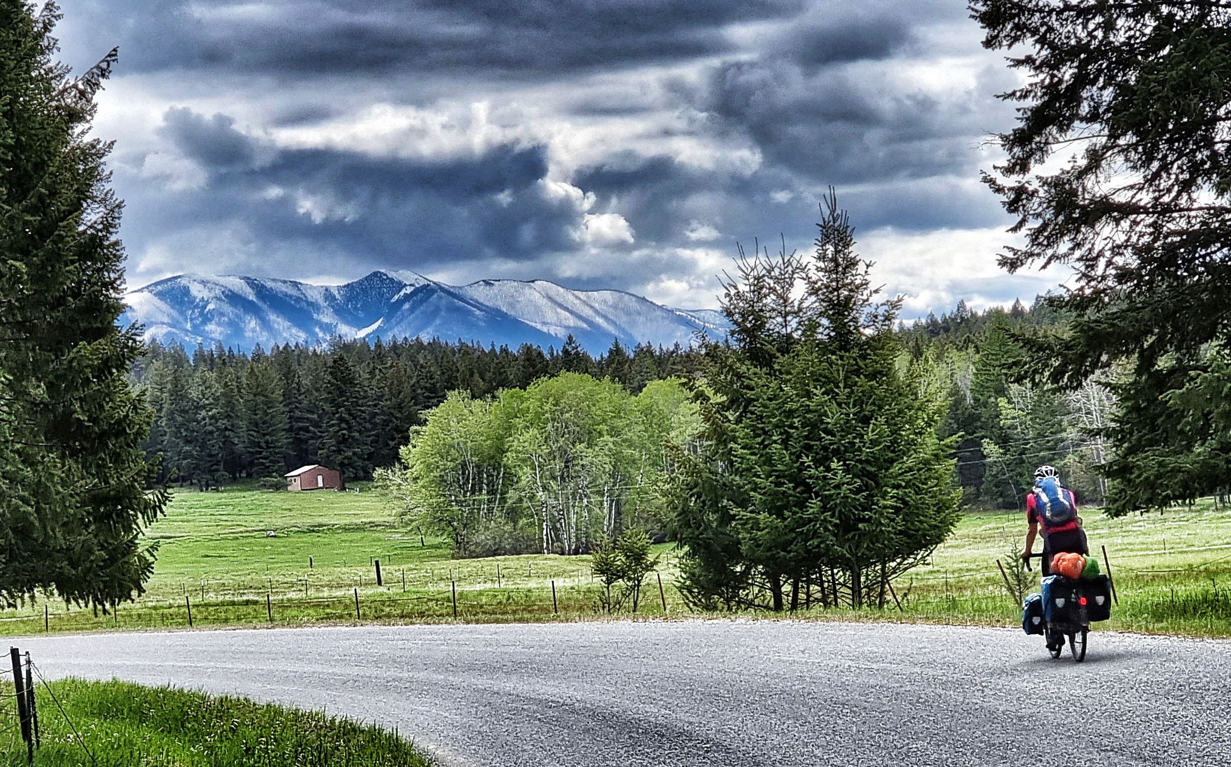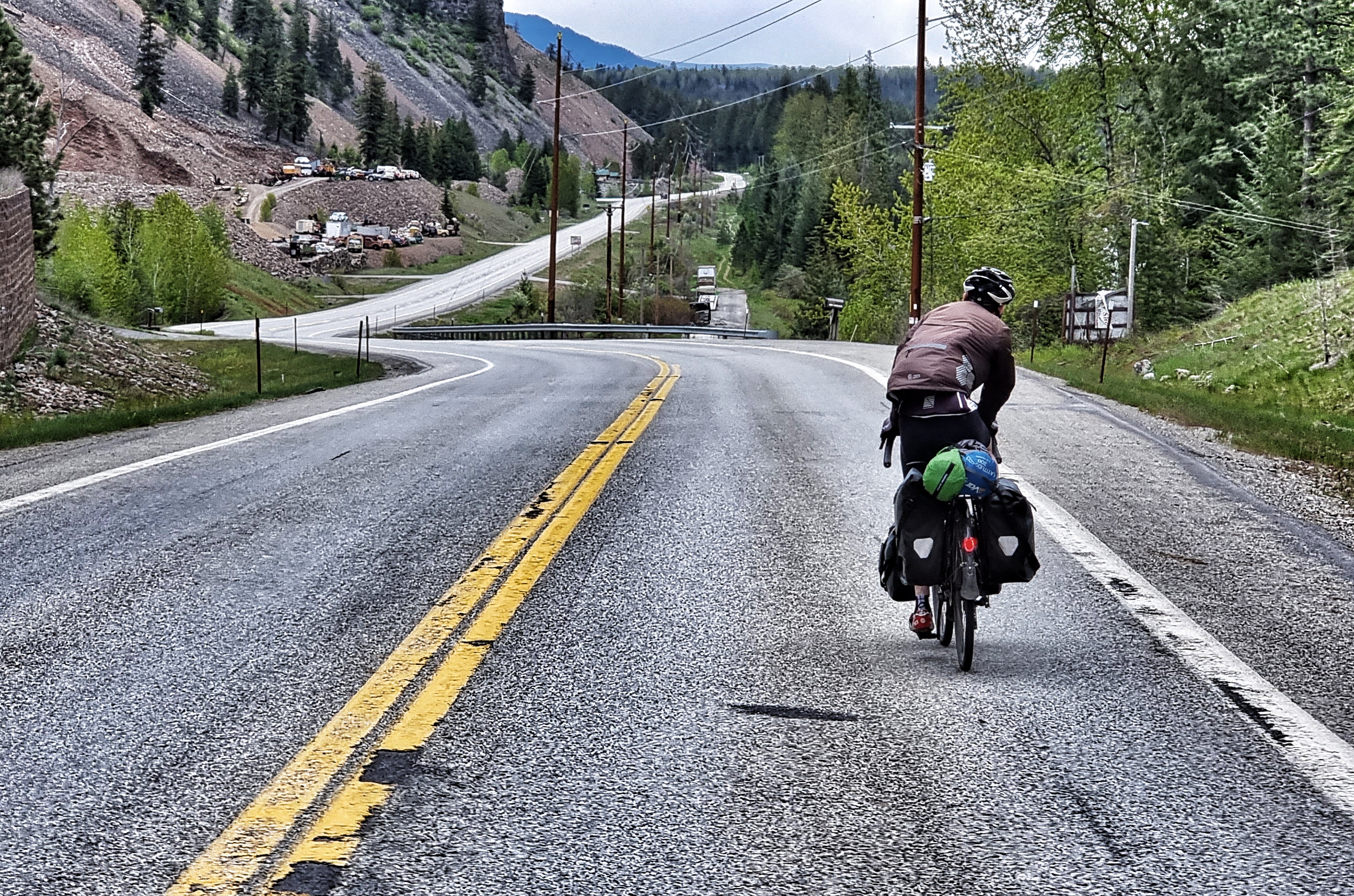 Heading East, we joined the US 2 & immediately started climbing, nothing severe, but enough to wake the legs up! We reached the summit of the climb just as a huge freight train was heading in the opposite direction – this one was double stacked with containers. The road continued to rise & fall gently, as we occasionally caught views of the Middle Fork Flathead river below.