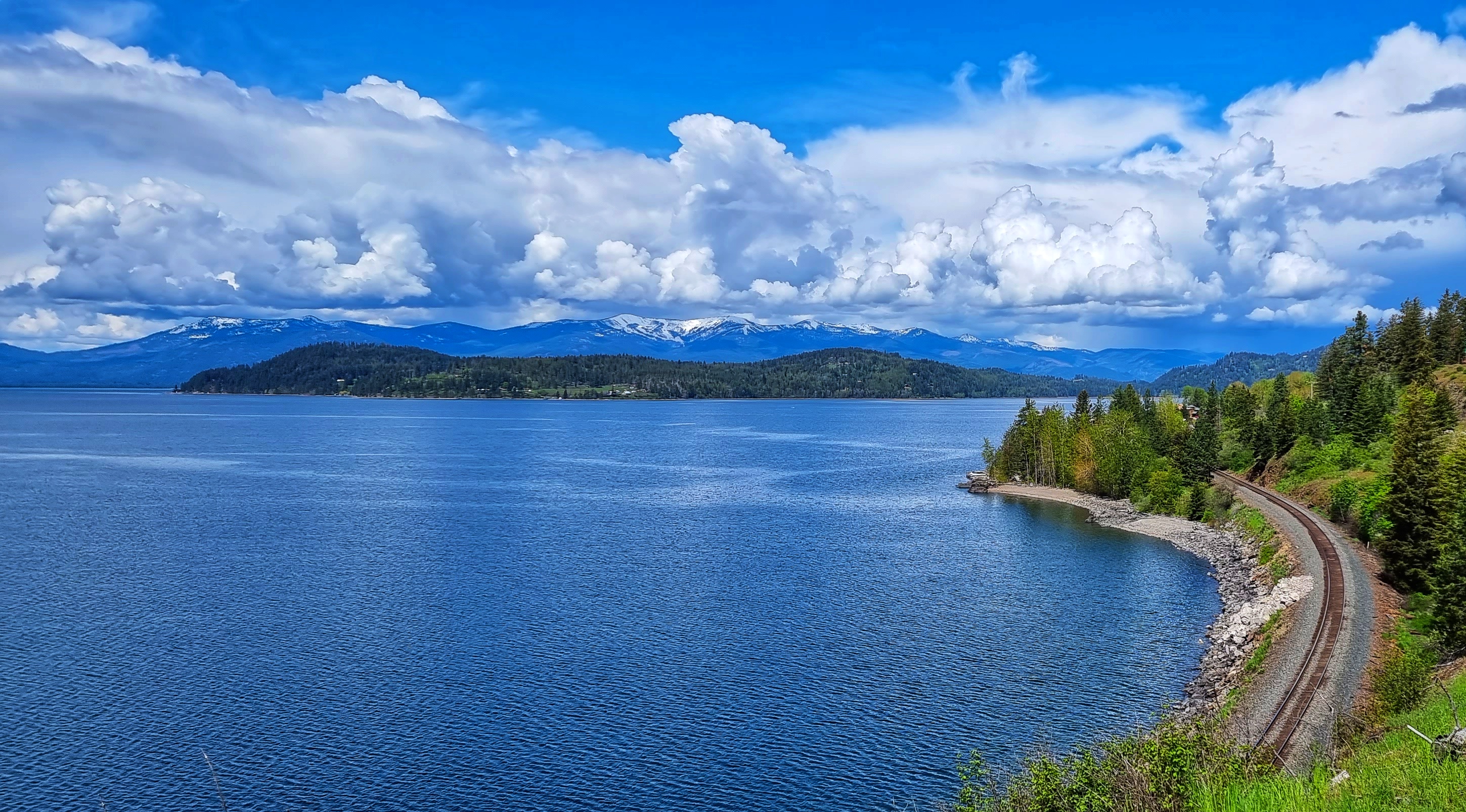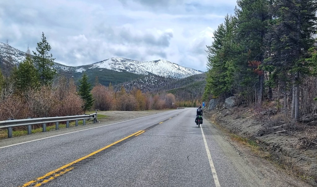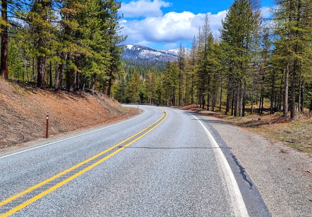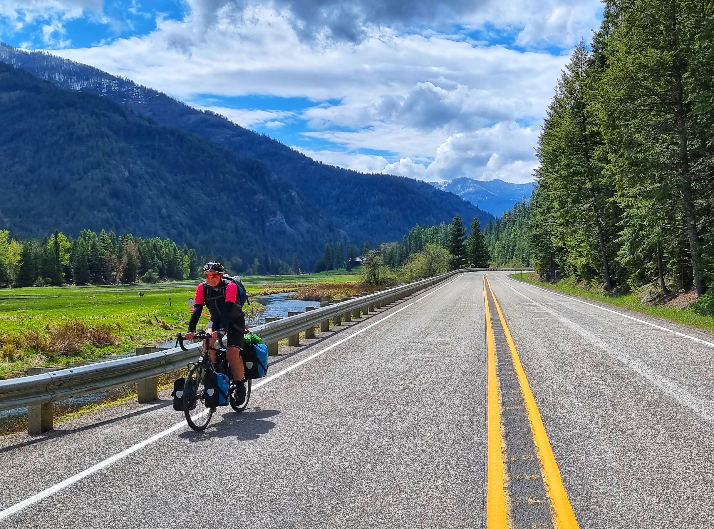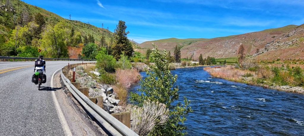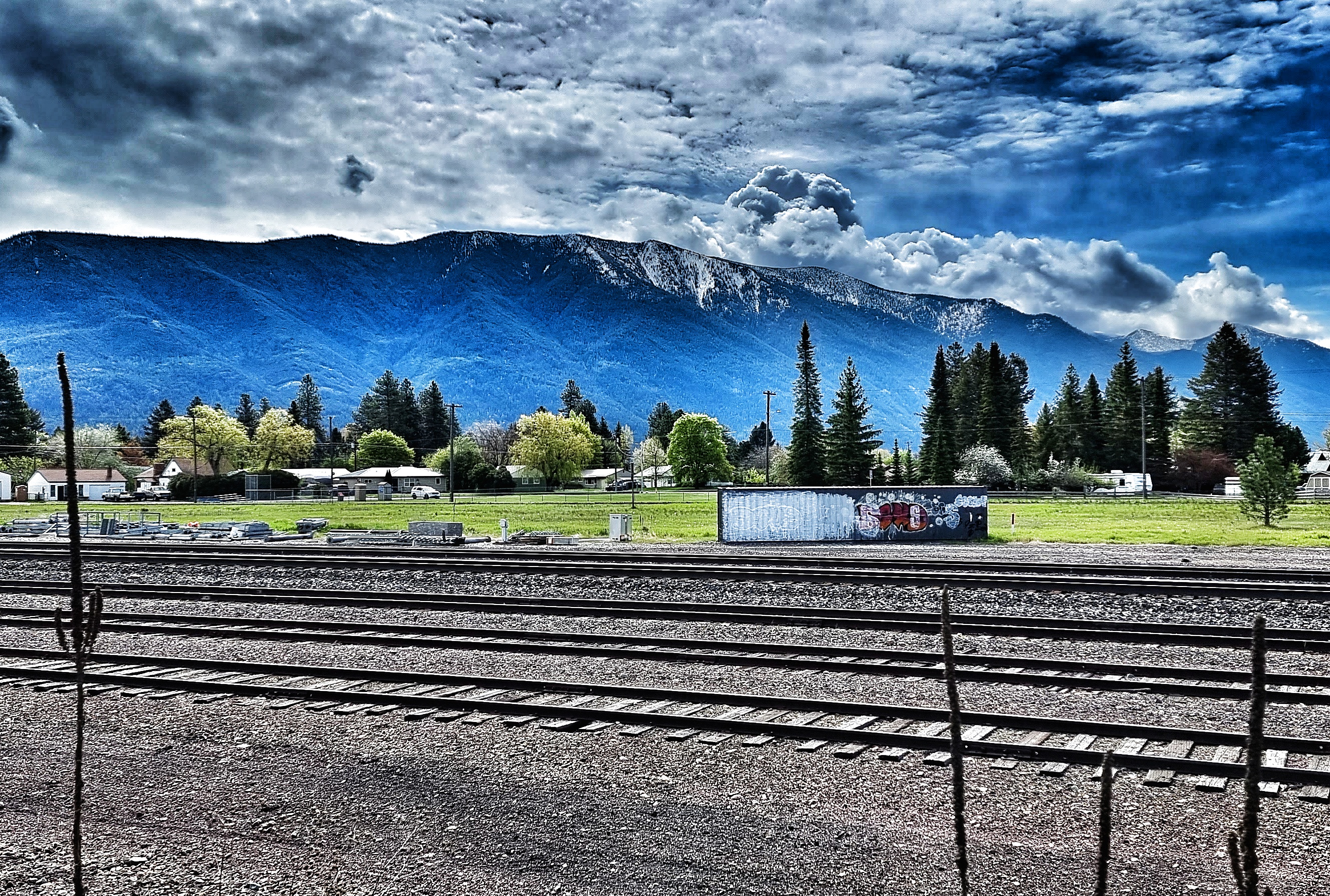 Heading East, we joined the US 2 & immediately started climbing, nothing severe, but enough to wake the legs up! We reached the summit of the climb just as a huge freight train was heading in the opposite direction – this one was double stacked with containers. The road continued to rise & fall gently, as we occasionally caught views of the Middle Fork Flathead river below.
