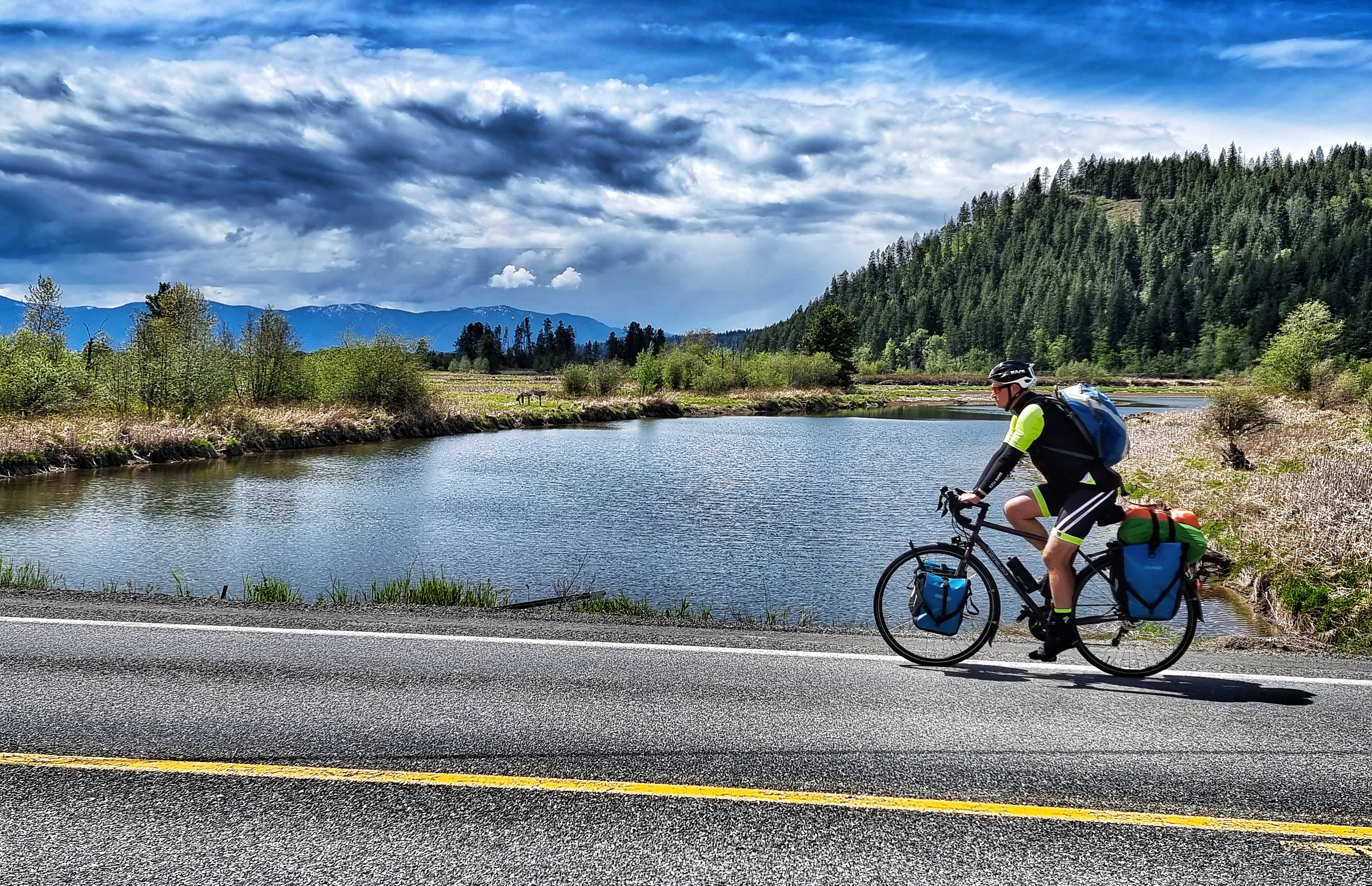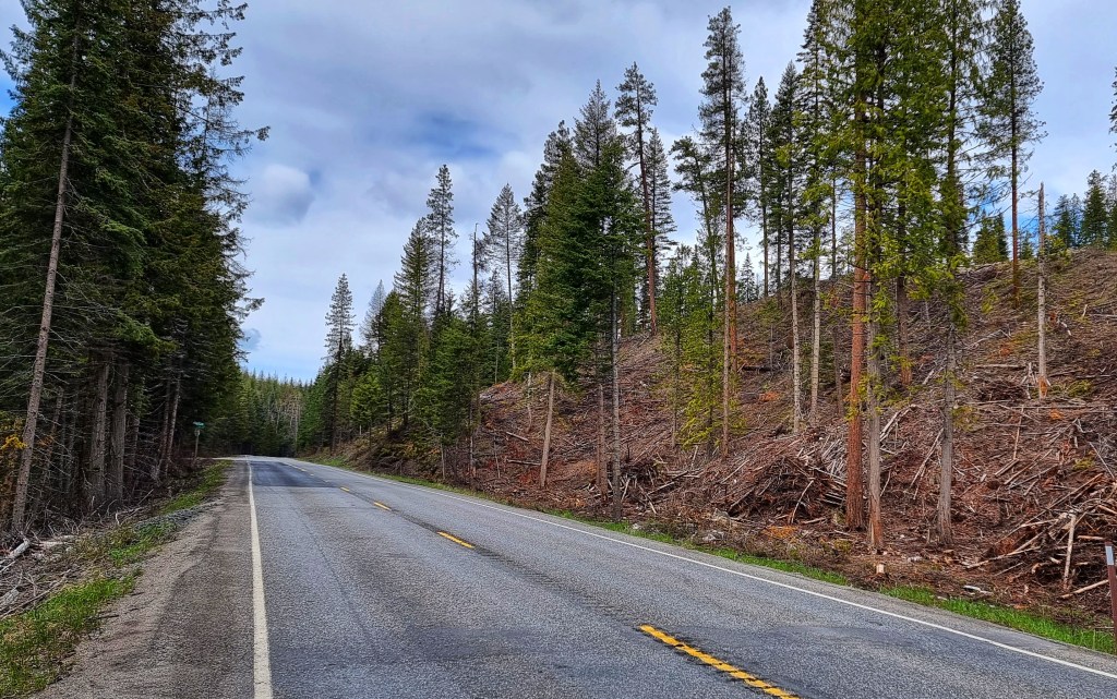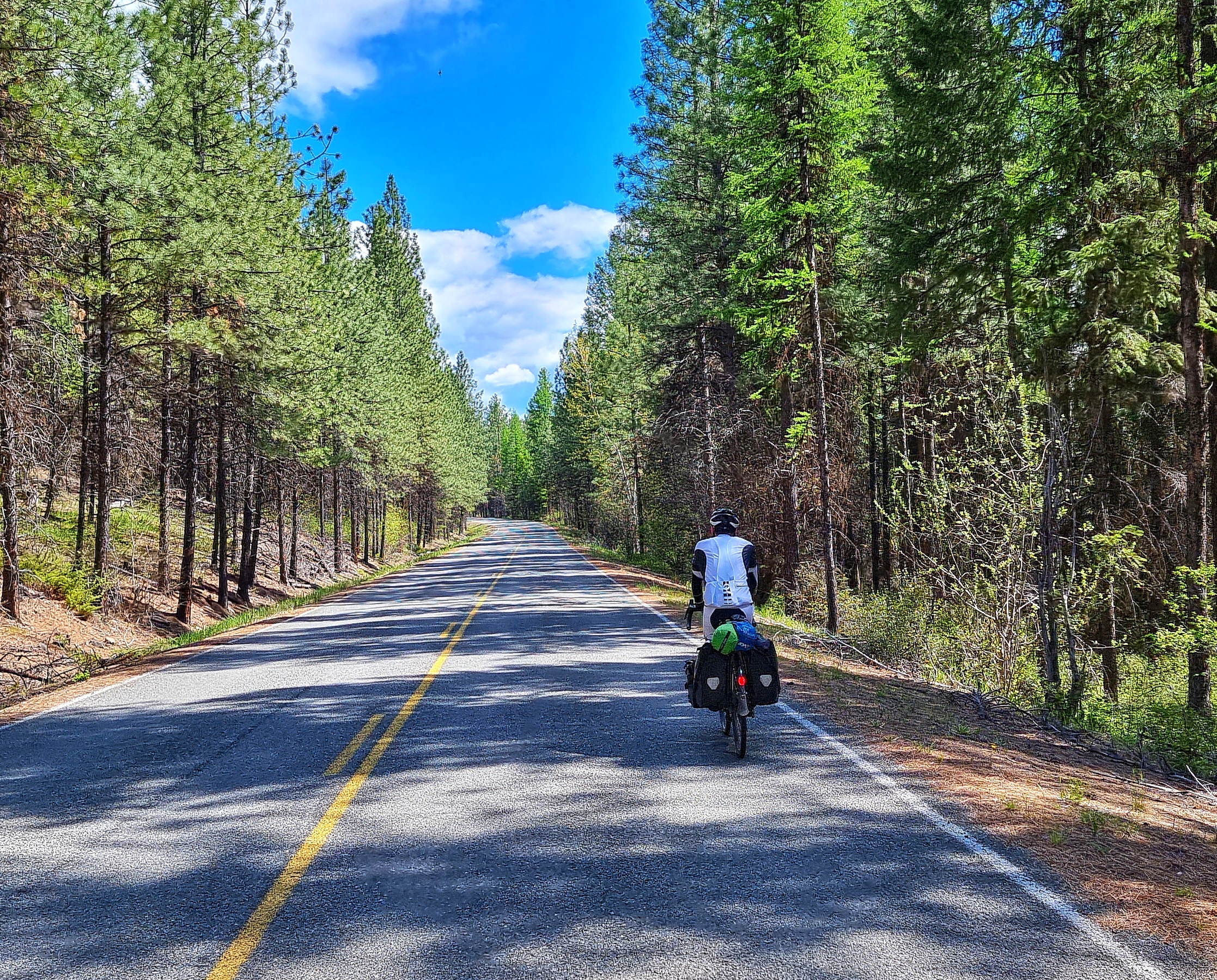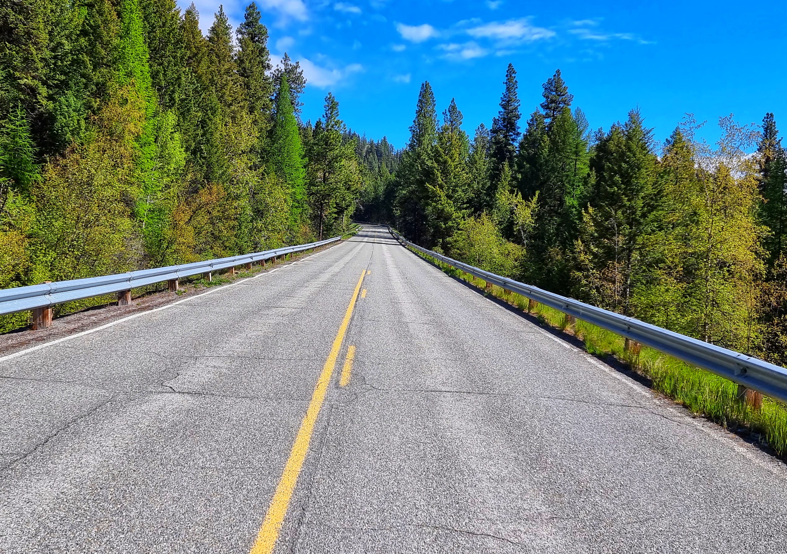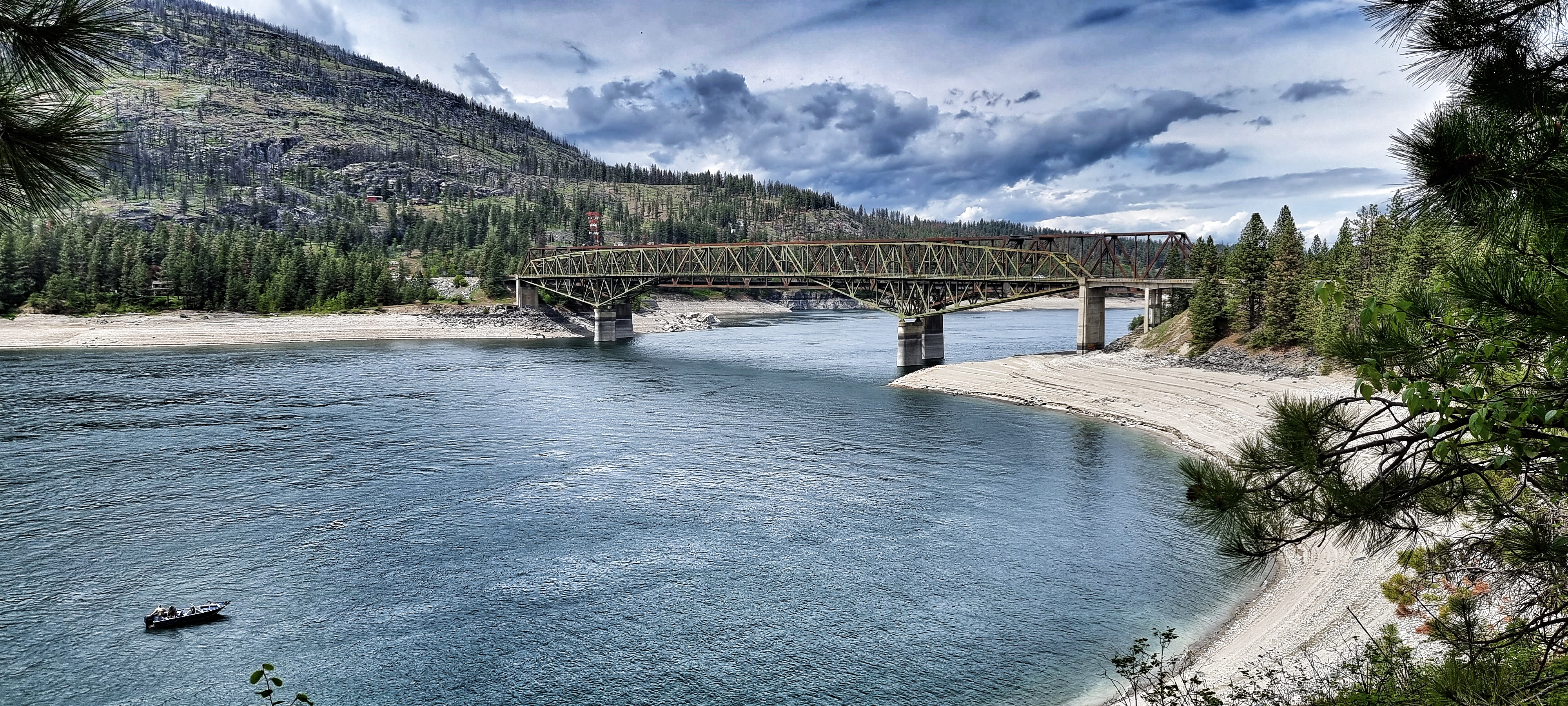 Heading East, we joined the US 2 & immediately started climbing, nothing severe, but enough to wake the legs up! We reached the summit of the climb just as a huge freight train was heading in the opposite direction – this one was double stacked with containers. The road continued to rise & fall gently, as we occasionally caught views of the Middle Fork Flathead river below.