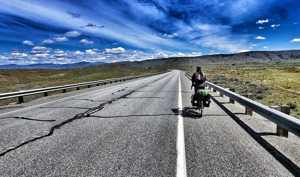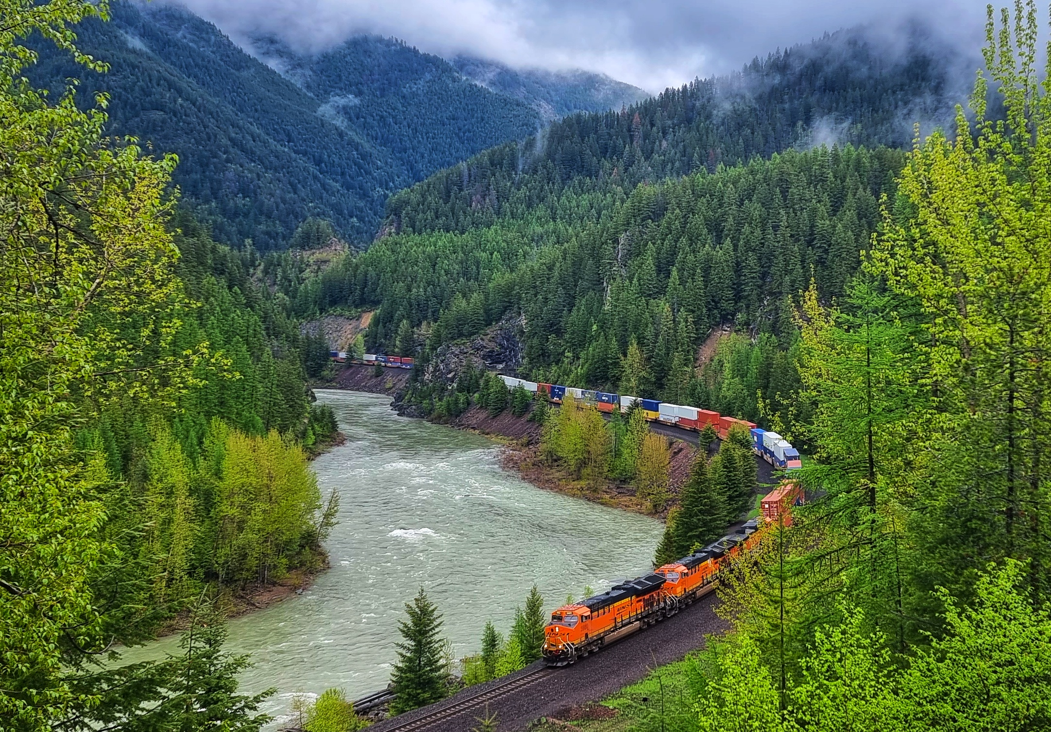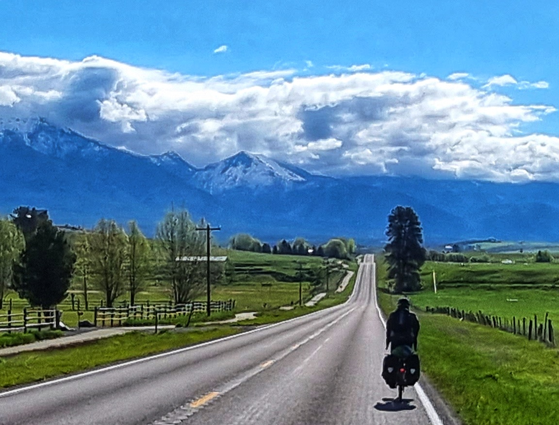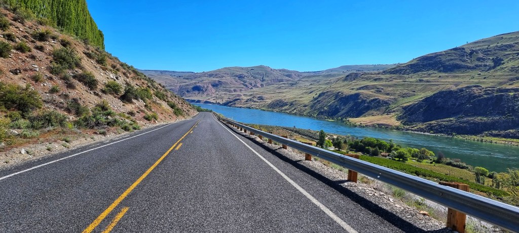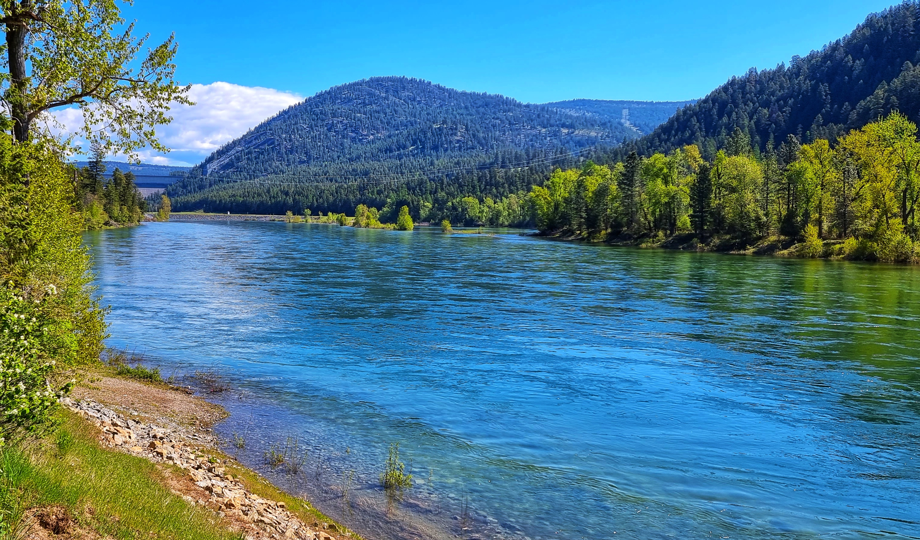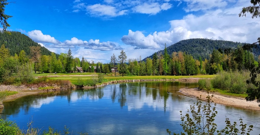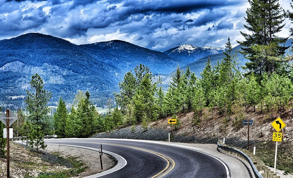 Heading East, we joined the US 2 & immediately started climbing, nothing severe, but enough to wake the legs up! We reached the summit of the climb just as a huge freight train was heading in the opposite direction – this one was double stacked with containers. The road continued to rise & fall gently, as we occasionally caught views of the Middle Fork Flathead river below.