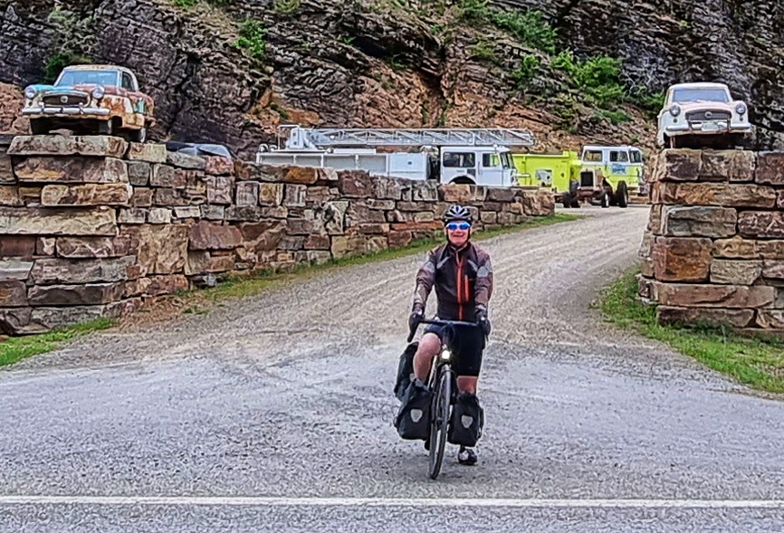 Just round the corner the river & road took separate paths. We now started climbing in earnest, but the great thing with GTTSR is that the gradient never exceeds 6% – the original design by George Goodwin in 1918 recommended a steep, 15 hairpin climb up Logan Creek. However, a later adjustment by Tom Vint resulted in a shallower gradient & only required one switchback – thanks Tom!!