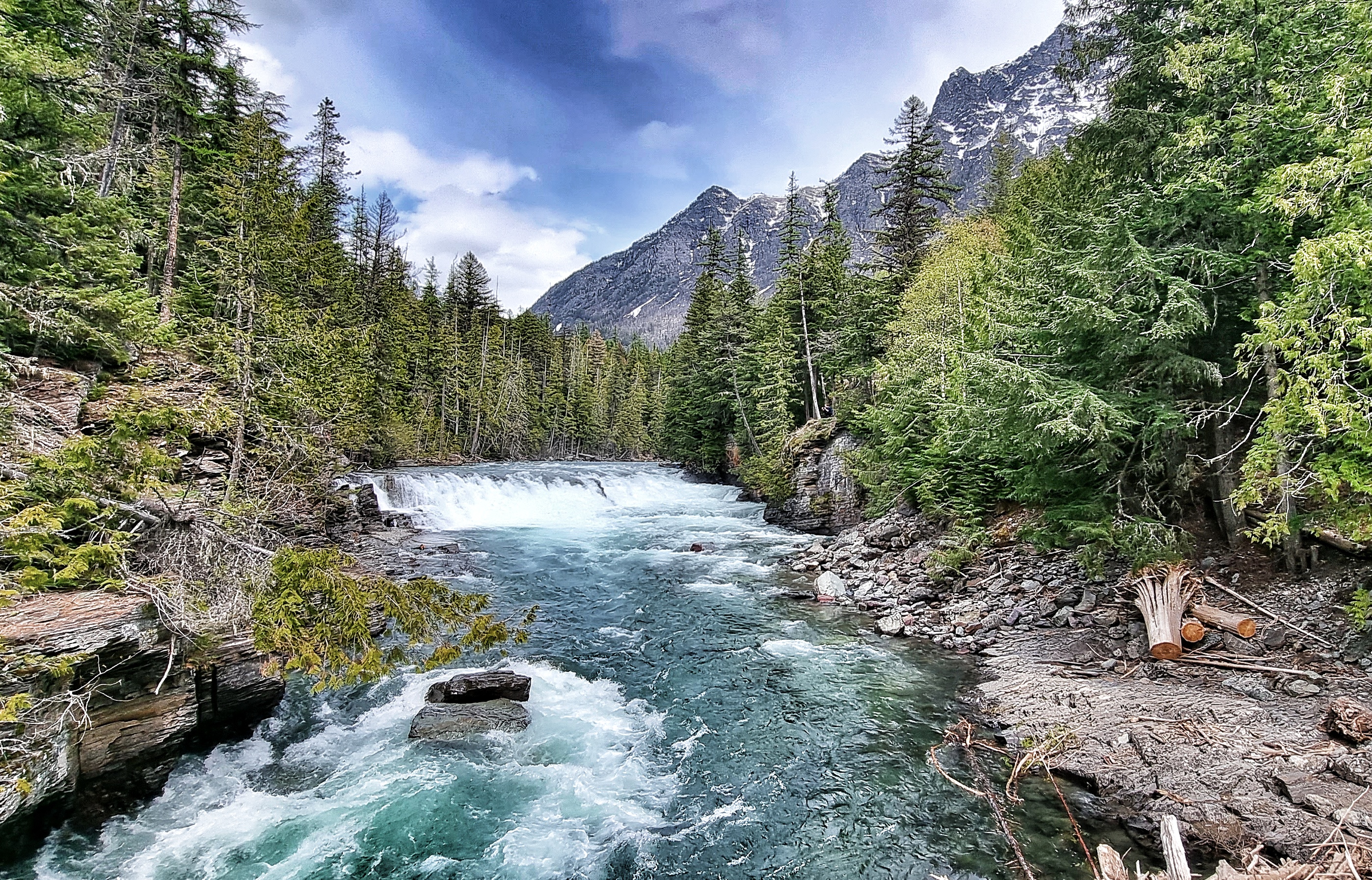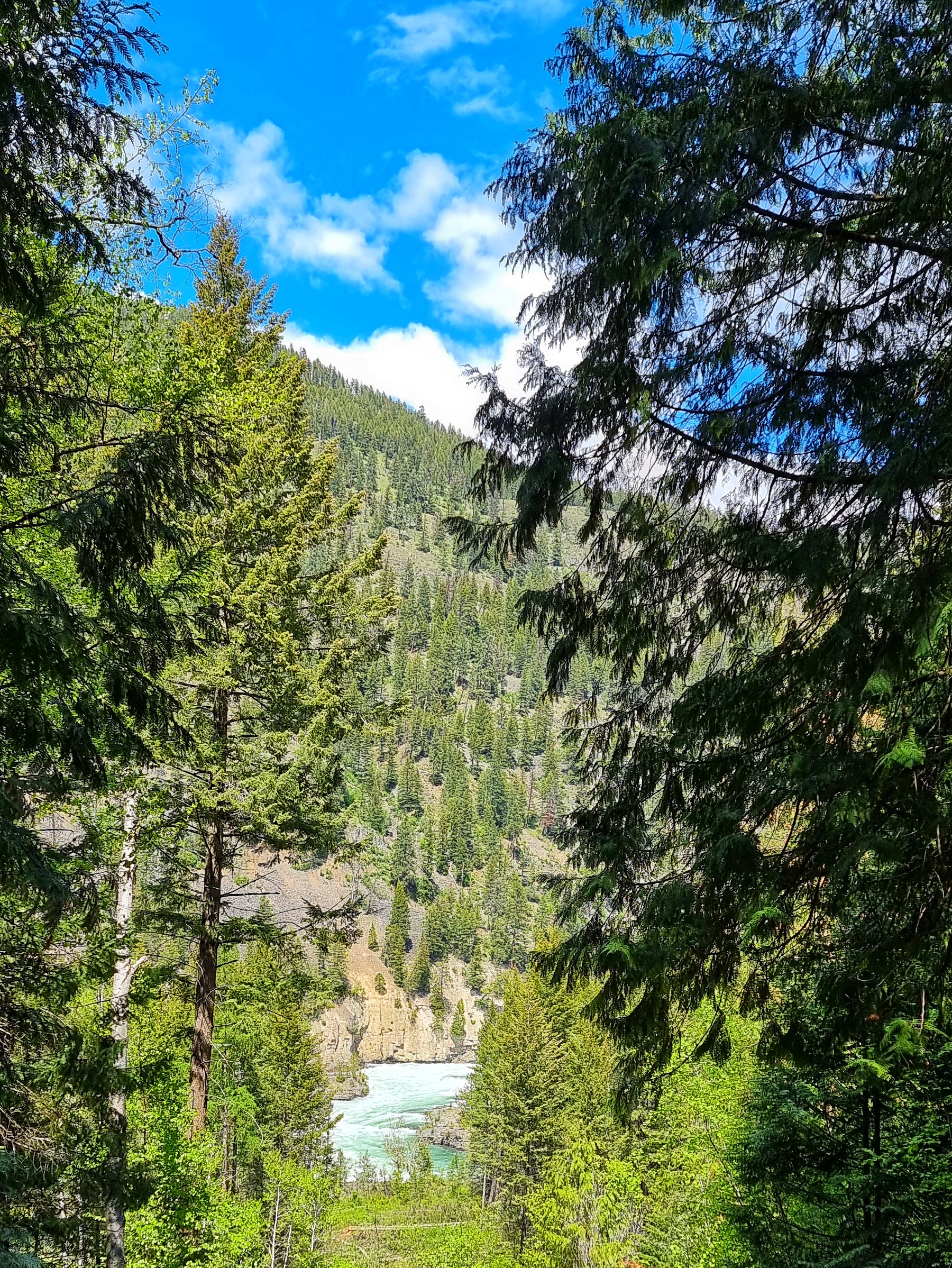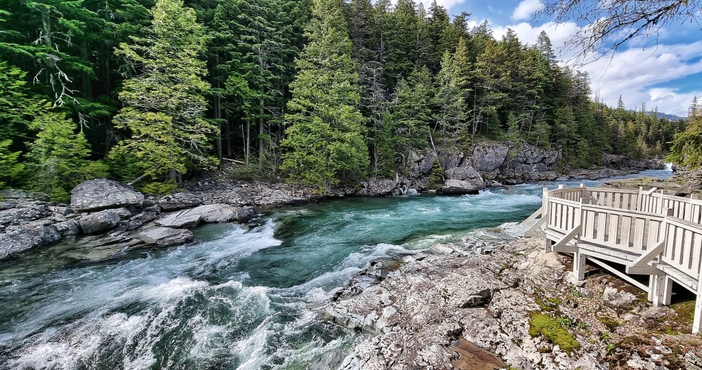 As we reached our hotel, we checked in & dropped off our panniers – the day’s adventure was nowhere near an end! We had plans to explore as much of the GTTSR as possible on our lightened steeds! From here we would be exploring the McDonald Creek valley rather than the lake. Our first stop was a narrow part of the river at John’s Lake Loop, with views up to the small, but fast flowing waterfall.