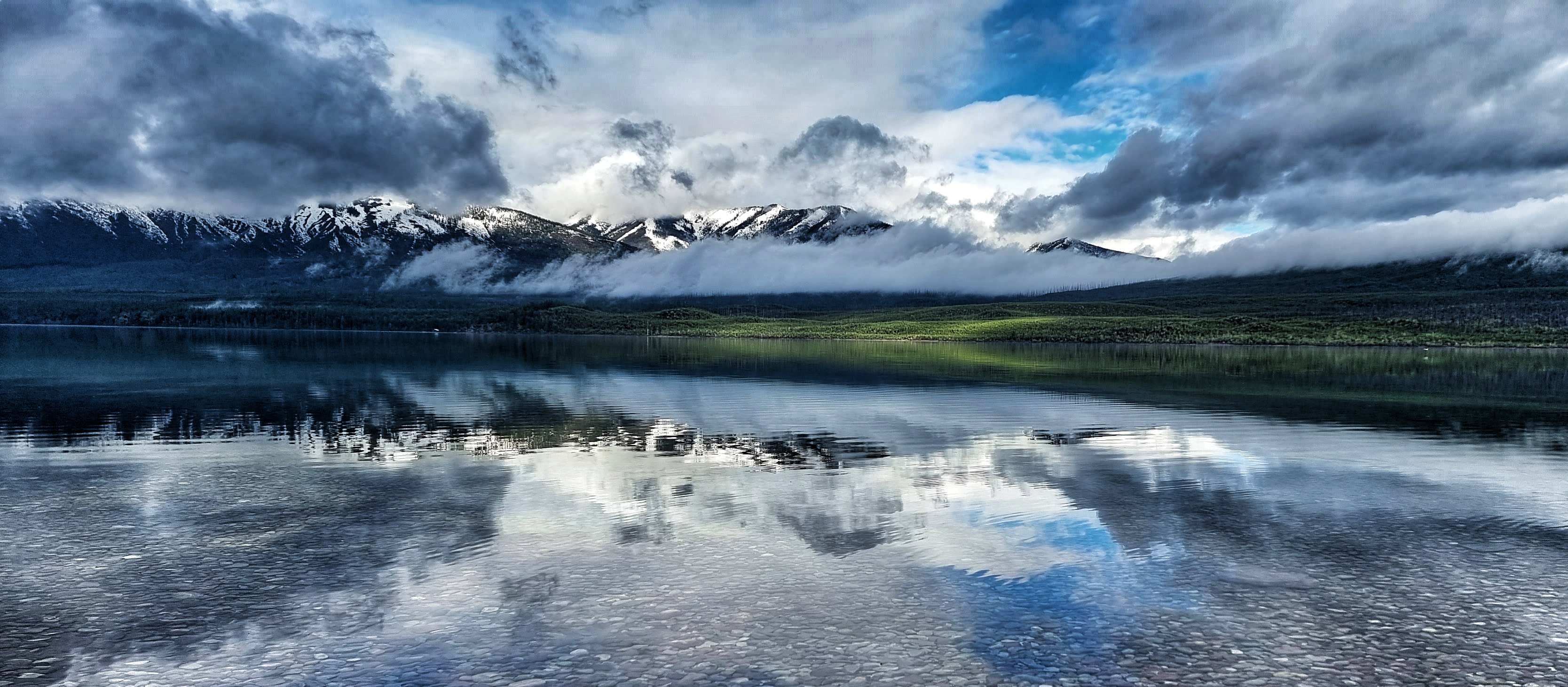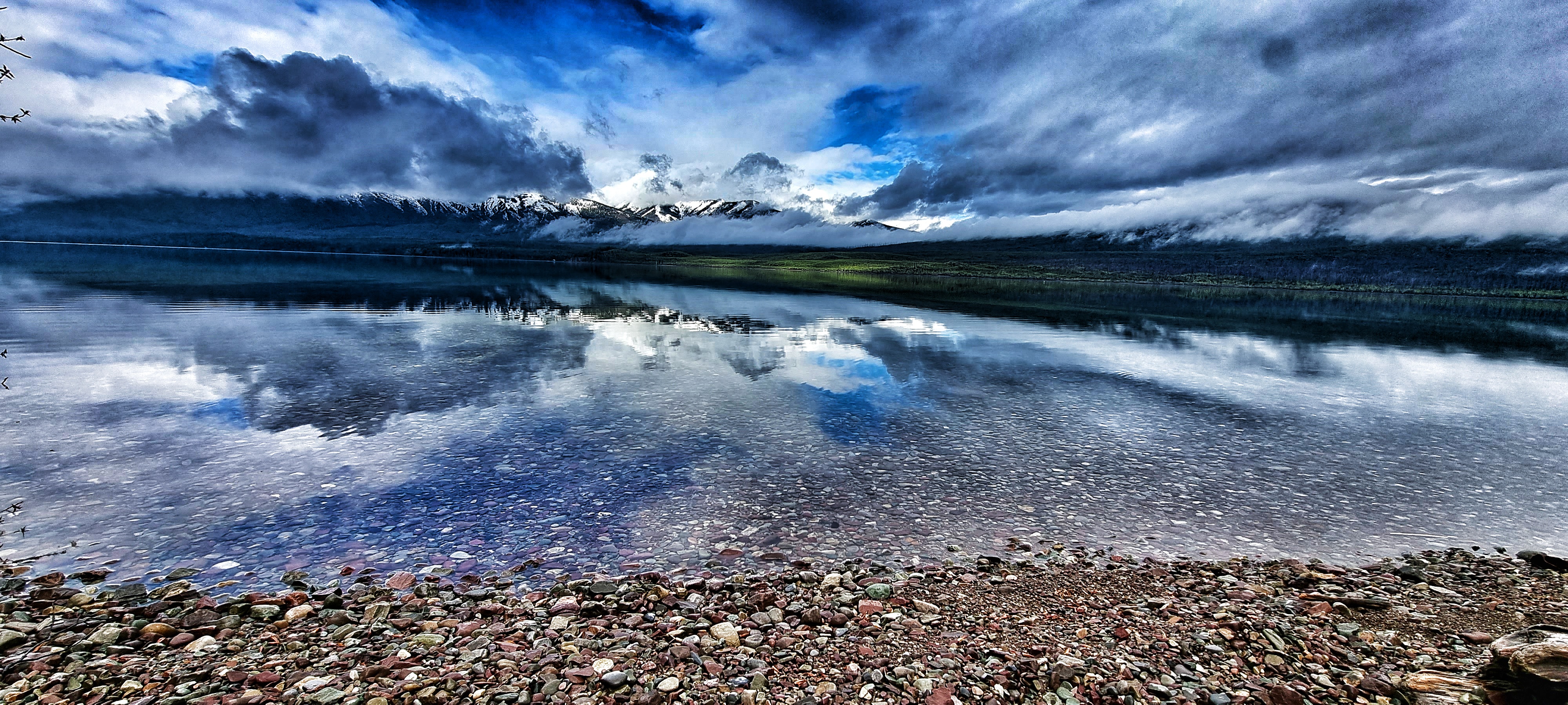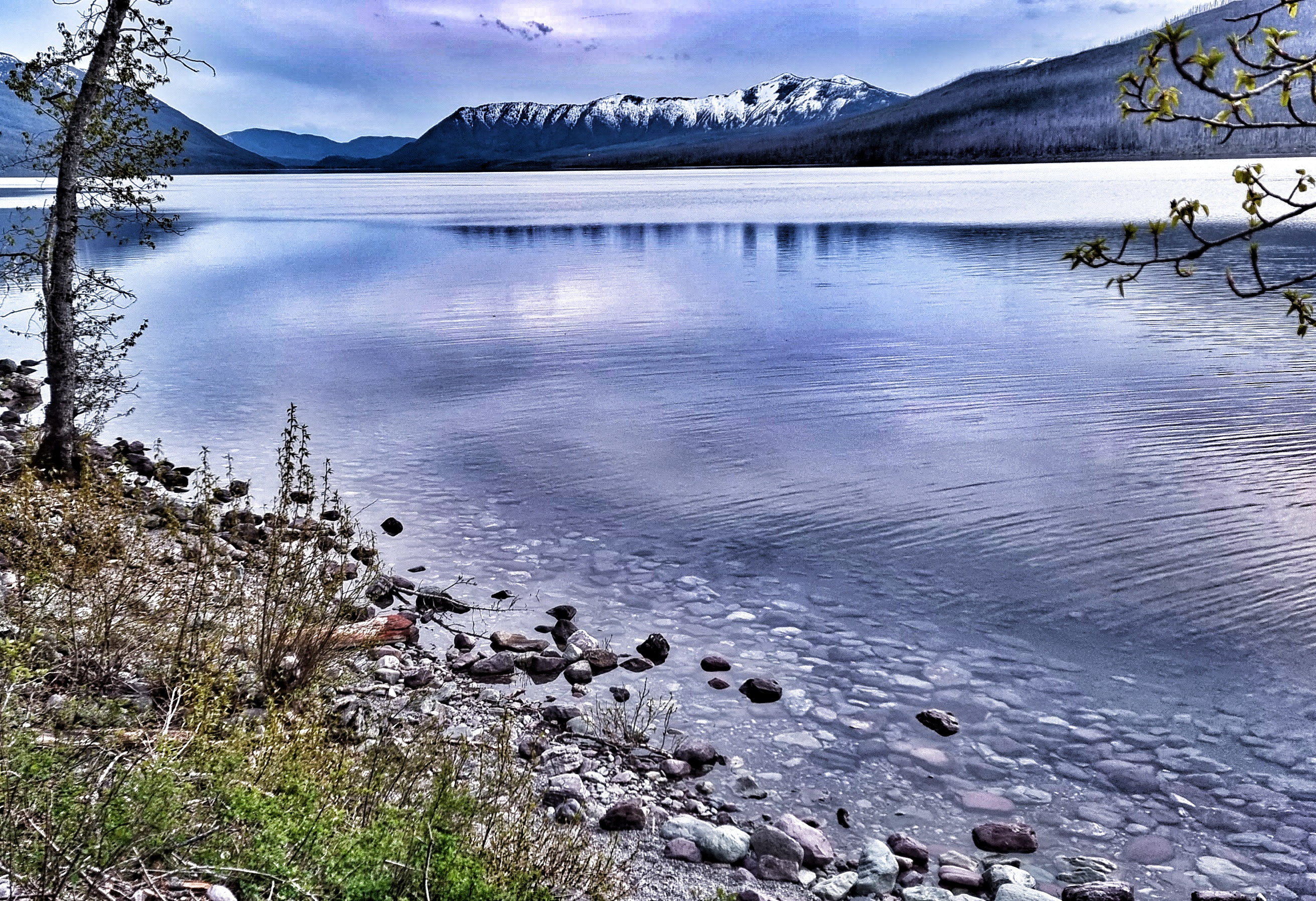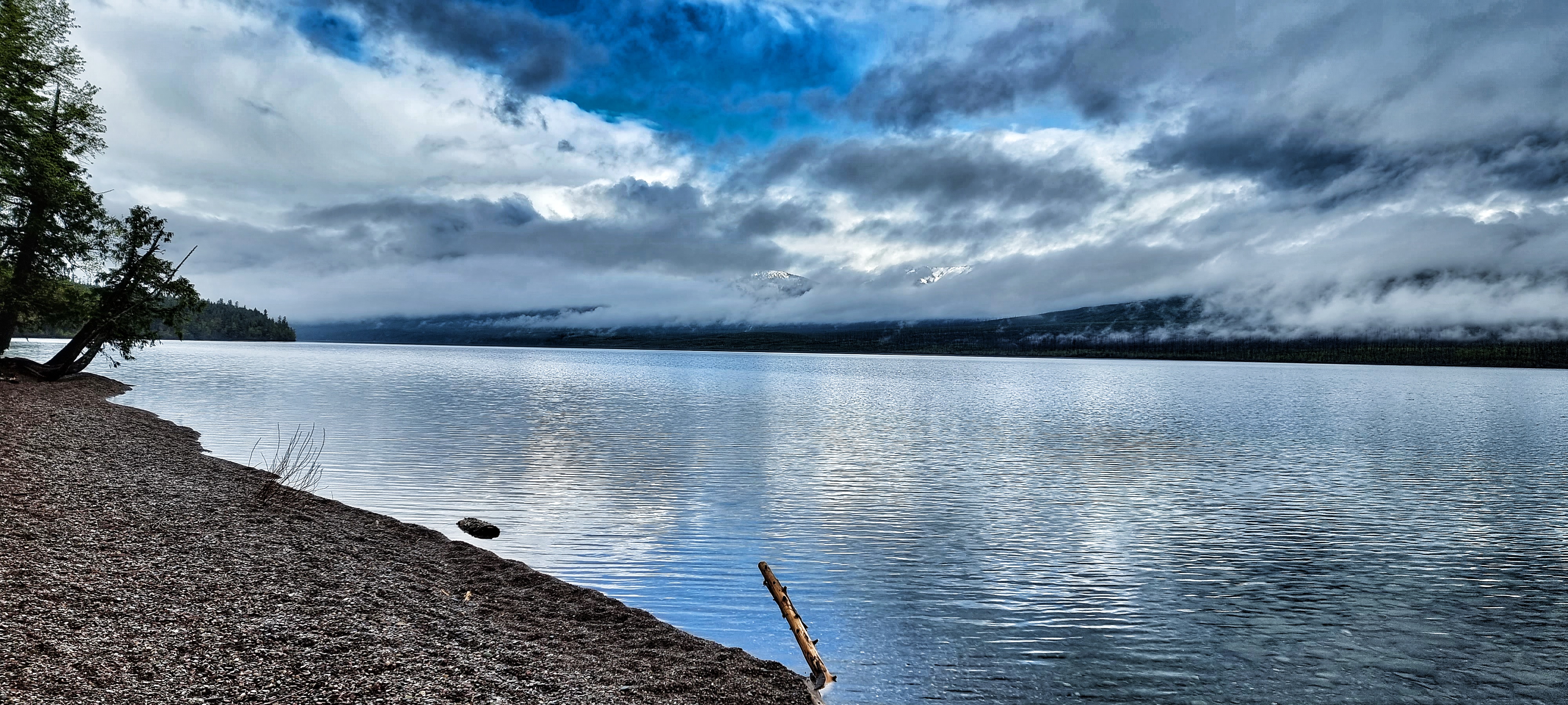 We woke up to slate grey, moody skies – a complete contrast that made us appreciate how fortunate we had been yesterday to see GNP in its fully glory. It was almost as if the curtains had been pulled across the big, snowy peaks today as we made our way back along the lakeside.