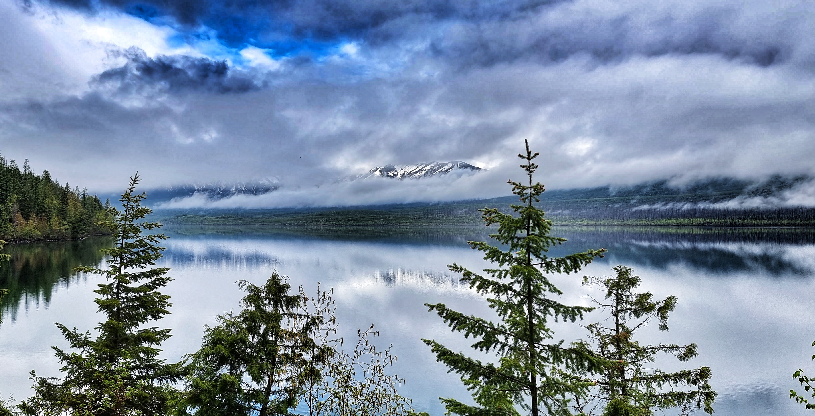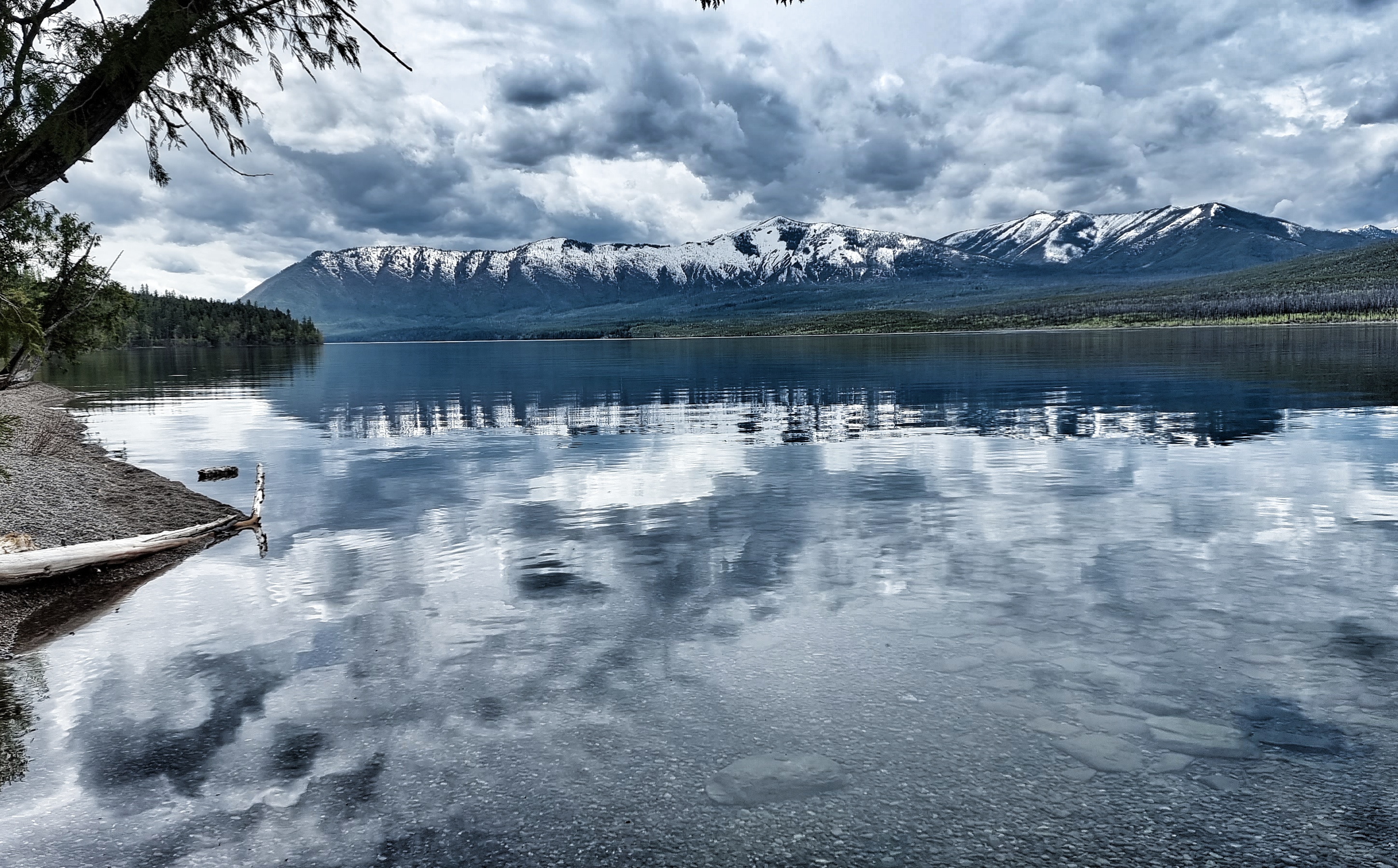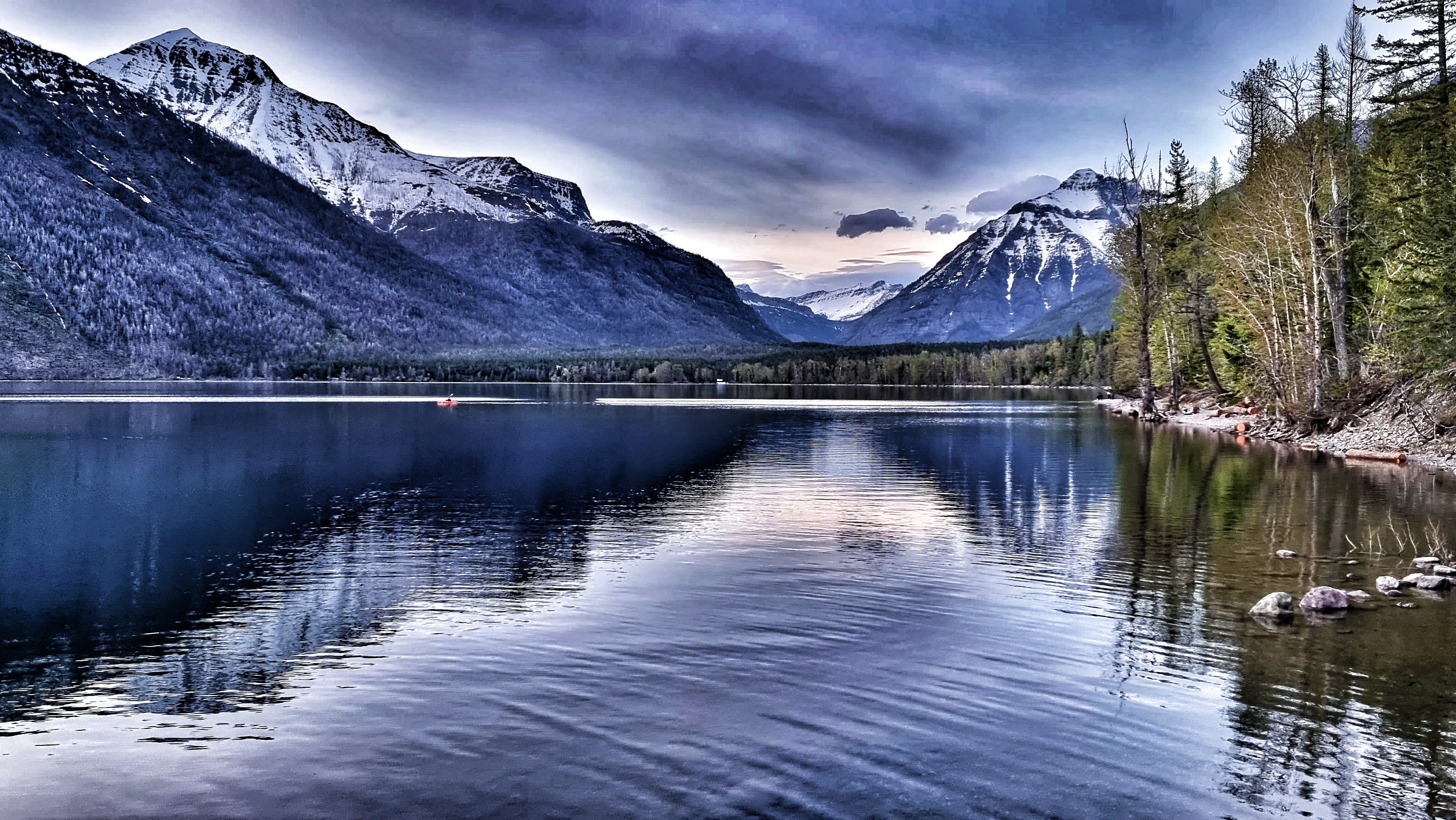 We woke up to slate grey, moody skies – a complete contrast that made us appreciate how fortunate we had been yesterday to see GNP in its fully glory. It was almost as if the curtains had been pulled across the big, snowy peaks today as we made our way back along the lakeside.