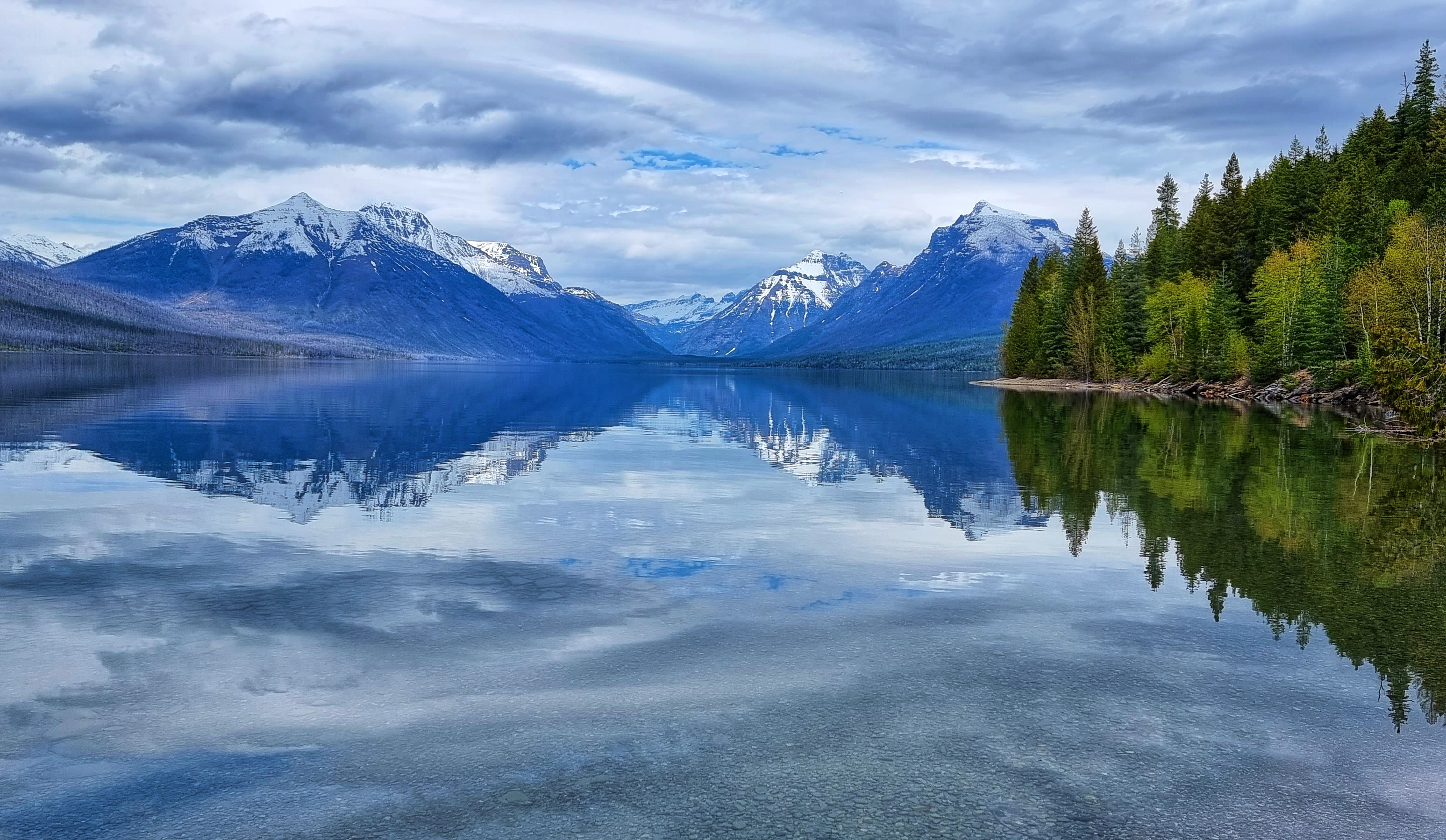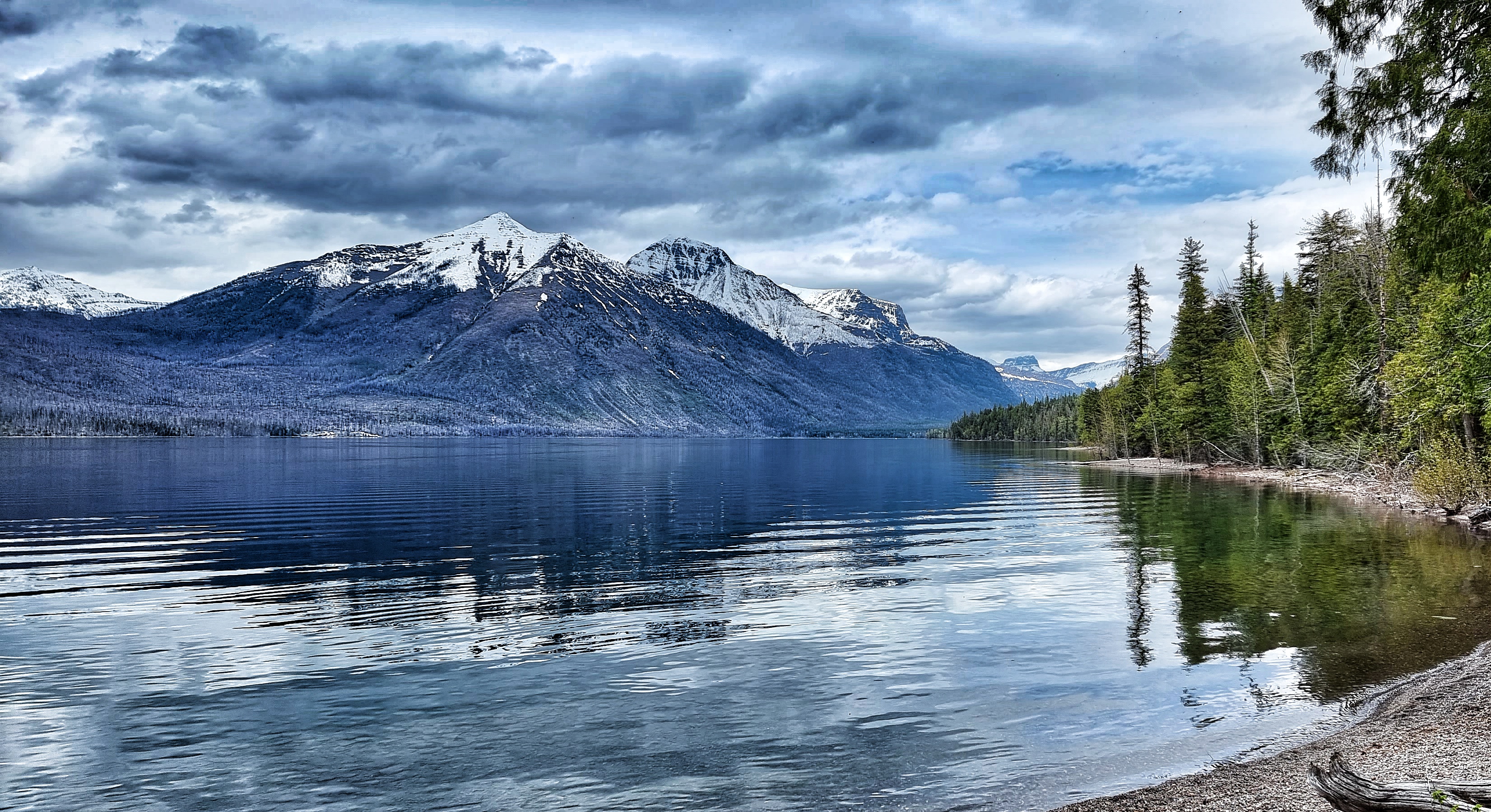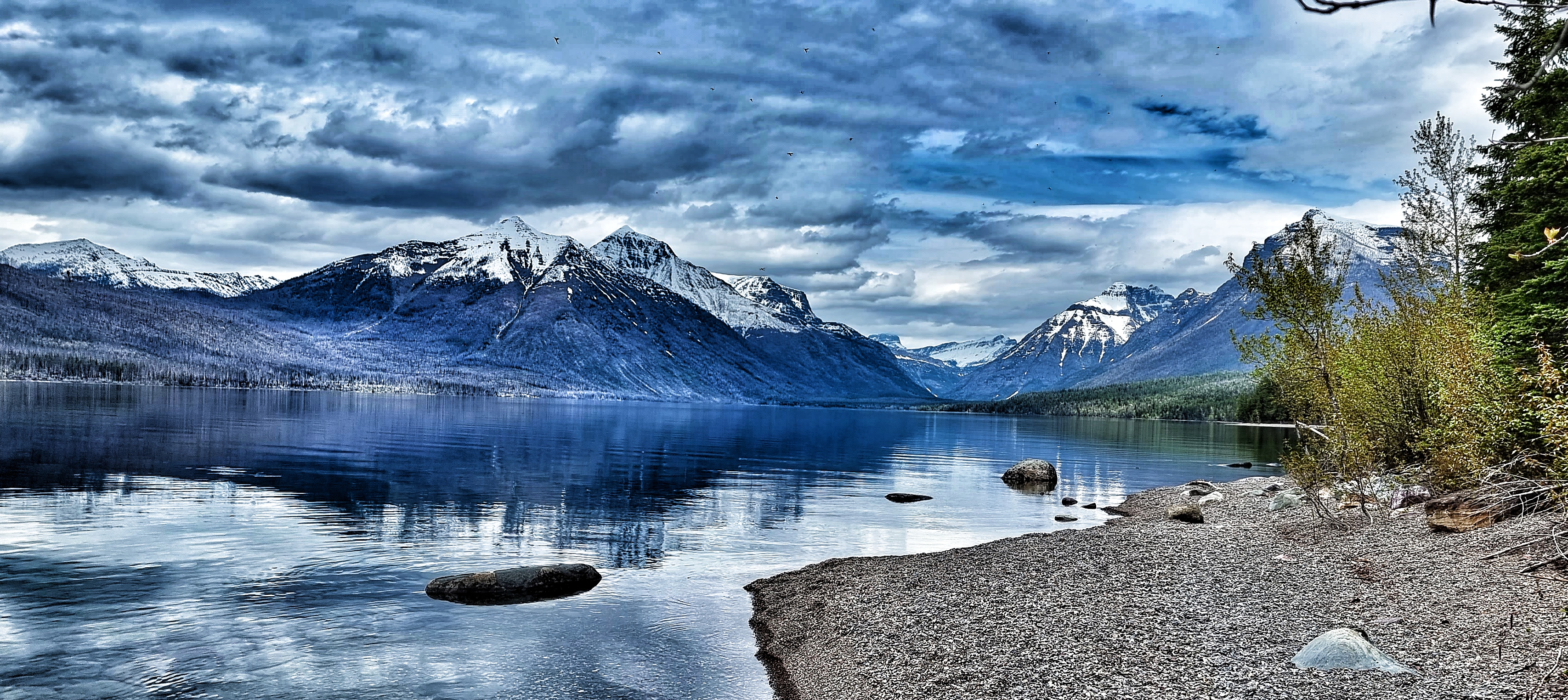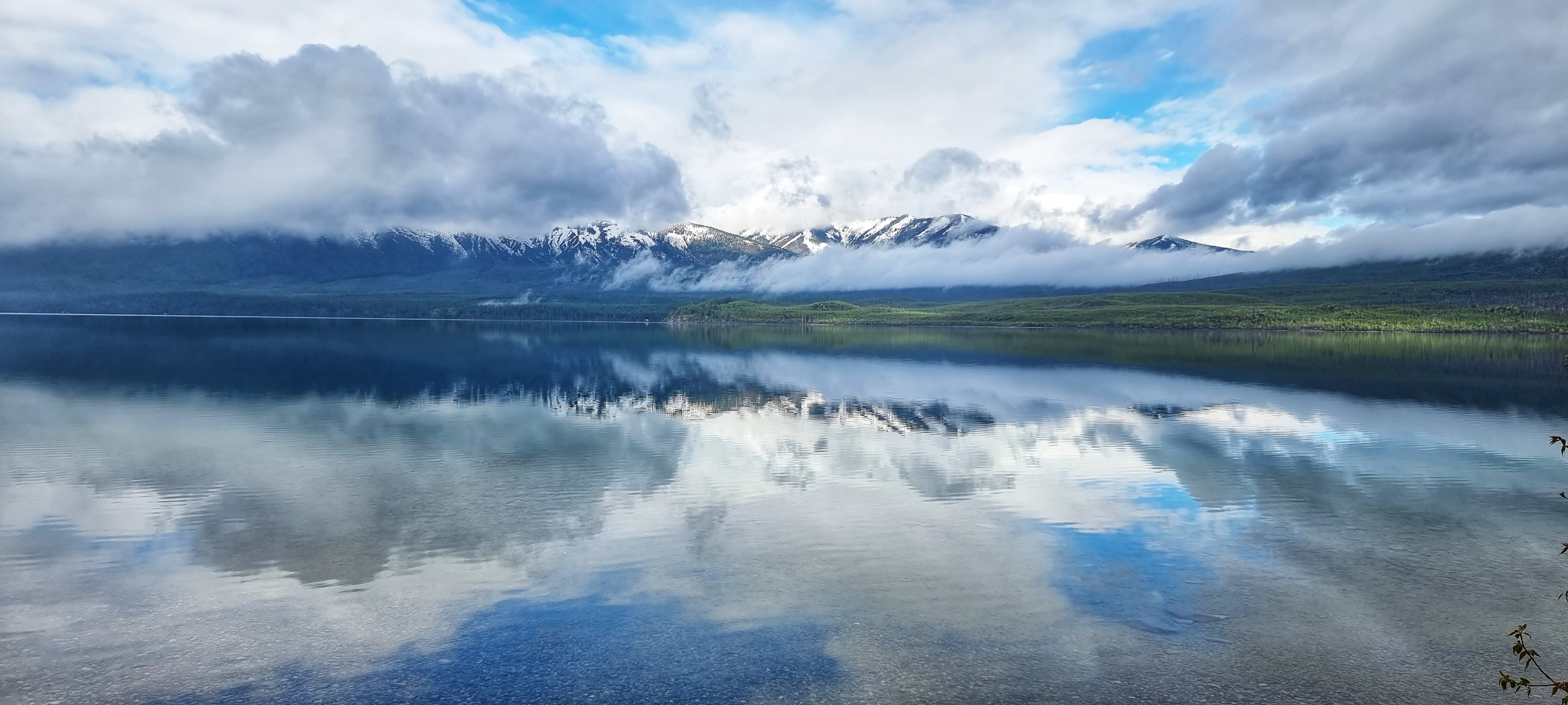 We woke up to slate grey, moody skies – a complete contrast that made us appreciate how fortunate we had been yesterday to see GNP in its fully glory. It was almost as if the curtains had been pulled across the big, snowy peaks today as we made our way back along the lakeside.
