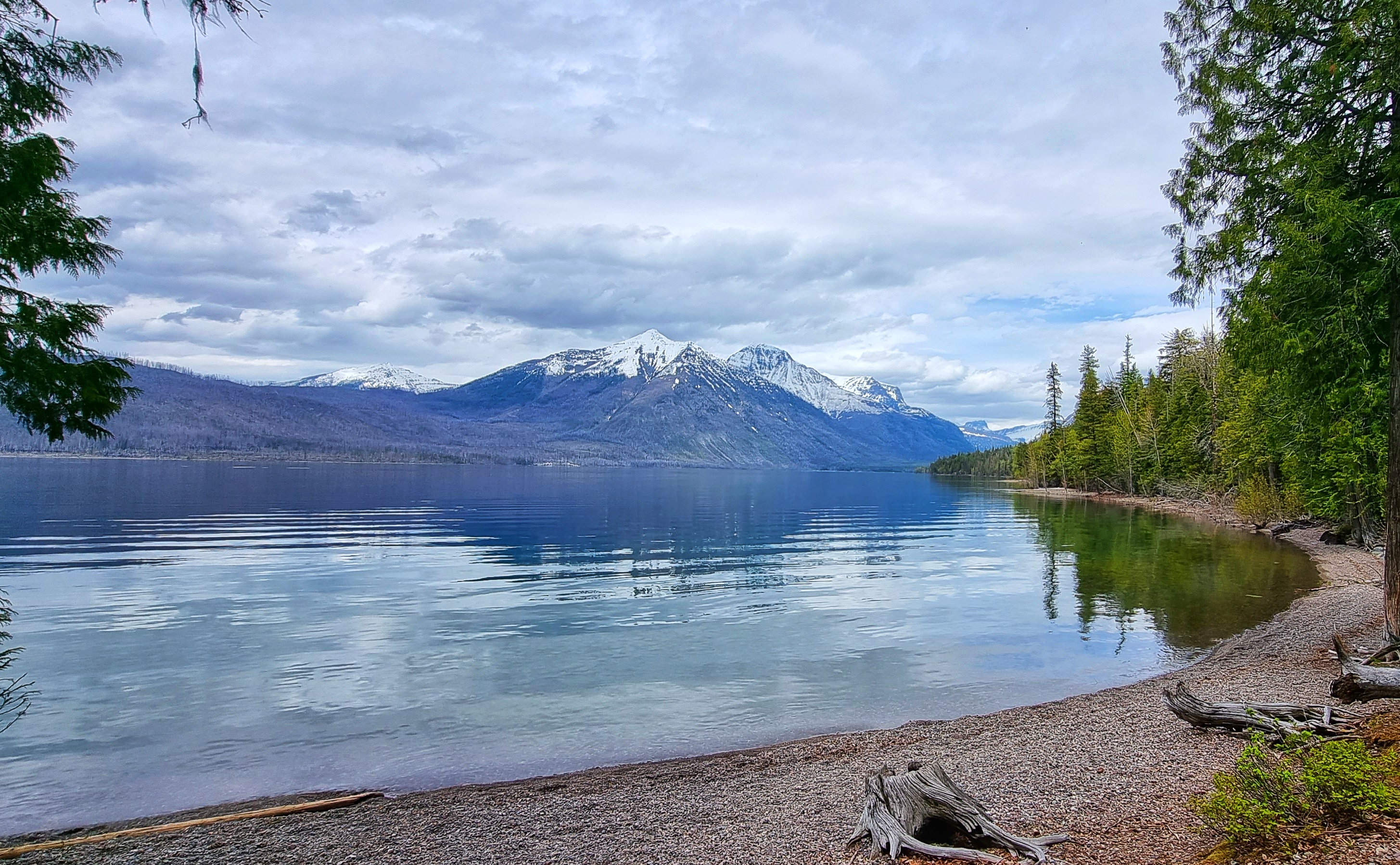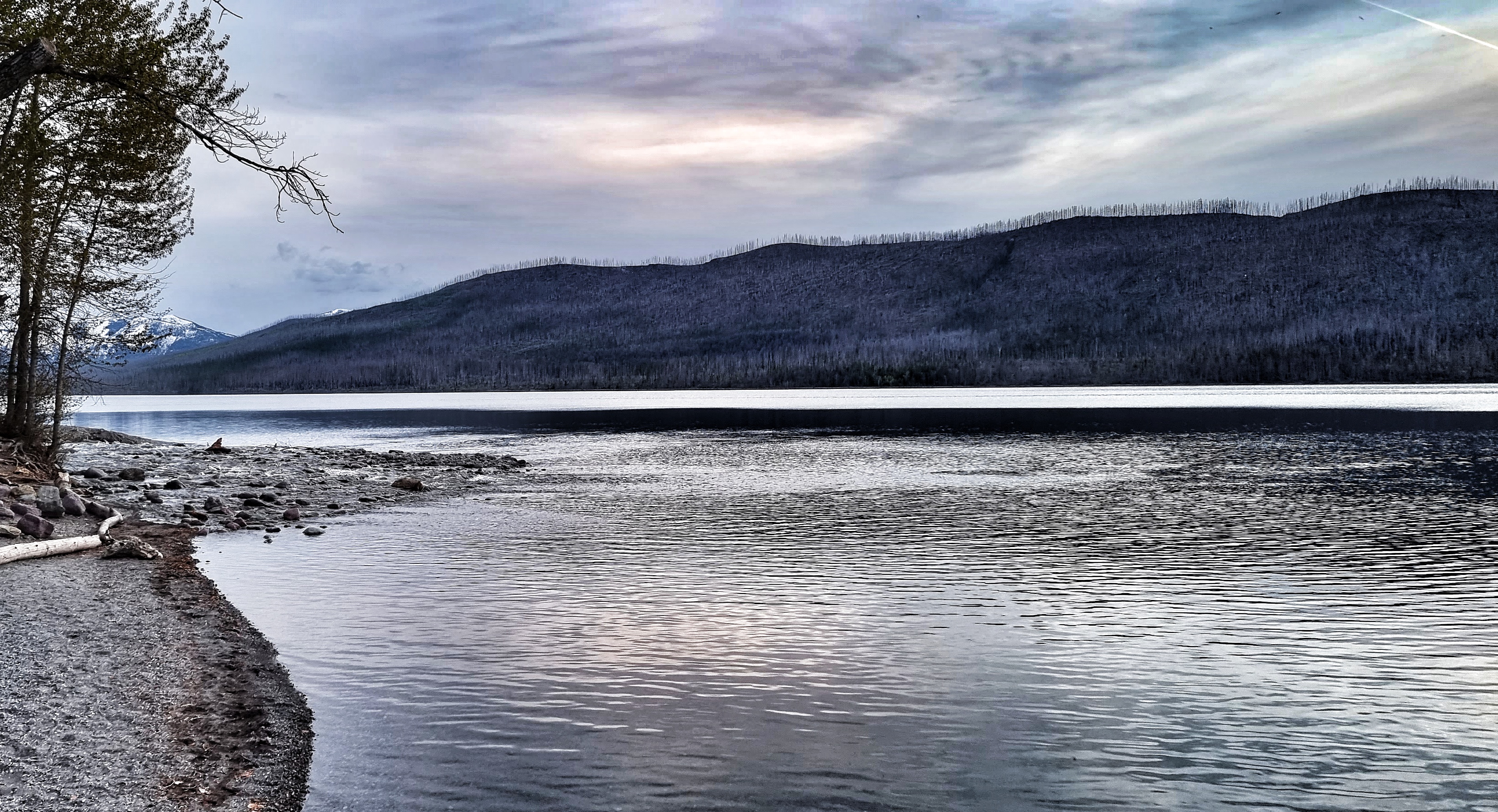 There was one beach that provided end to end views of Lake McDonald, as well as the surrounding mountains & burnt forest on the opposite bank. There are wild forest fires on a regular basis & they are left to run their course naturally – the most recent event in 2018 was caused by lightning, burned 14,522 acres of forest & destroyed 13 residences. This is all part of nature’s way of ensuring the ecology of GNP continues to flourish.
