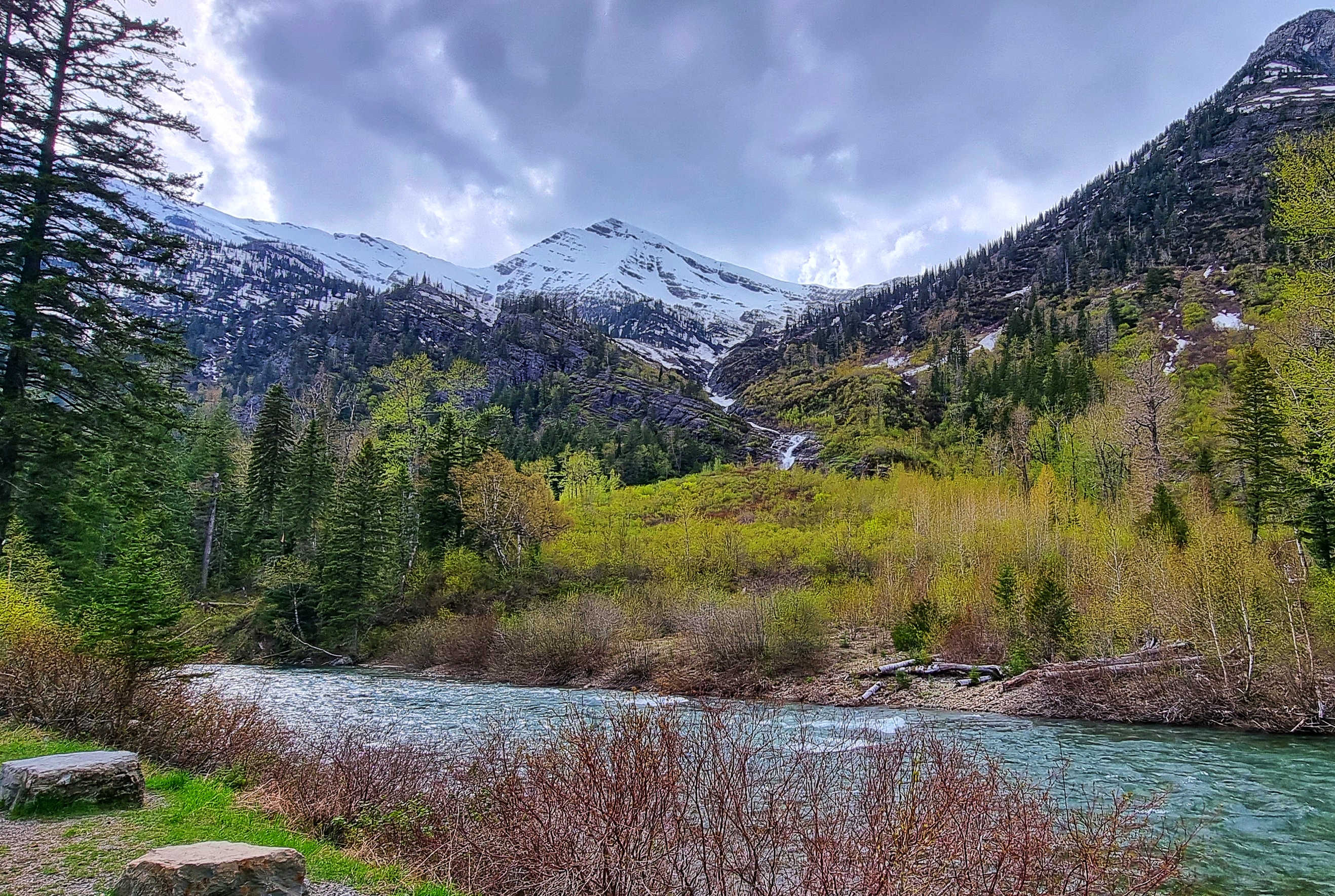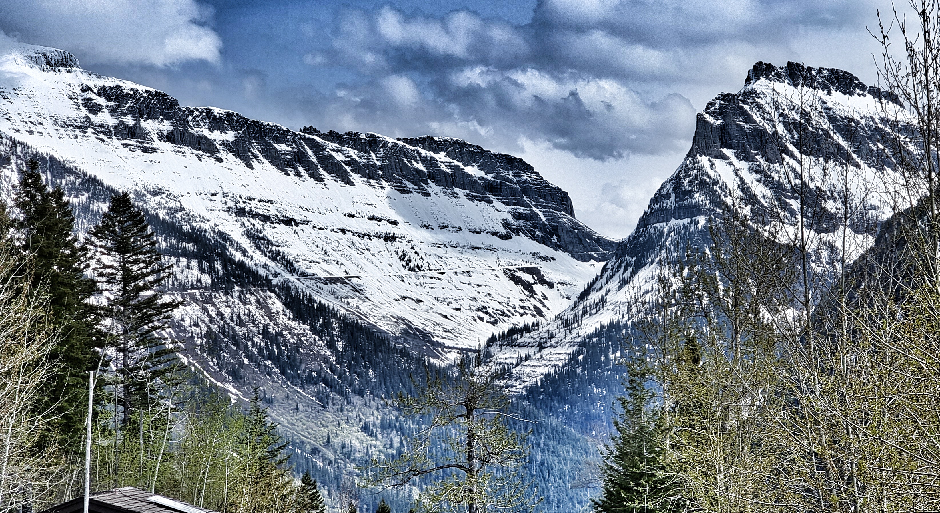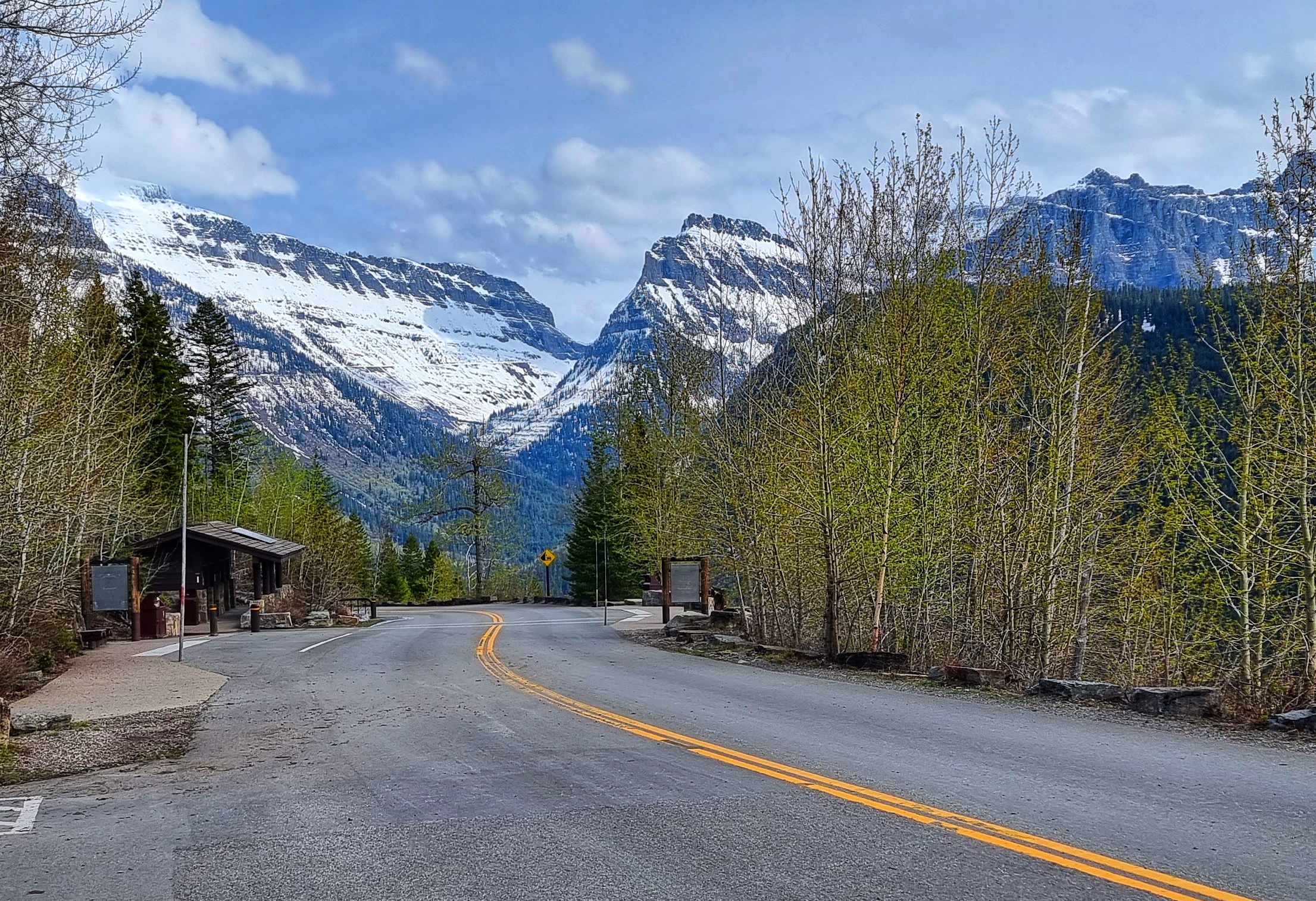 We arrived at the Ranger Station & each bought an America The Beautiful annual pass which gives us access to all the National Parks we plan to visit on our adventure. The Ranger who served us was a genuinely enthusiastic advocate of GNP & answered all my questions about how far up the Going To The Sun Road (GTTSR) motorists & cyclists could travel at the moment & when the Pass may be open. The answers to both questions appear later!
