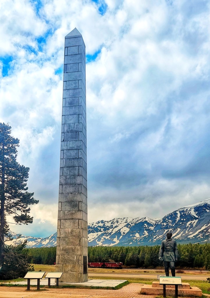The Marias Pass is the lowest crossing point of the Continental Divide in Montana. Slippery Bill Morrison had claimed squatters rights to 160 acres of land atop the Marias Pass, however he donated a portion of his land to enable the Theodore Roosevelt Memorial to be built in 1932 to recognise him making forest conservation a national policy. The monument is a tapering, 60 foot tall obelisk & is made of solid granite.