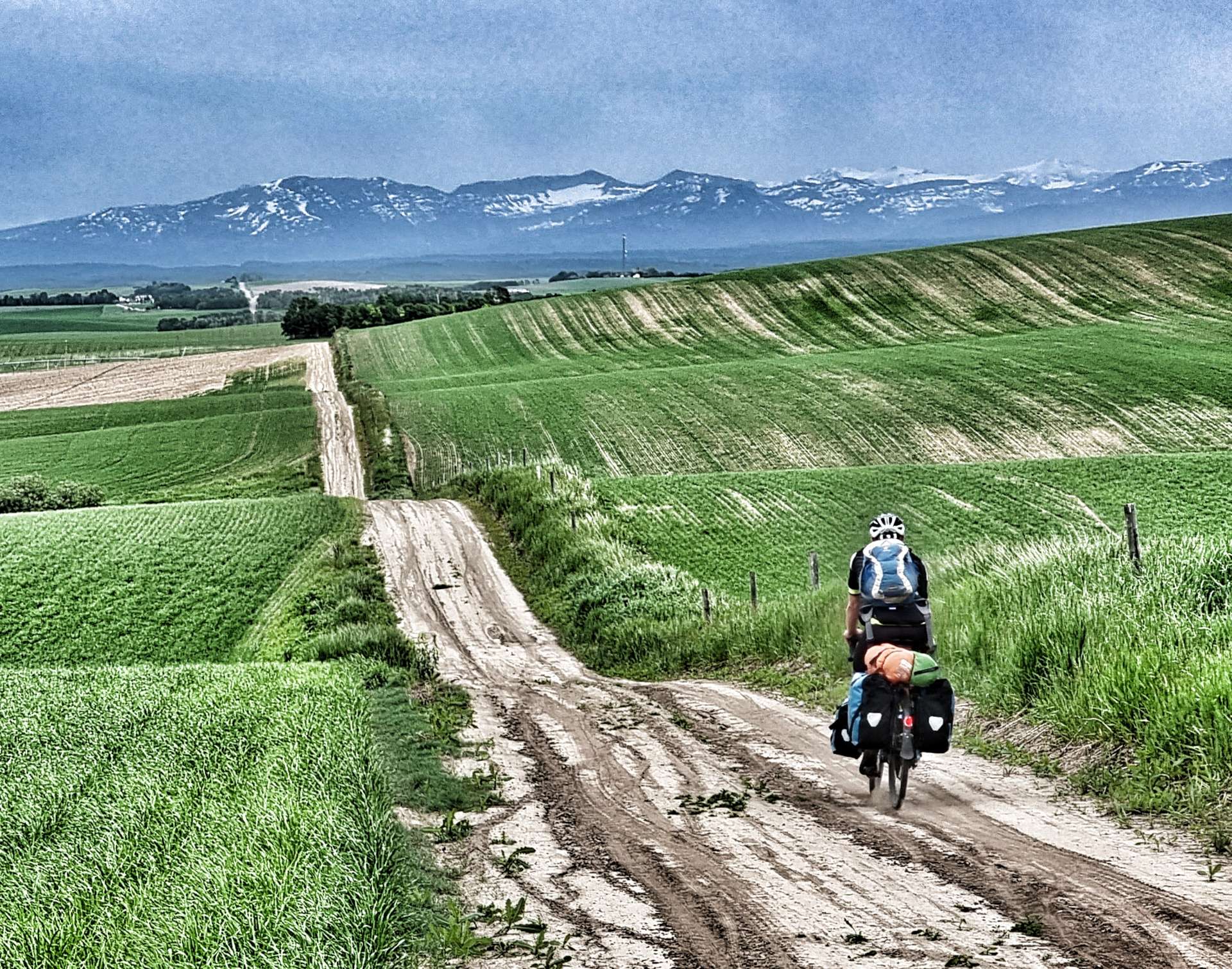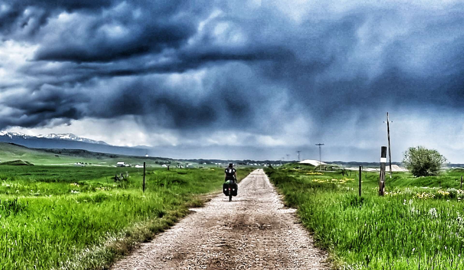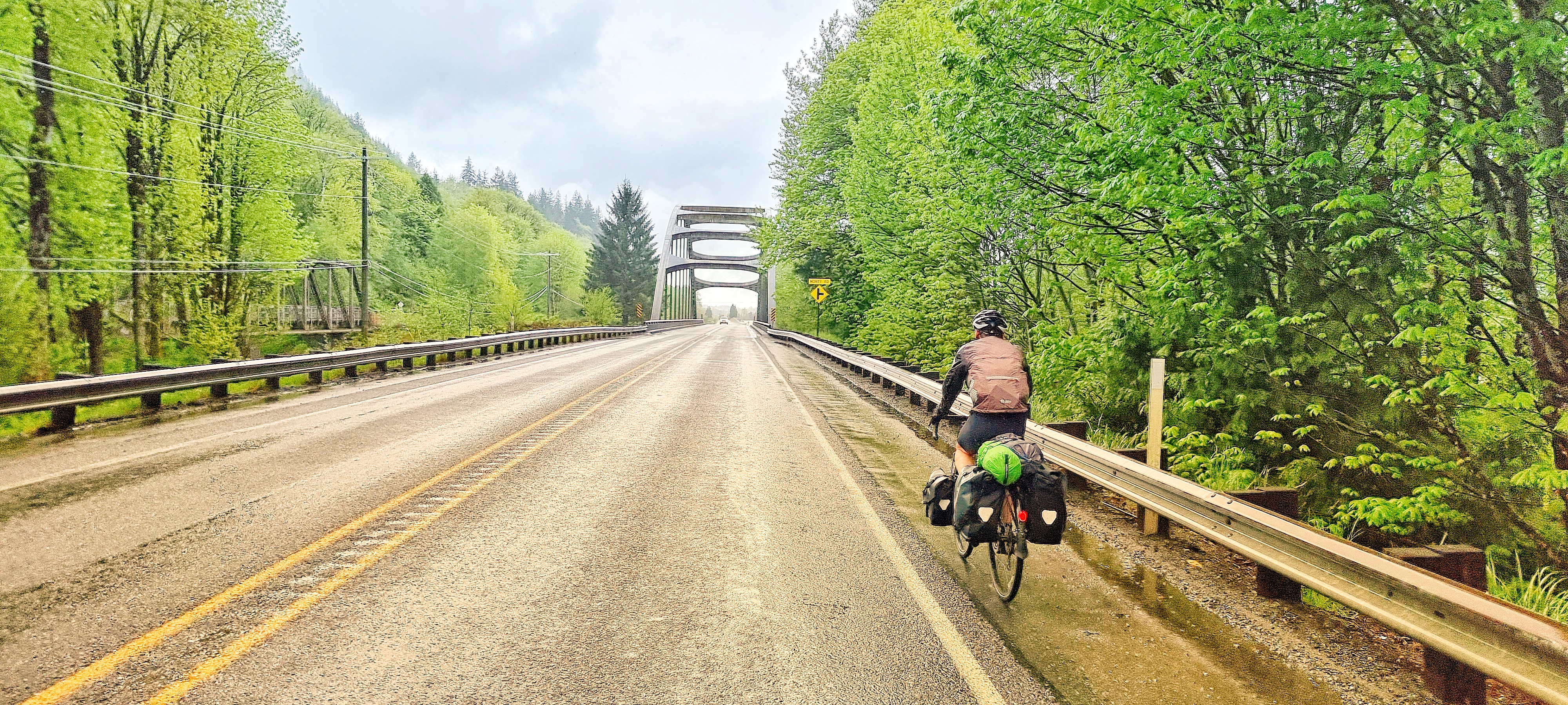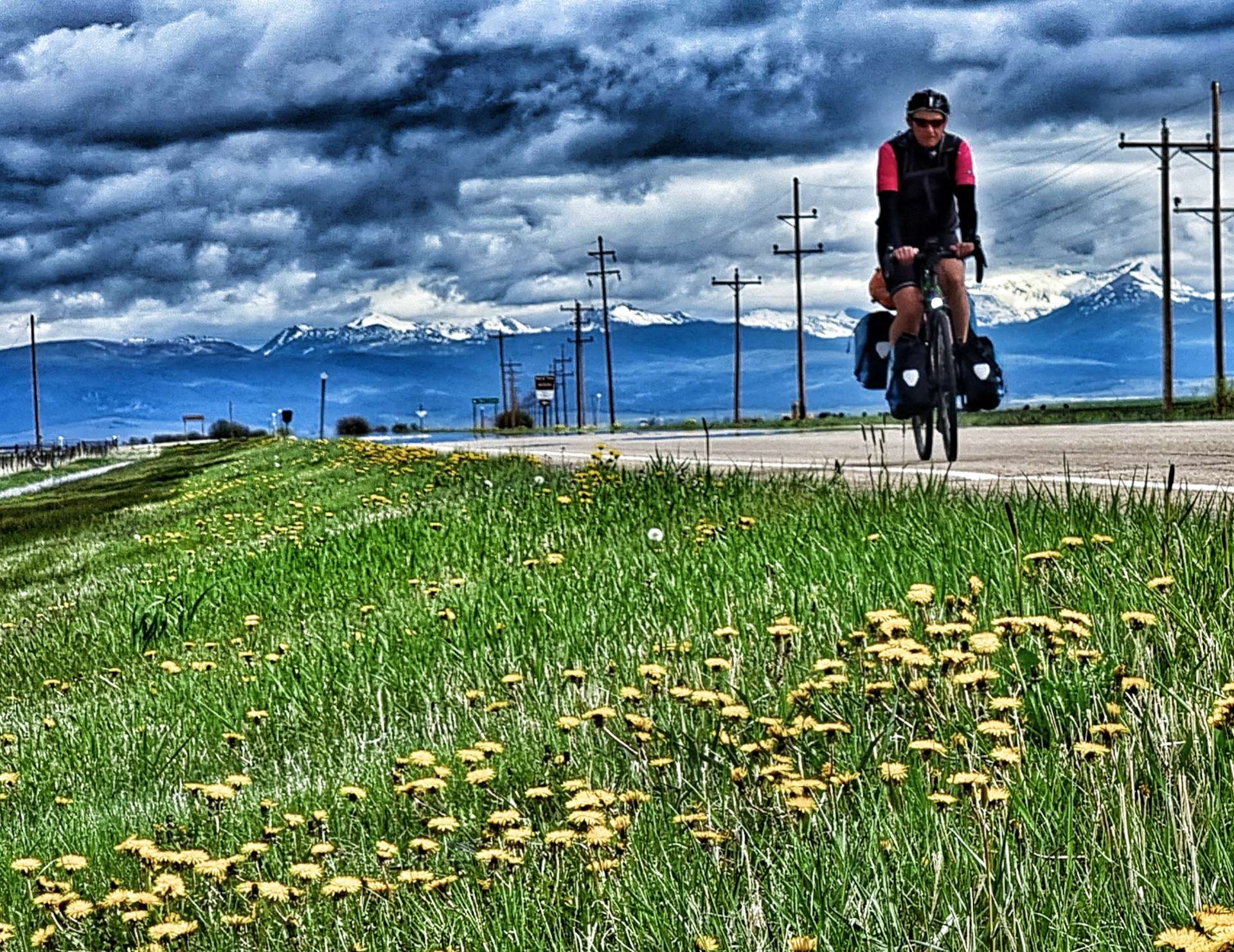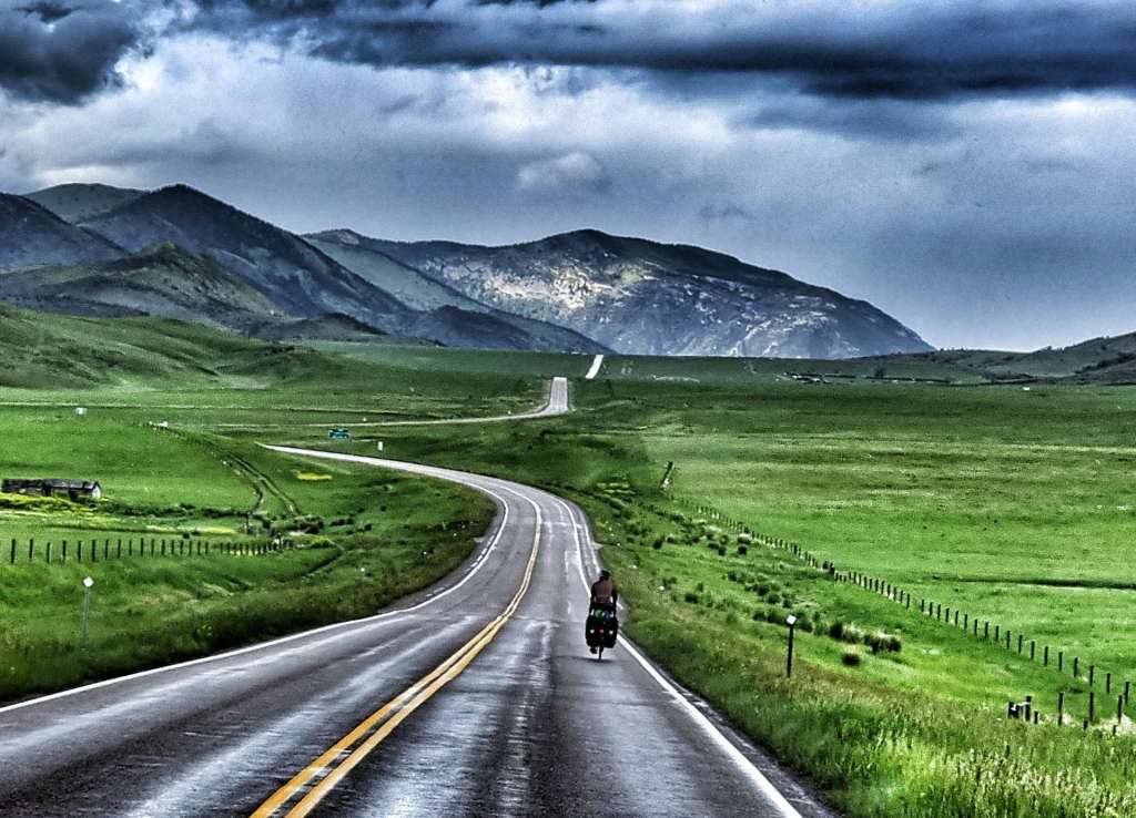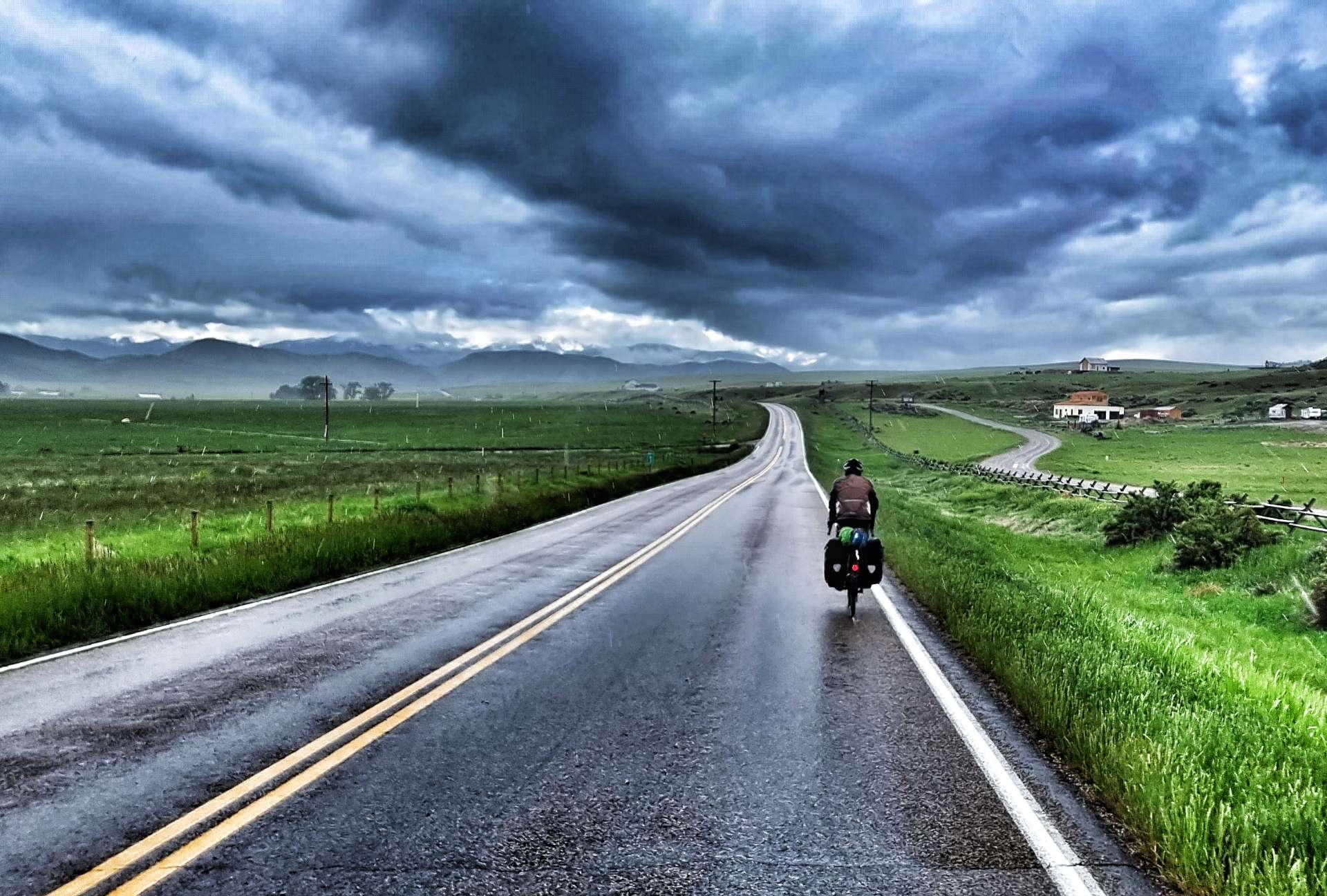 Leaving Driggs, we picked up a cycle track almost immediately that we’d be able to use for the first 9 miles until we reached Victor. We could see rain showers falling to either side of us, but somehow we remained dry – even one of the horses looked on in surprise! You may be able to see in the 2nd photo that Sean had taken most of his kit out of his rear left pannier, we were hoping that the reduced weight would increase the chance of the pannier surviving until Jackson.