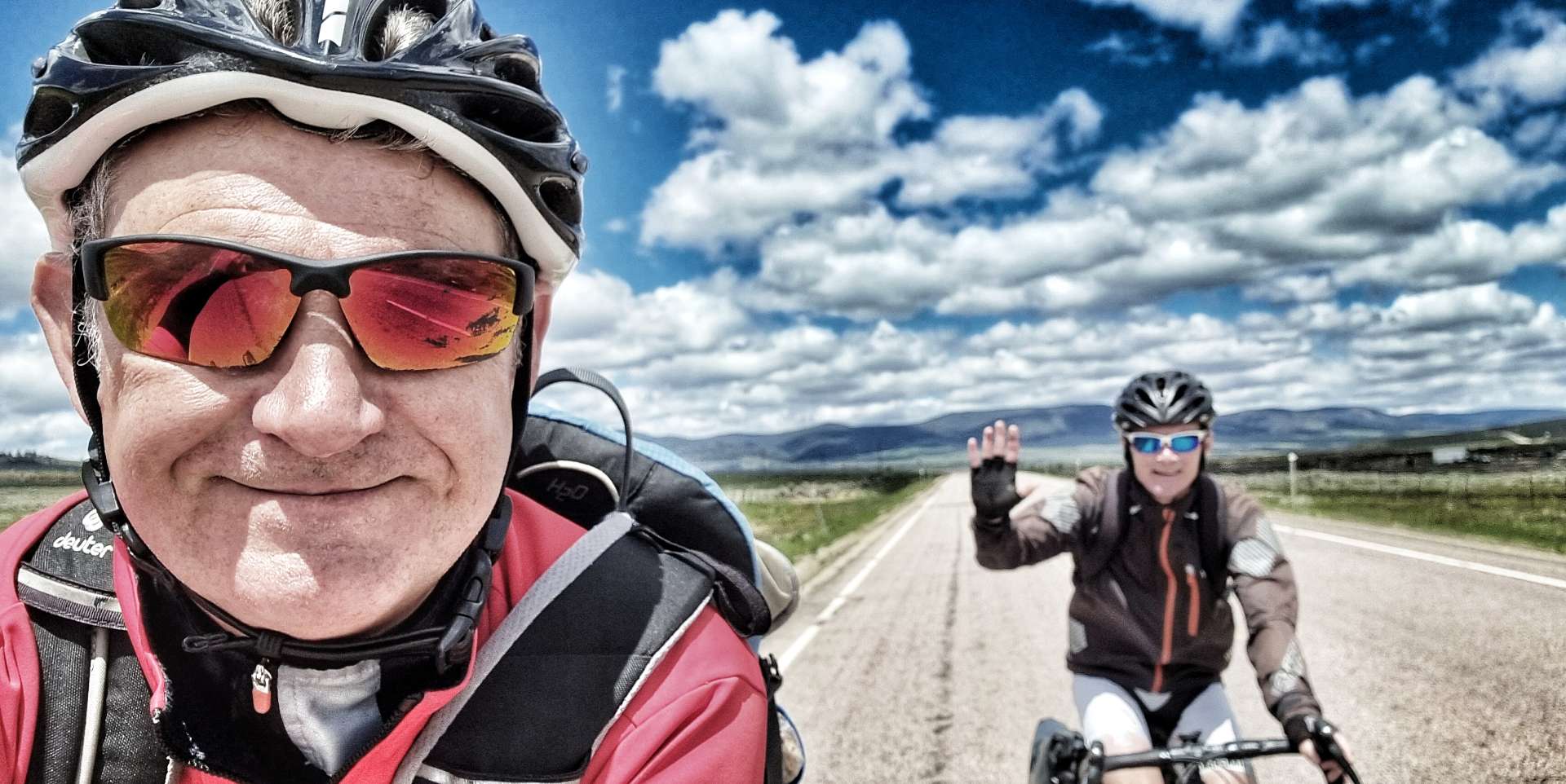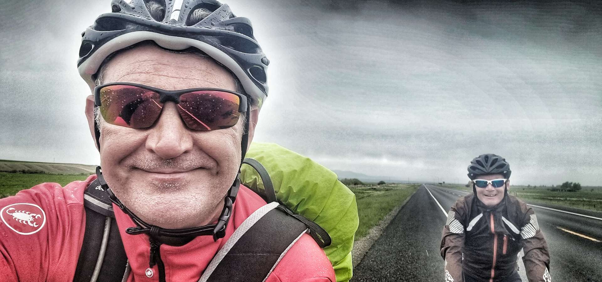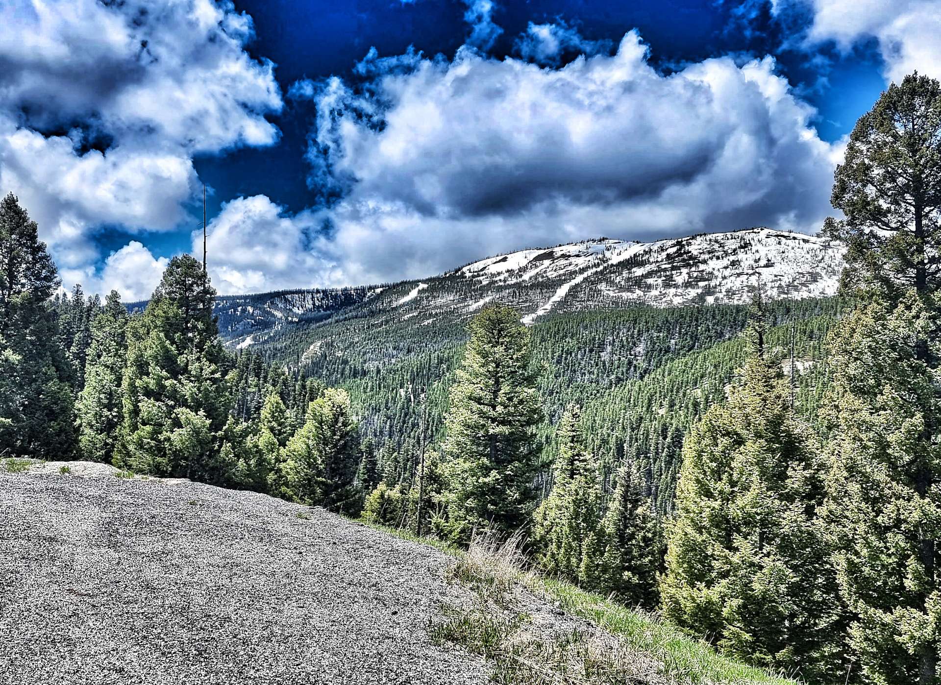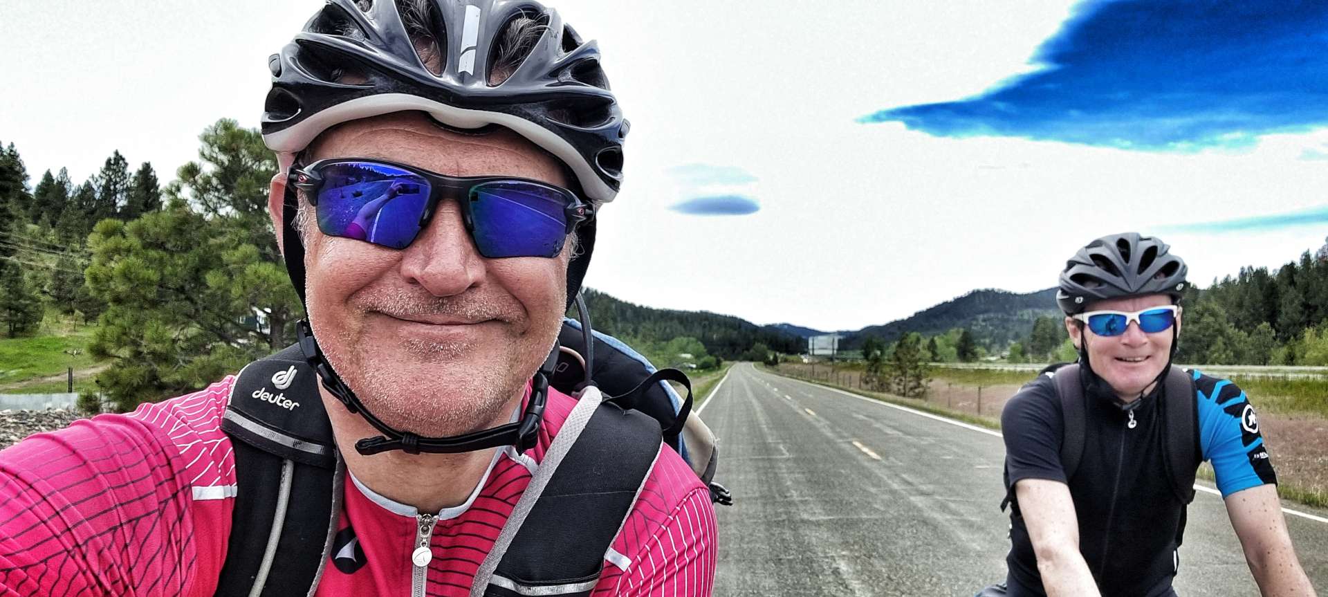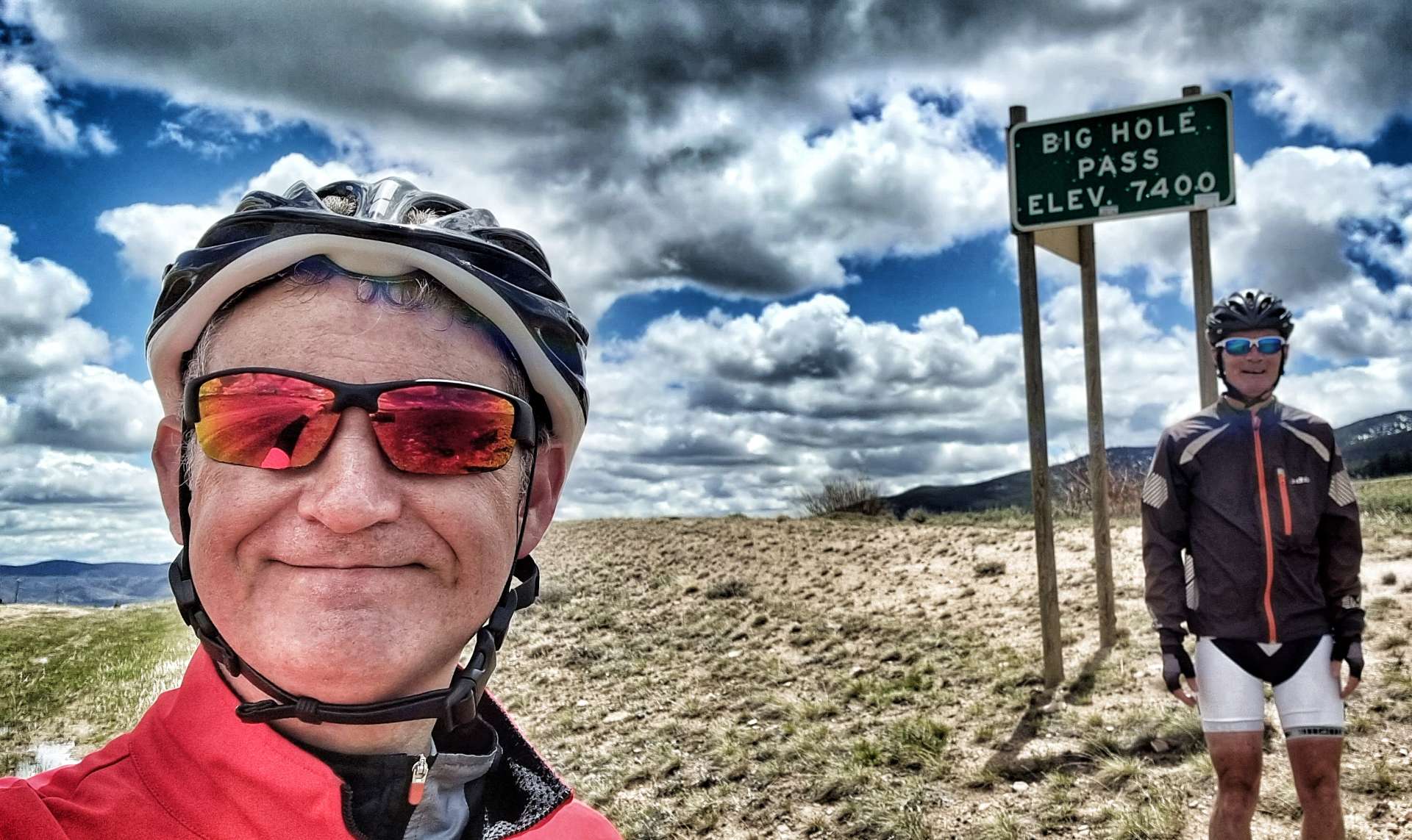As we climbed higher, we saw two more cyclists daft enough to be climbing the brutal Teton Pass & as we passed them very slowly, we gave them encouragement to keep at it & focus on the vast vistas around a few more corners. As we continued on our way, we could see the first indications that blue skies were coming our way! We’d avoided the rain all morning & couldn’t believe our luck – perhaps the price was having to tackle the steep slopes!!