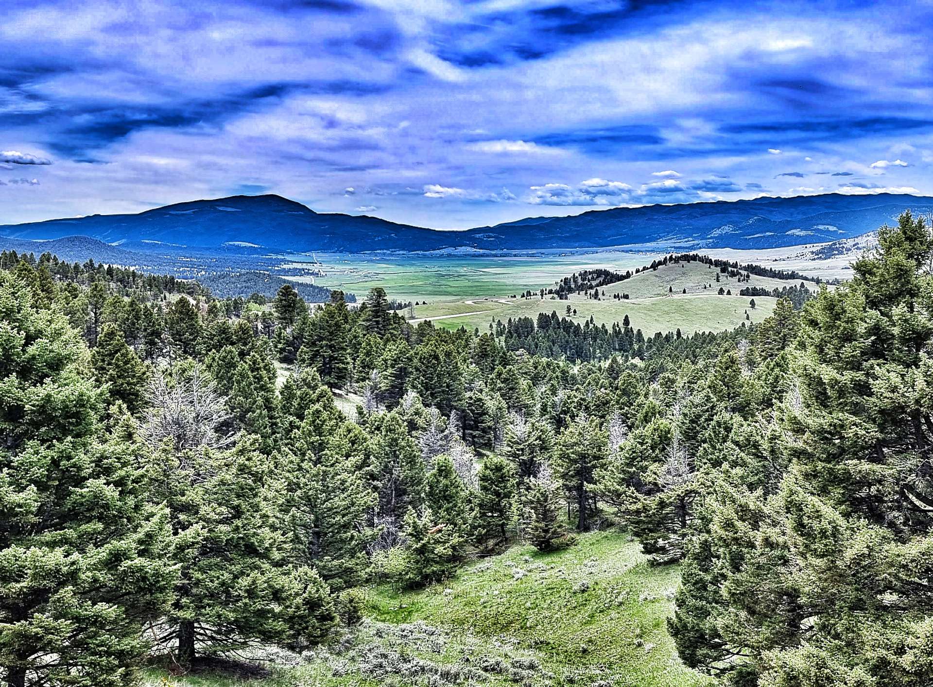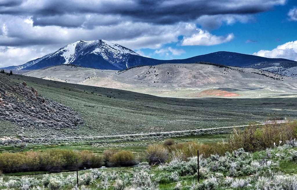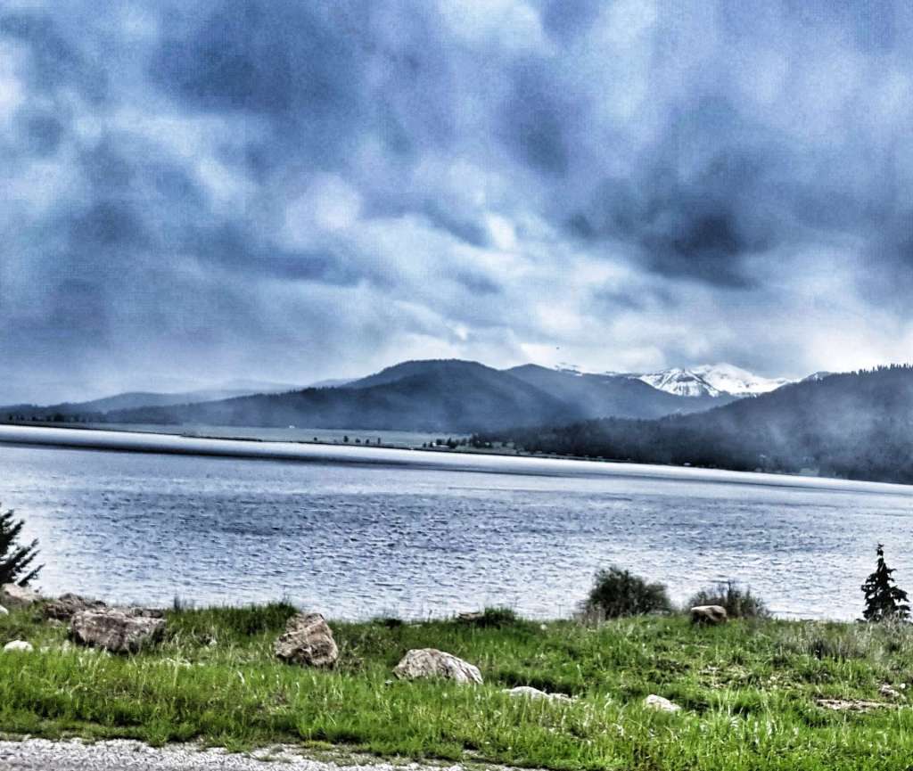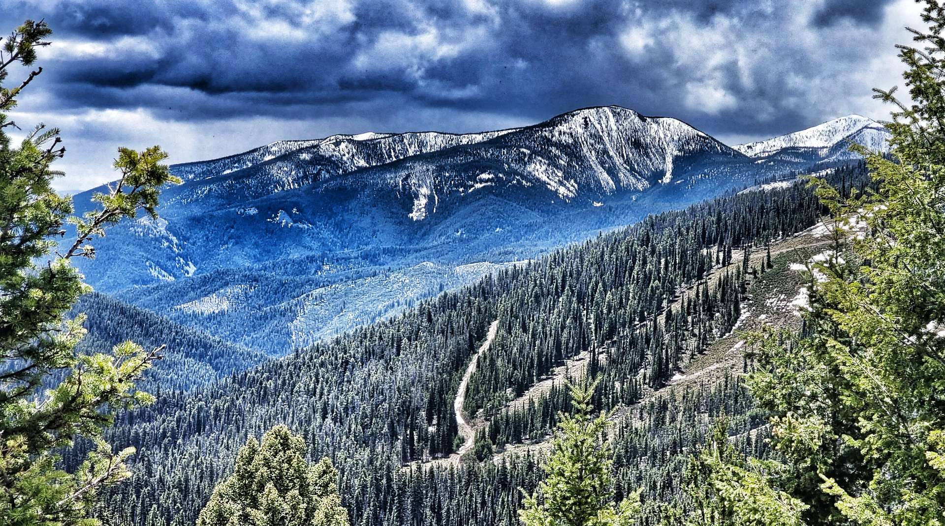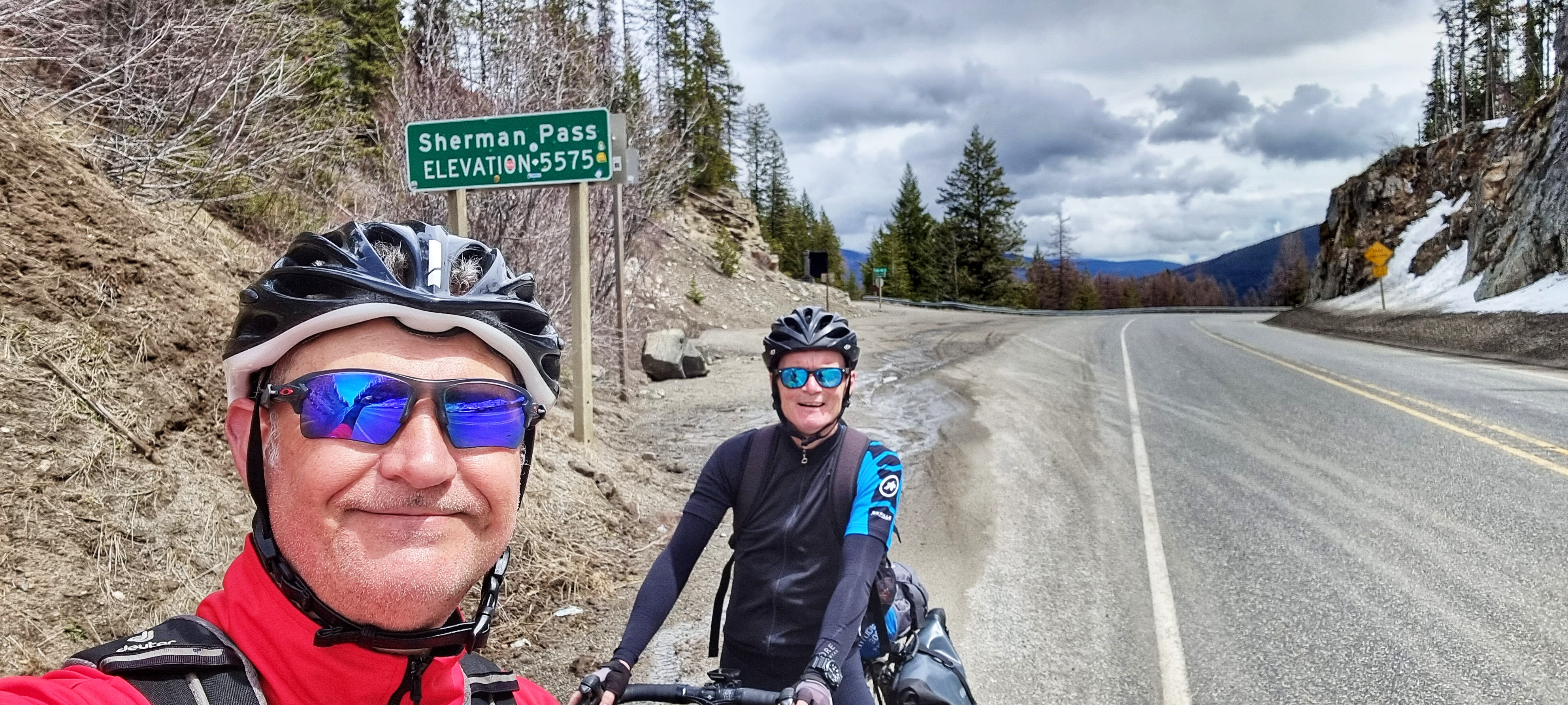 As we climbed higher, we saw two more cyclists daft enough to be climbing the brutal Teton Pass & as we passed them very slowly, we gave them encouragement to keep at it & focus on the vast vistas around a few more corners. As we continued on our way, we could see the first indications that blue skies were coming our way! We’d avoided the rain all morning & couldn’t believe our luck – perhaps the price was having to tackle the steep slopes!!