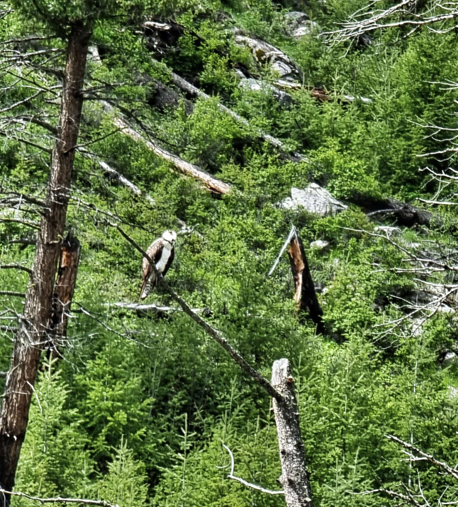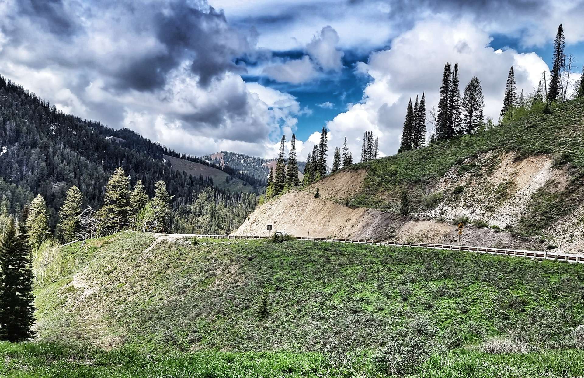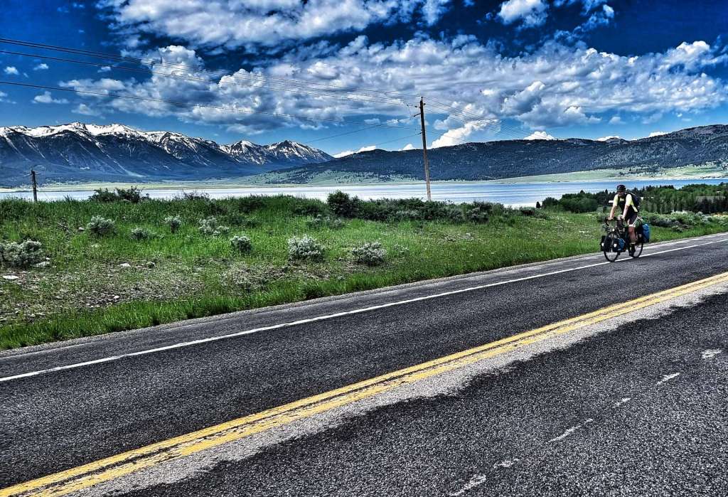 When we reached Victor, two things happened; firstly, the cycle track ended so we were back on Highway 33. Secondly, the road started to gradually head uphill, as we joined the very early & easy slopes of the Teton Pass. As we passed Trail Creek Pond we spotted an eagle who had a fish dangling from its talons as it flew by – sadly it all happened too quickly to get a photo, but it was a great moment & the first time I’d ever seen this happen in real life!