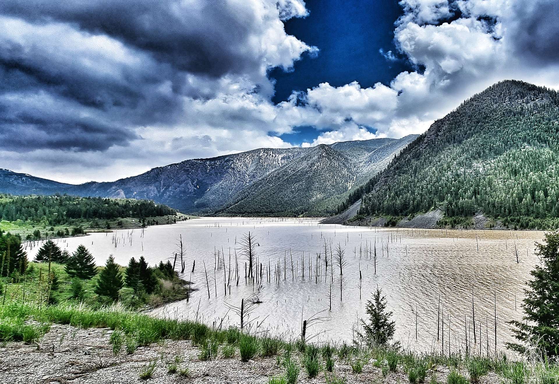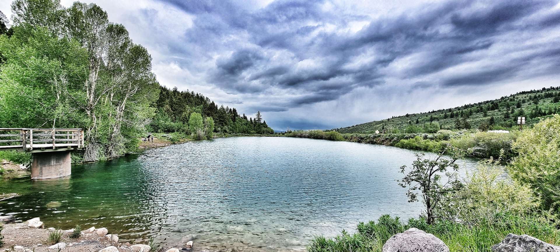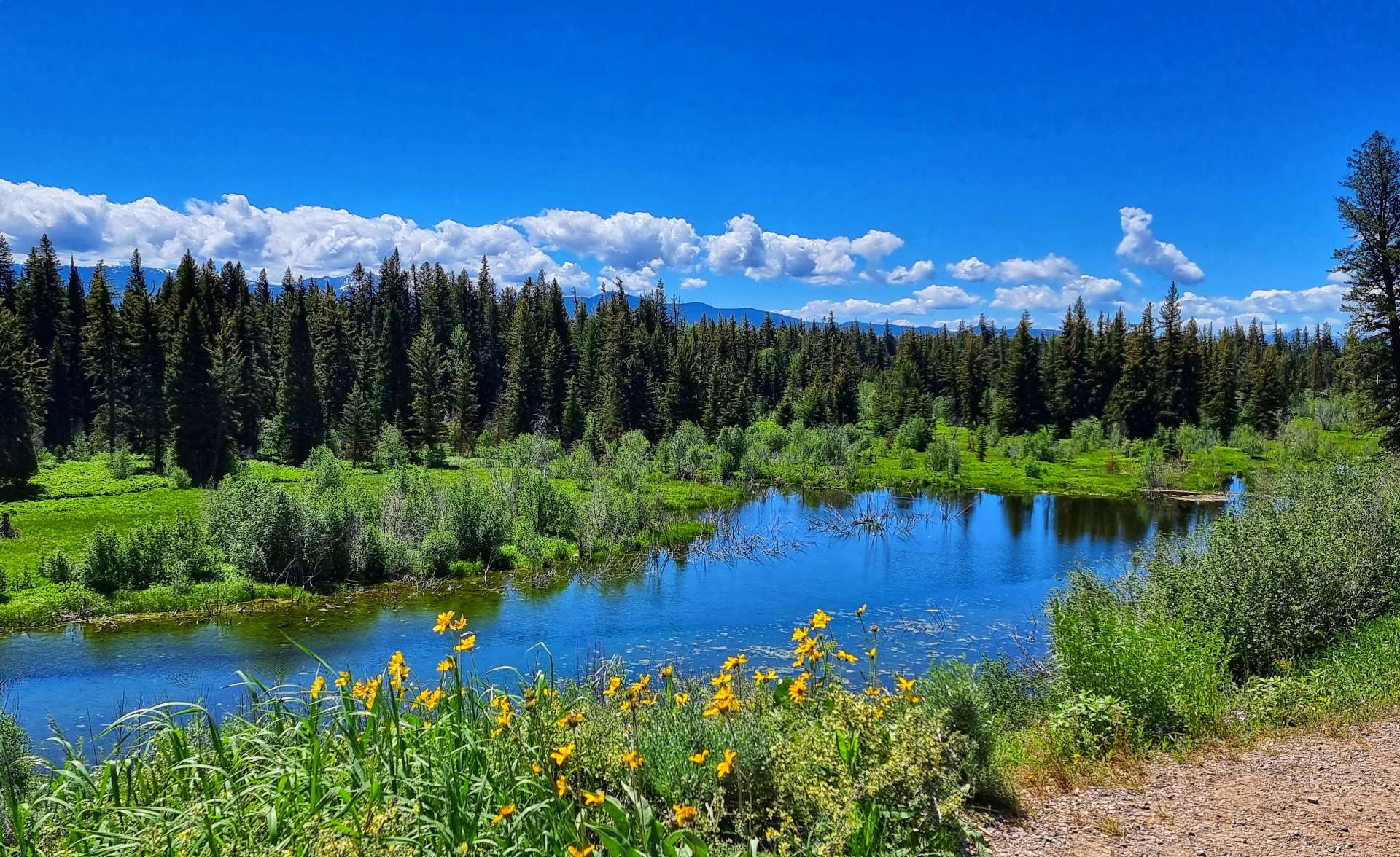 When we reached Victor, two things happened; firstly, the cycle track ended so we were back on Highway 33. Secondly, the road started to gradually head uphill, as we joined the very early & easy slopes of the Teton Pass. As we passed Trail Creek Pond we spotted an eagle who had a fish dangling from its talons as it flew by – sadly it all happened too quickly to get a photo, but it was a great moment & the first time I’d ever seen this happen in real life!