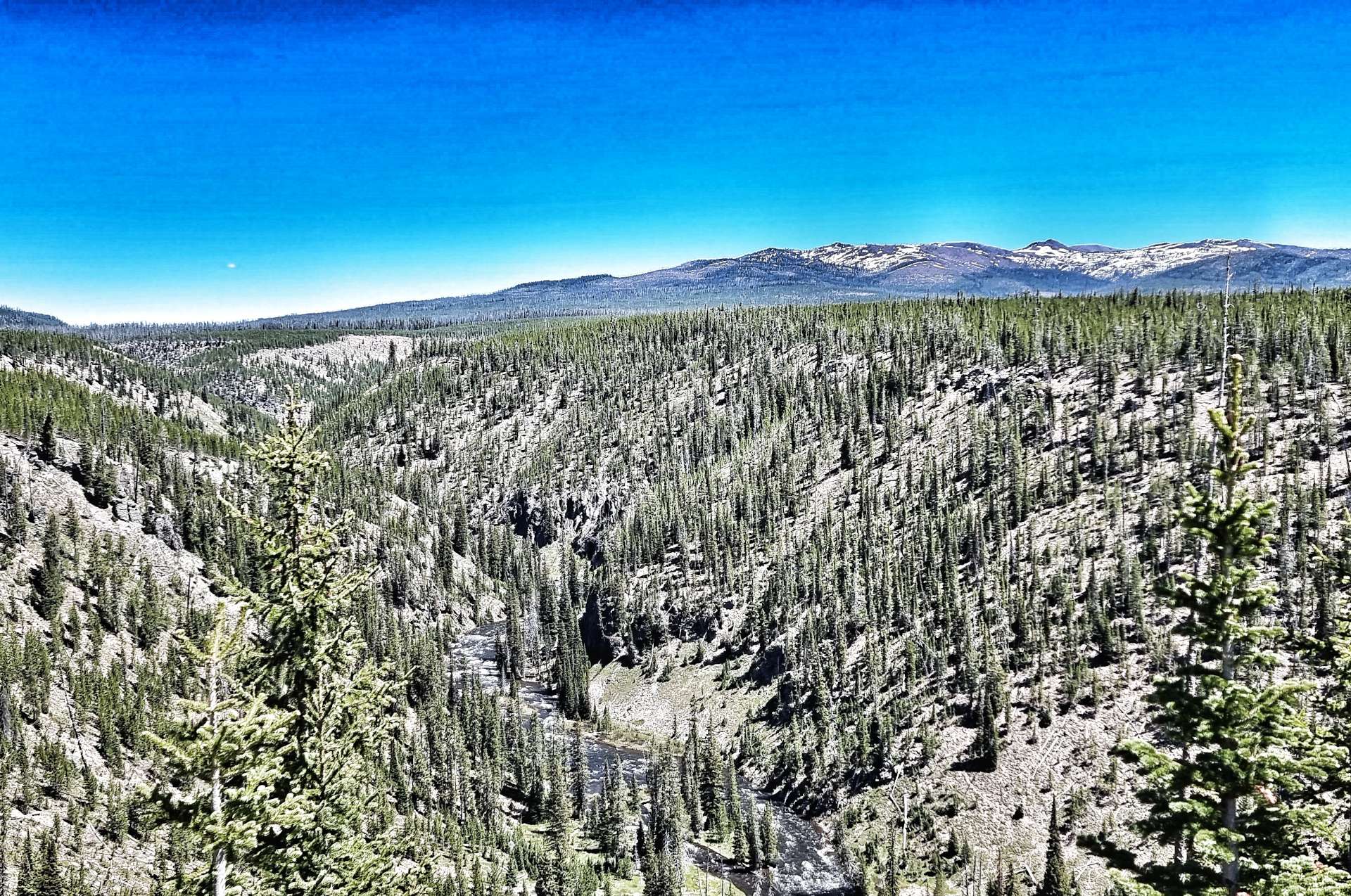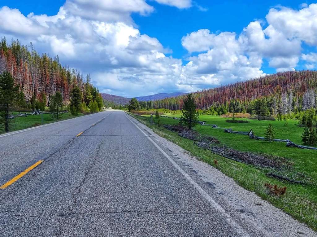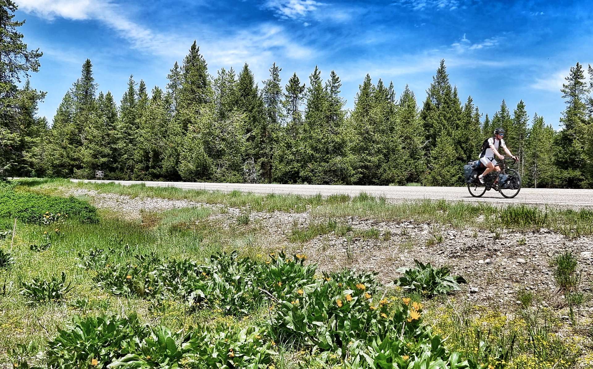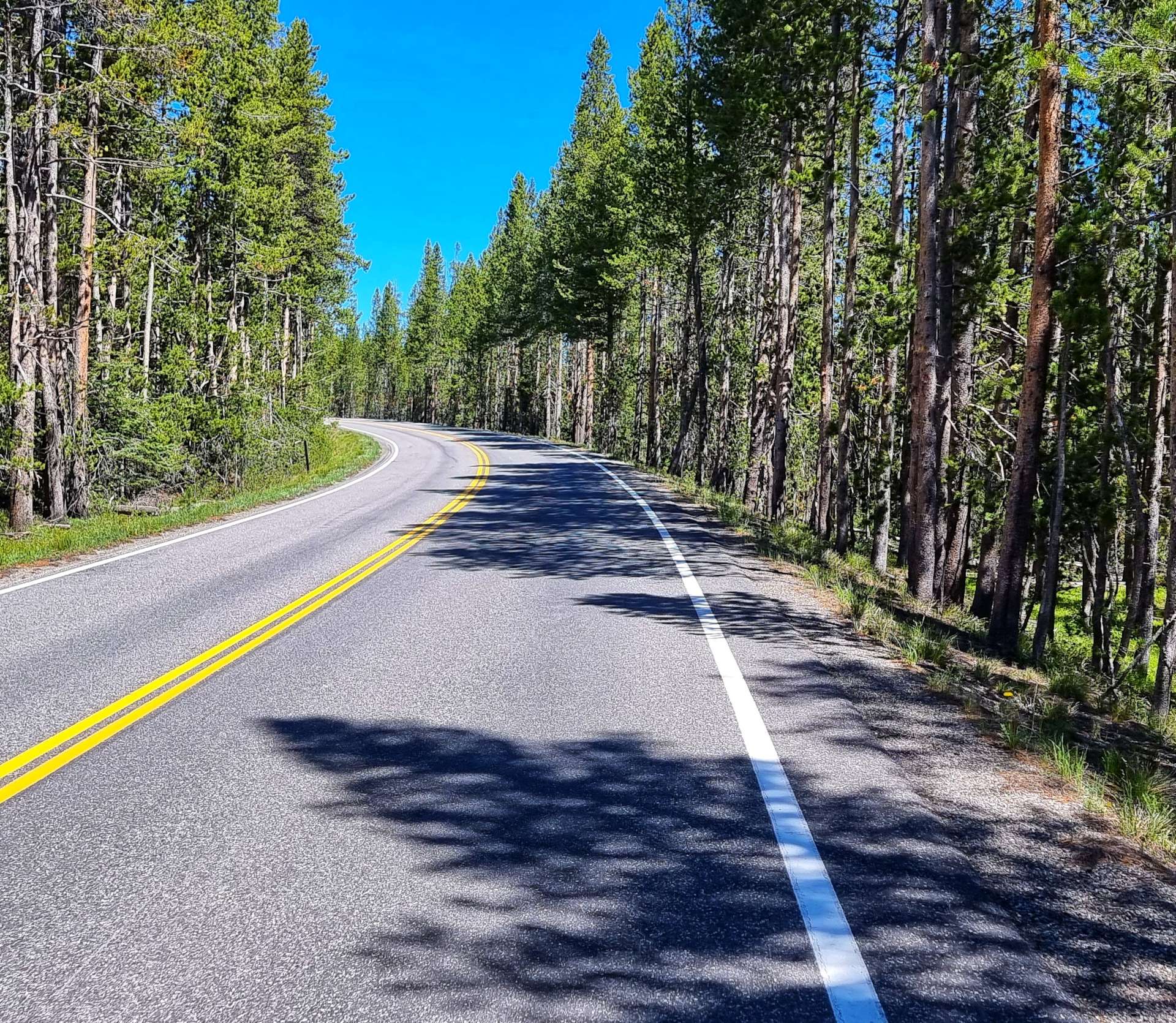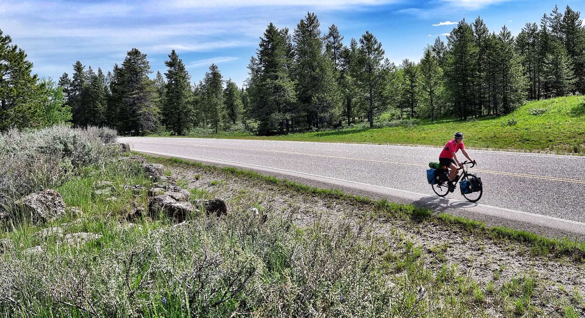 Yellowstone opened today for the first time in over a week – while this increased queues for cars trying to get into the park, the upside was no traffic was leaving the National Park, so traffic could overtake us safely whenever they wanted to. The climb up the Snake River valley was relentless – never steep, but also never ending as we threaded our way through the forest!