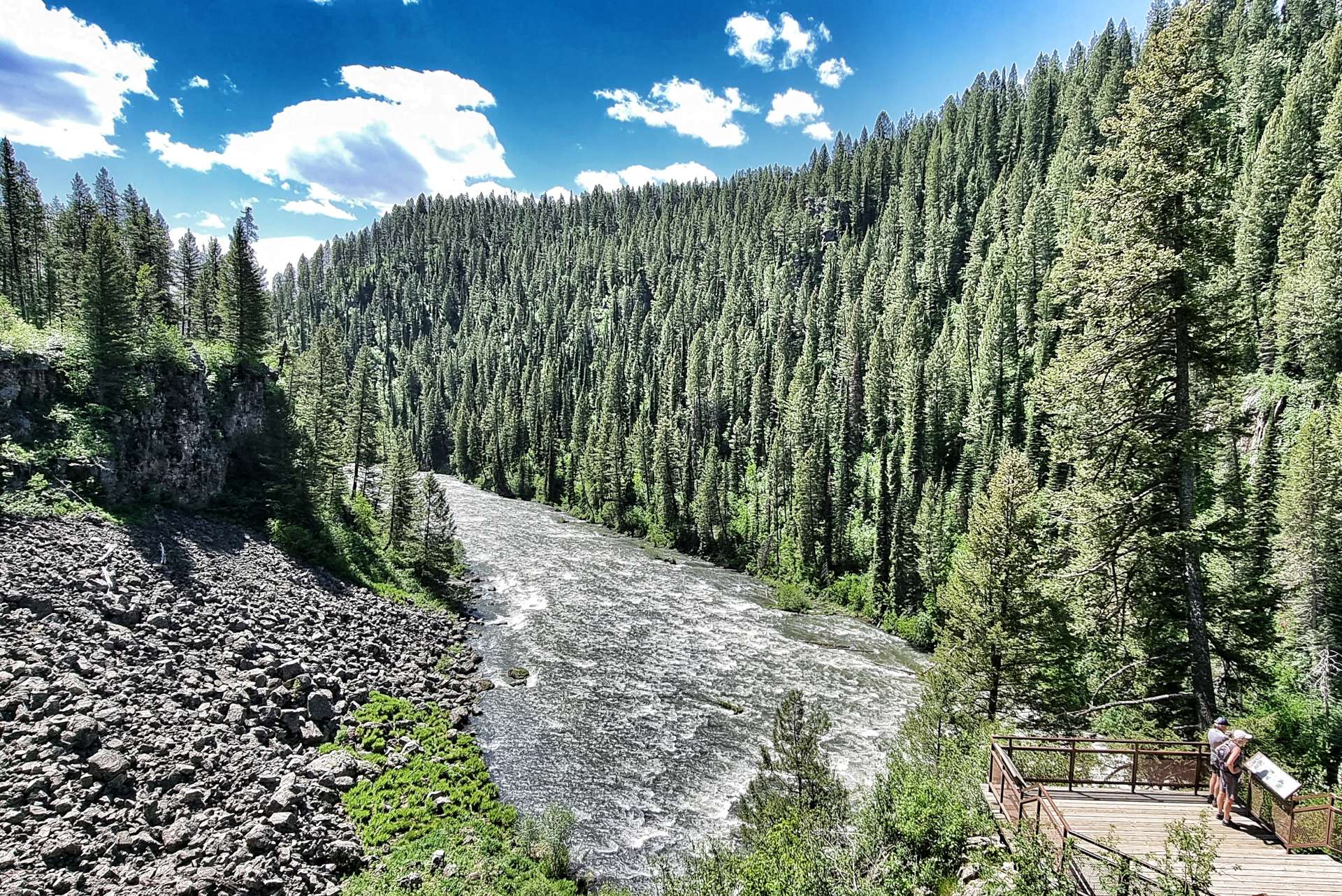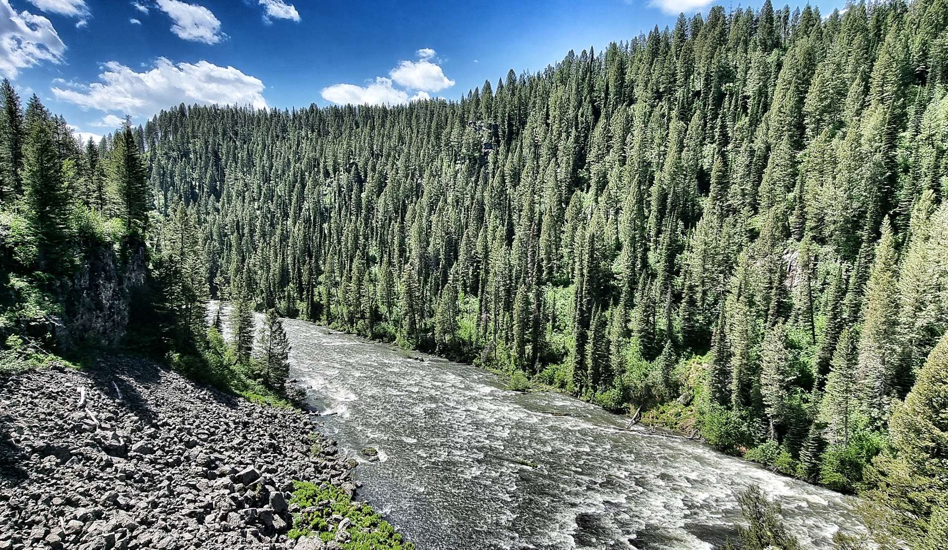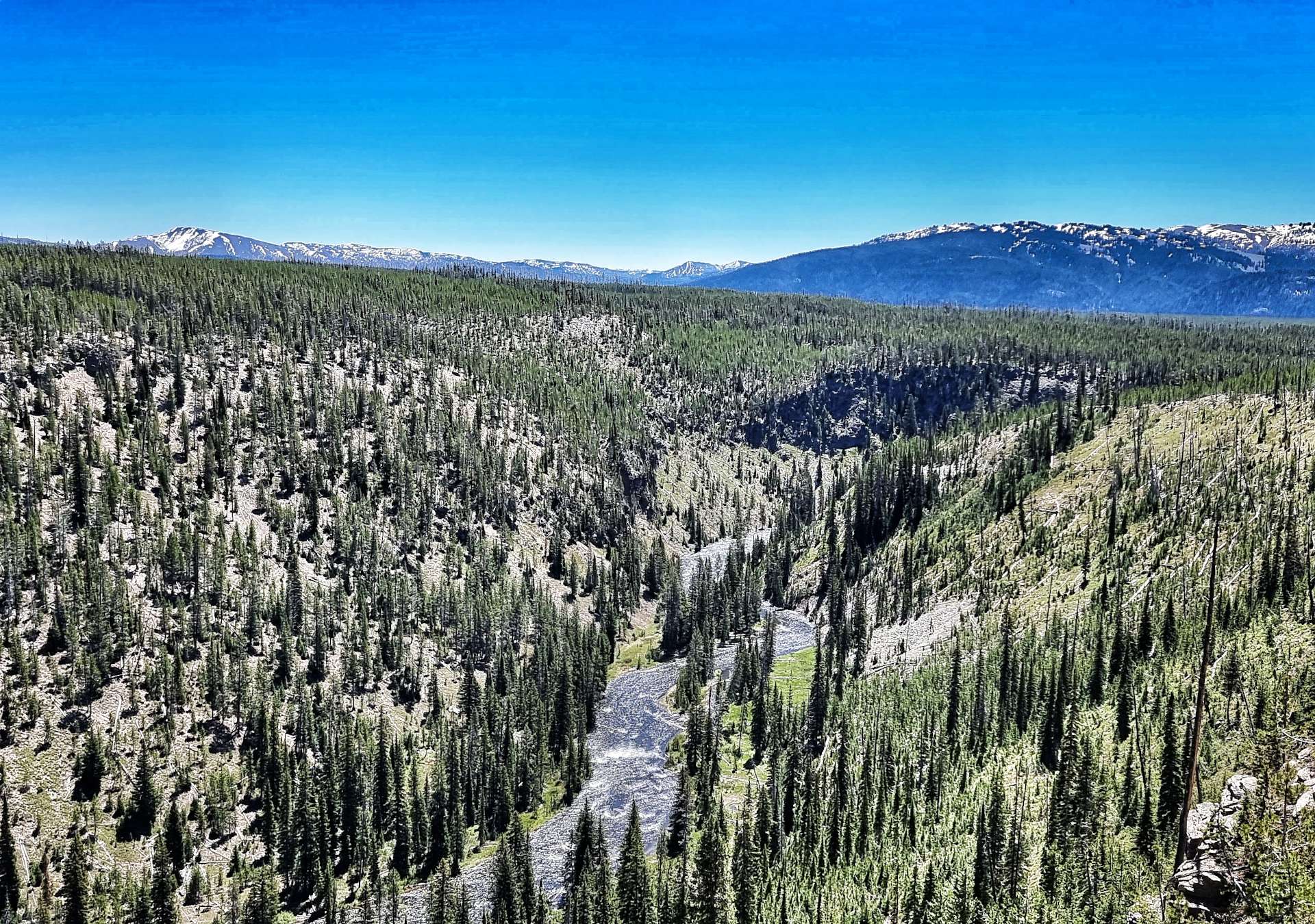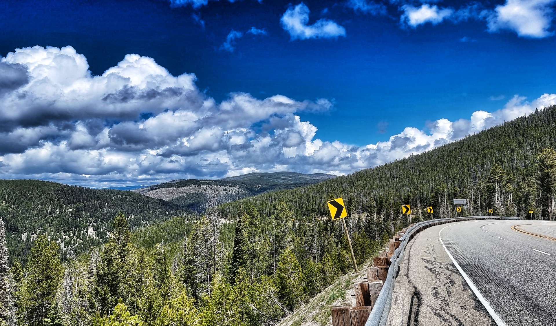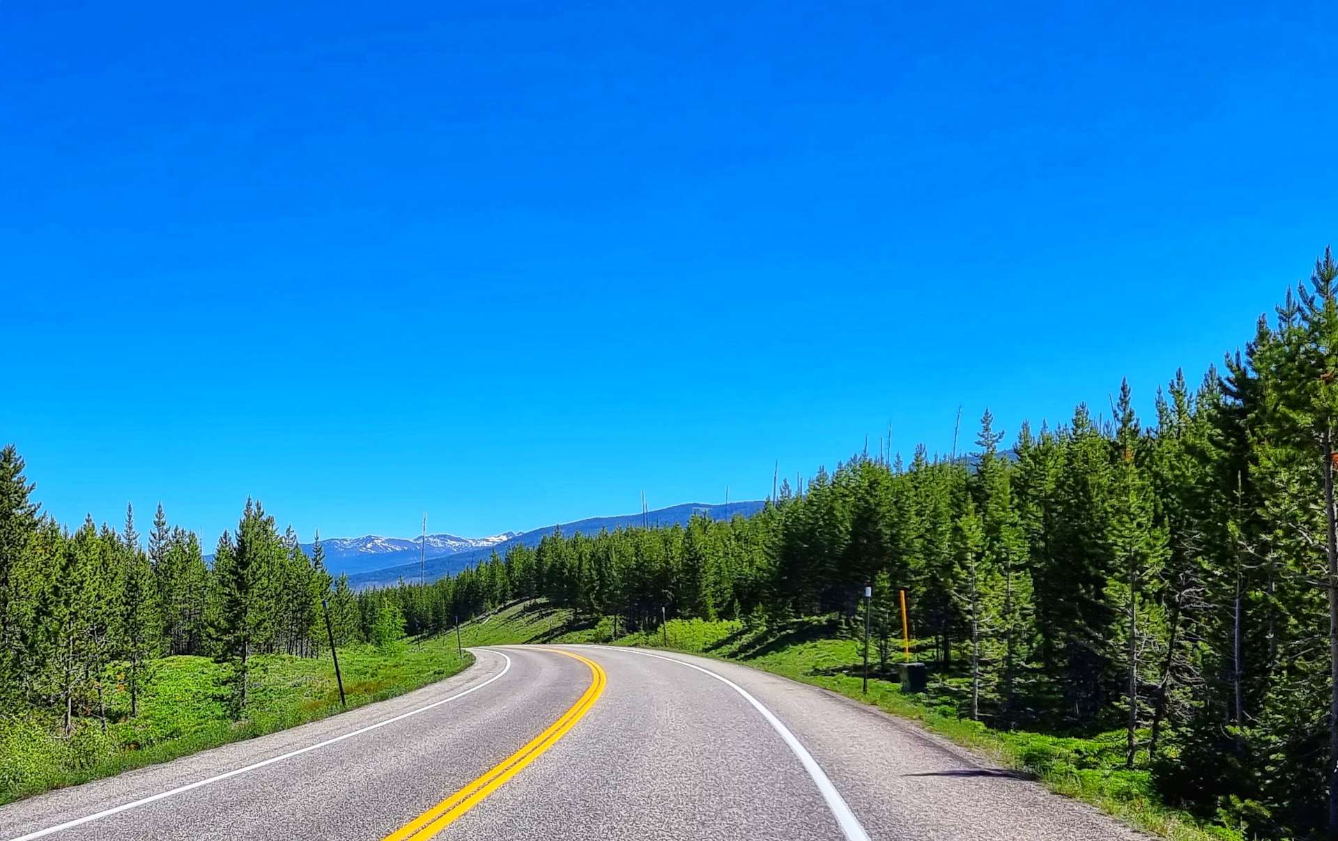 Yellowstone opened today for the first time in over a week – while this increased queues for cars trying to get into the park, the upside was no traffic was leaving the National Park, so traffic could overtake us safely whenever they wanted to. The climb up the Snake River valley was relentless – never steep, but also never ending as we threaded our way through the forest!