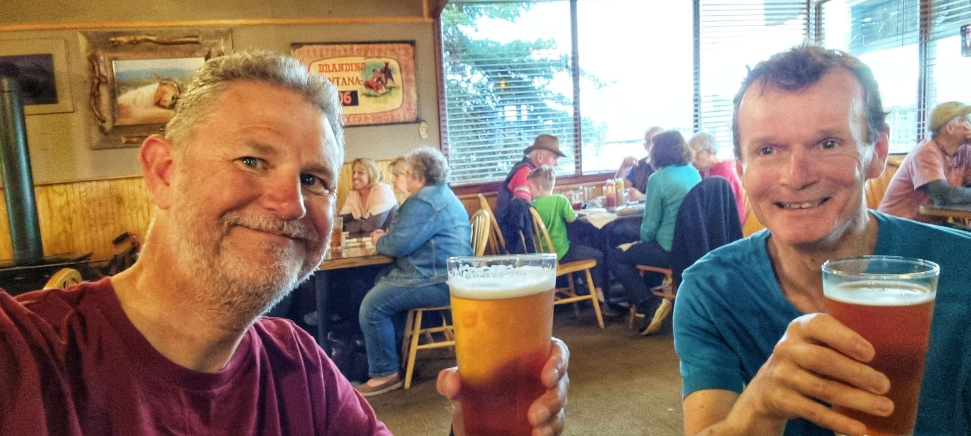 We were on the Continental Divide once more! After a quick selfie, we were on our way again for the gentle descent into Grant Village, where we’d managed to secure a non-air conditioned, no tv, flaky wifi room for the bargain price of $366 (including tax) between us. Luckily sandwiches were slightly cheaper than that at $8 each, but dinner in our room still cost $35 each, including a tinny to celebrate making it to Yellowstone in the first place!