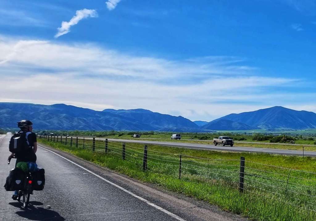 Rain was forecast from 10am in both Driggs & Jackson, so we took the decision to get up a bit earlier & be ready to leave by 9am, so at least we would start riding in the dry. There was another long distance cyclist from the UK staying in our motel & we set off almost together, however, he was soon a long way up the road!
