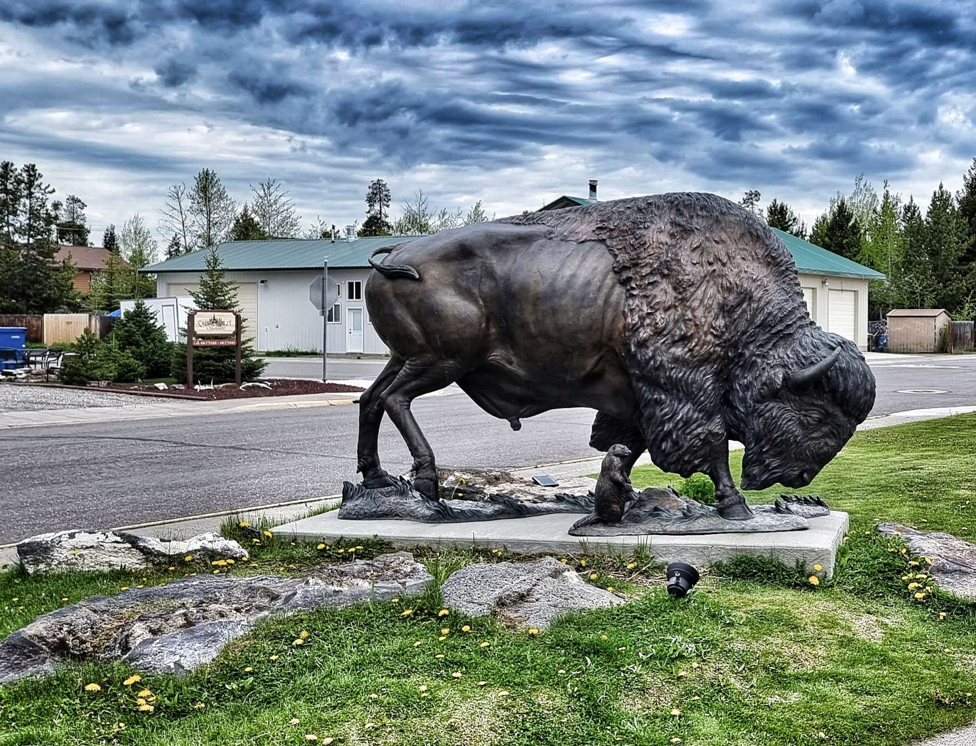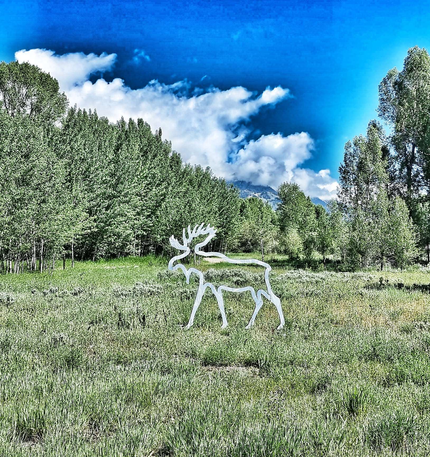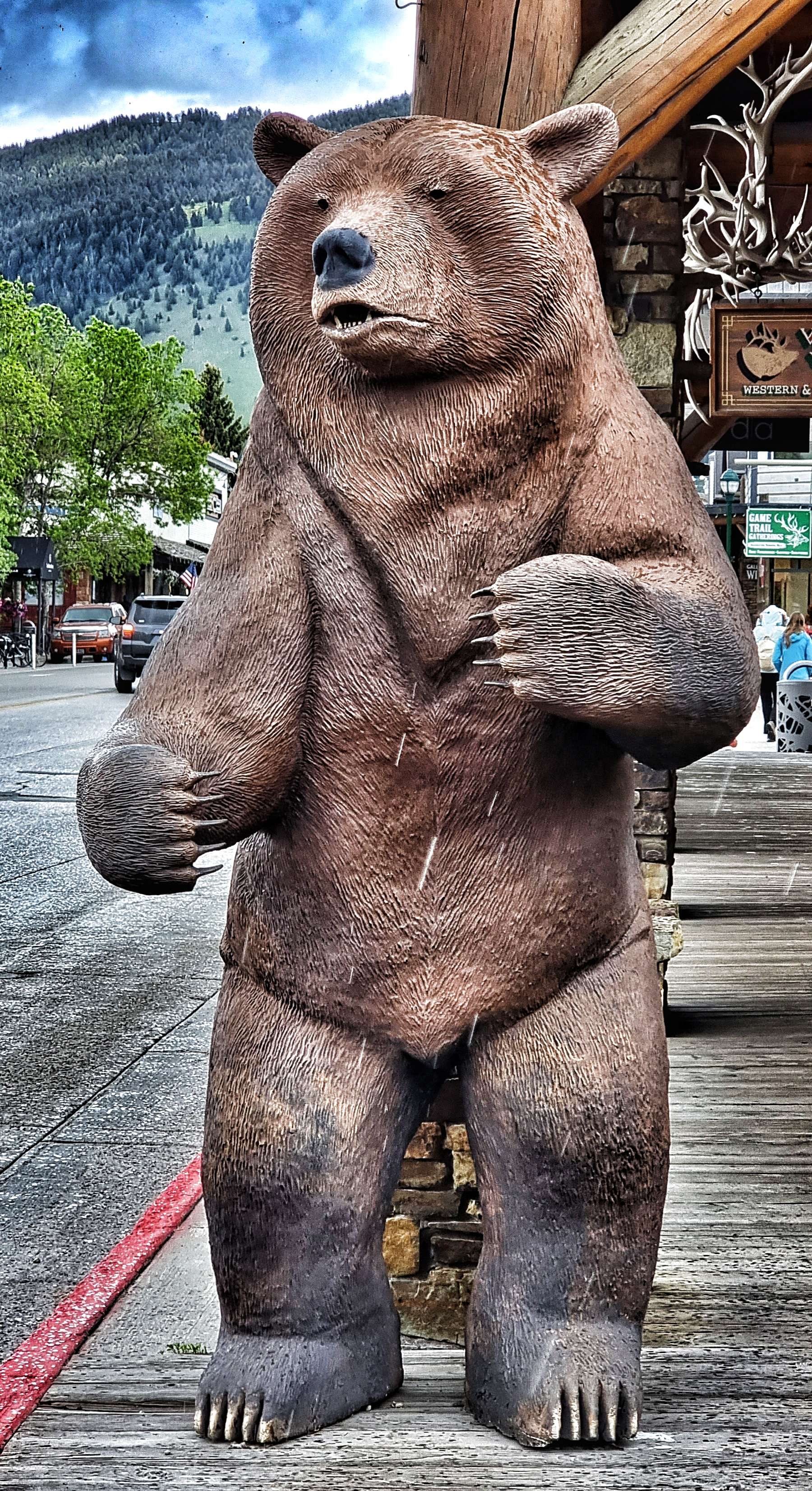 We were on the road for 9.45am & retraced the 5 miles back to Wilson, using the car-free bridge to cross the Snake river & ride through Rendezvous Park (spot the Giant in the 3rd photo!).