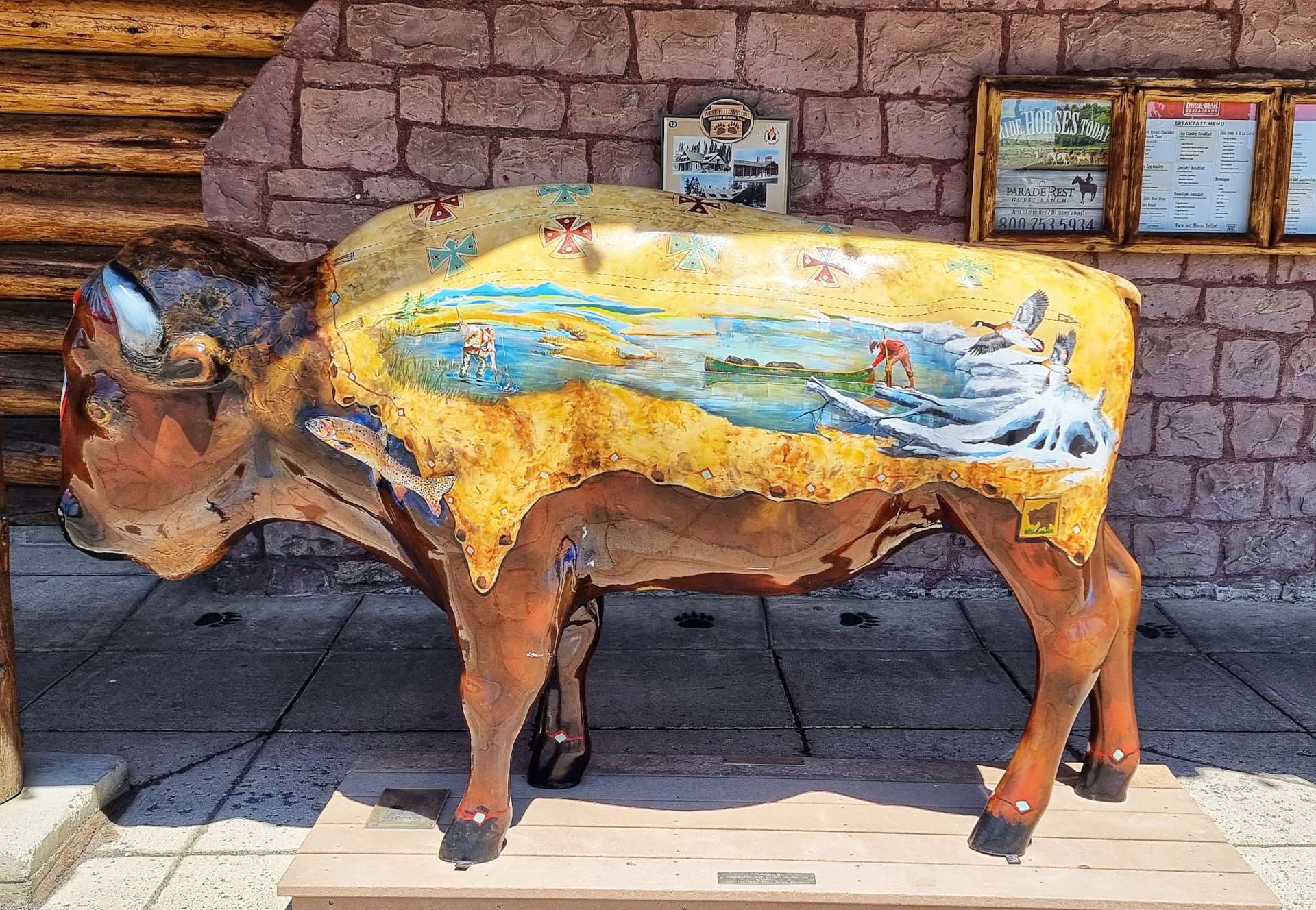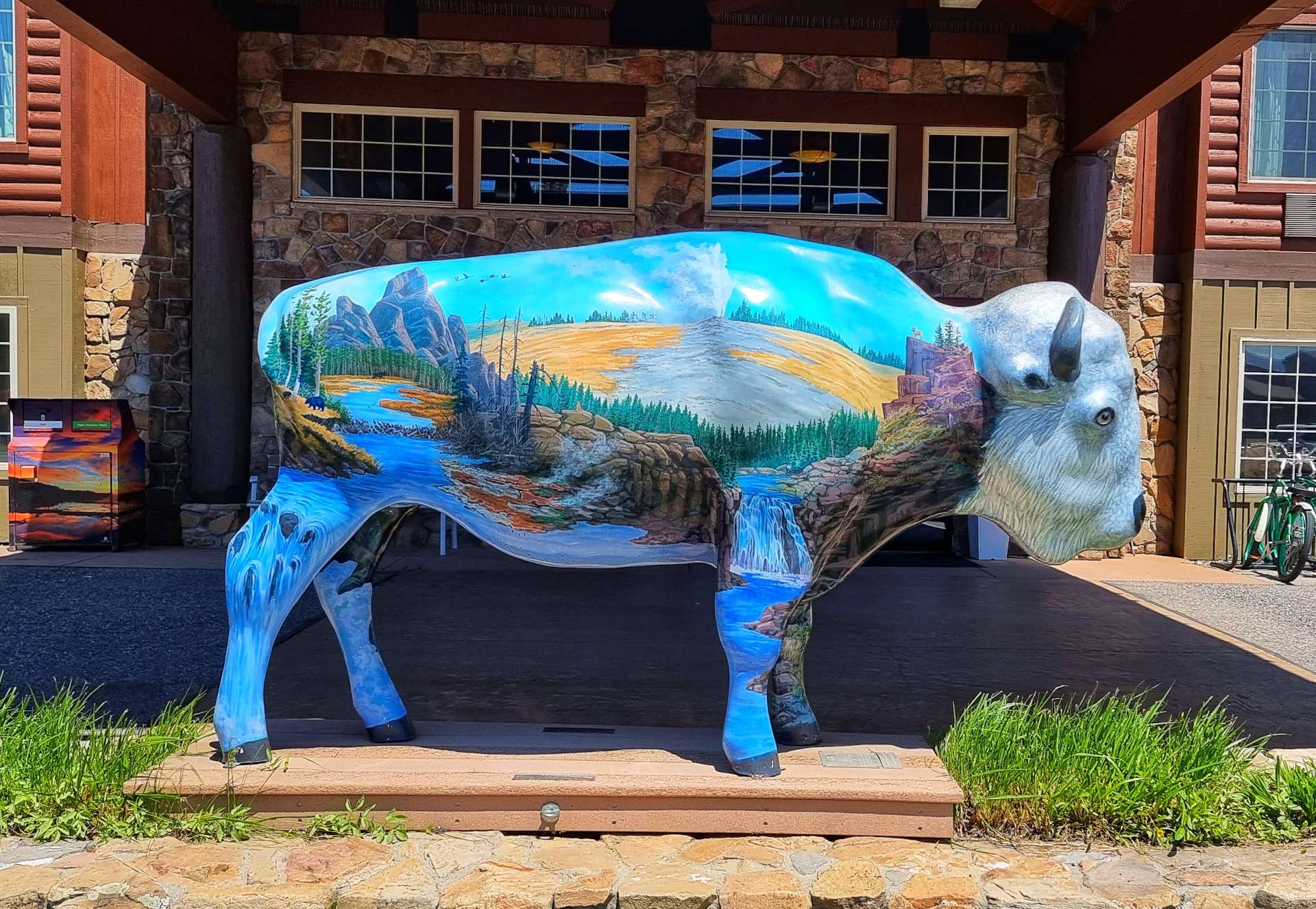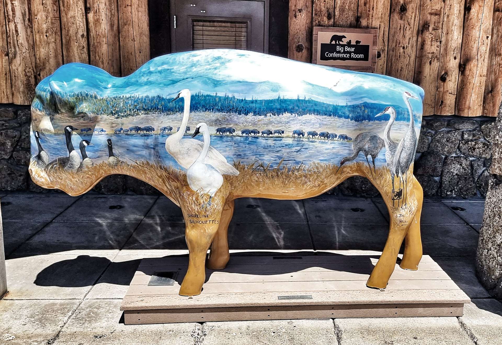 We were on the road for 9.45am & retraced the 5 miles back to Wilson, using the car-free bridge to cross the Snake river & ride through Rendezvous Park (spot the Giant in the 3rd photo!).