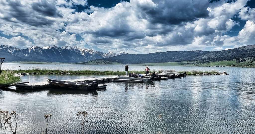 The Grand Teton National Park also has a number of alpine lakes, some natural & others man-made to manage water levels & to create hydro-electric power. When combined with the majestic backdrop of the mountains, the views are out of this world. Jenny Lake is the centre piece of the park, with views of Teewinot Mountain, Mount St John & Cascade Canyon (directly between Tweddle Dumb & Tweedle Dumber!) – you may be able to make out a rowing boat behind us too.
