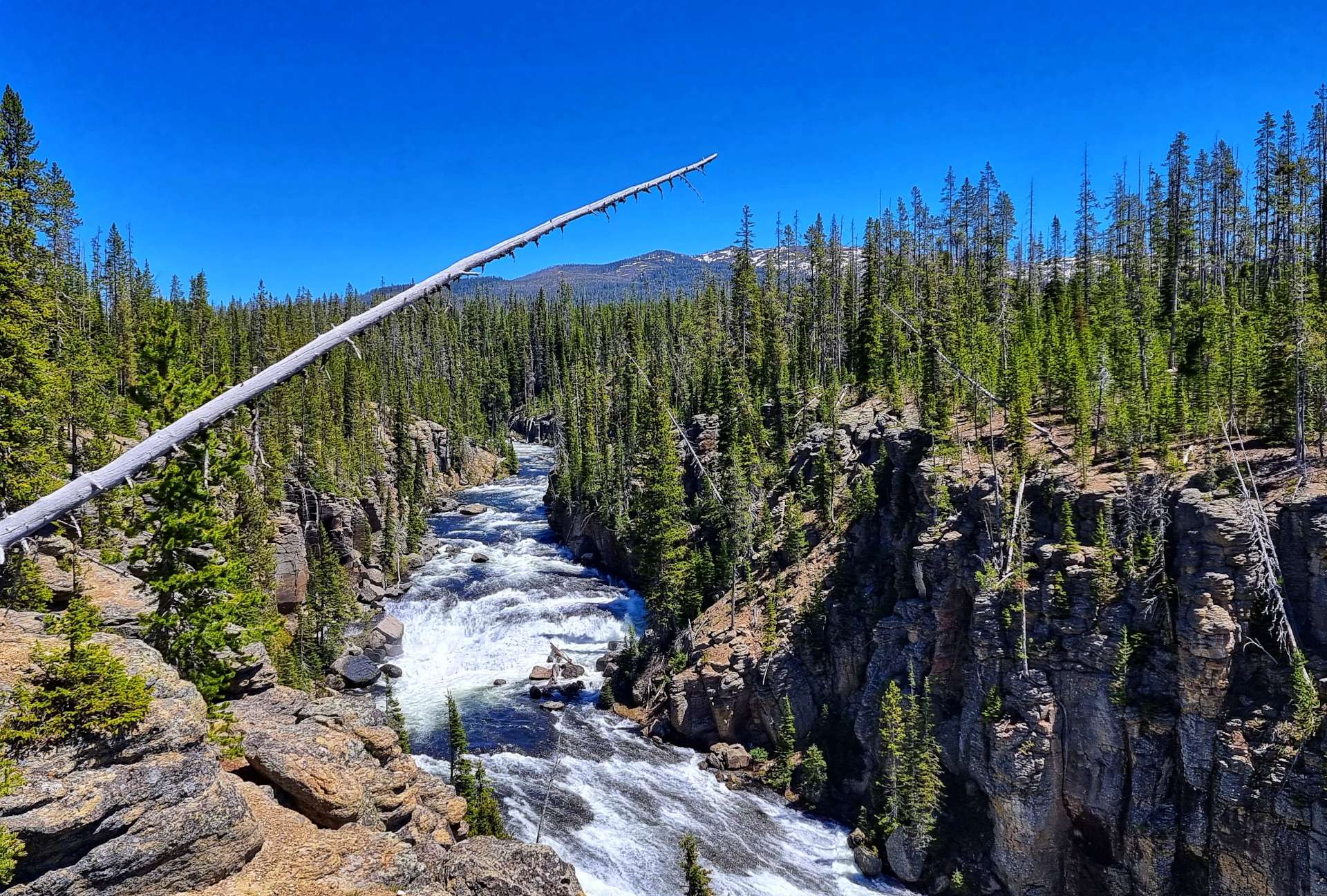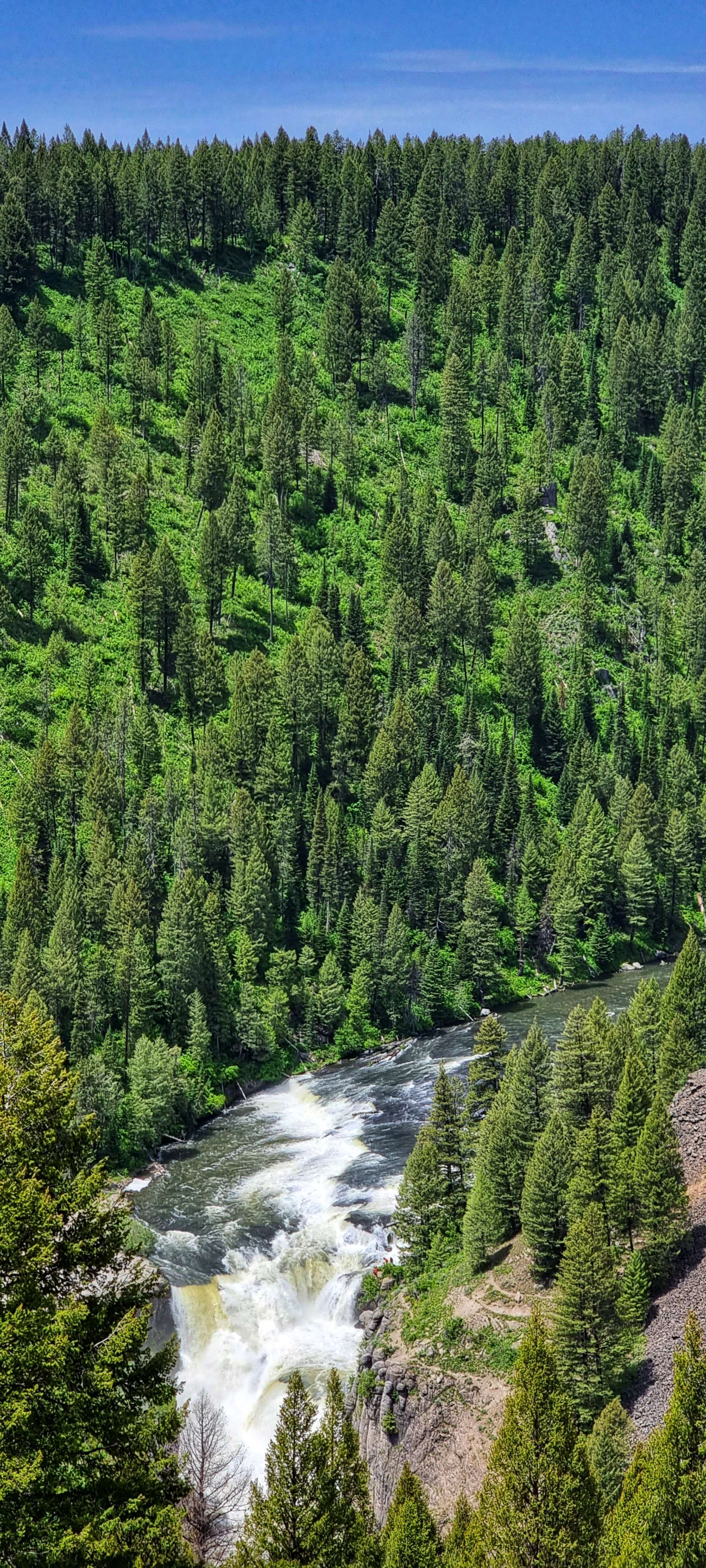 Then all of a sudden the Snake River revealed itself as it cascaded down the valley at Moose Falls & Lewis Canyon Falls – there was white water all the way, suggesting that the water was fast running & the river lost height quickly.