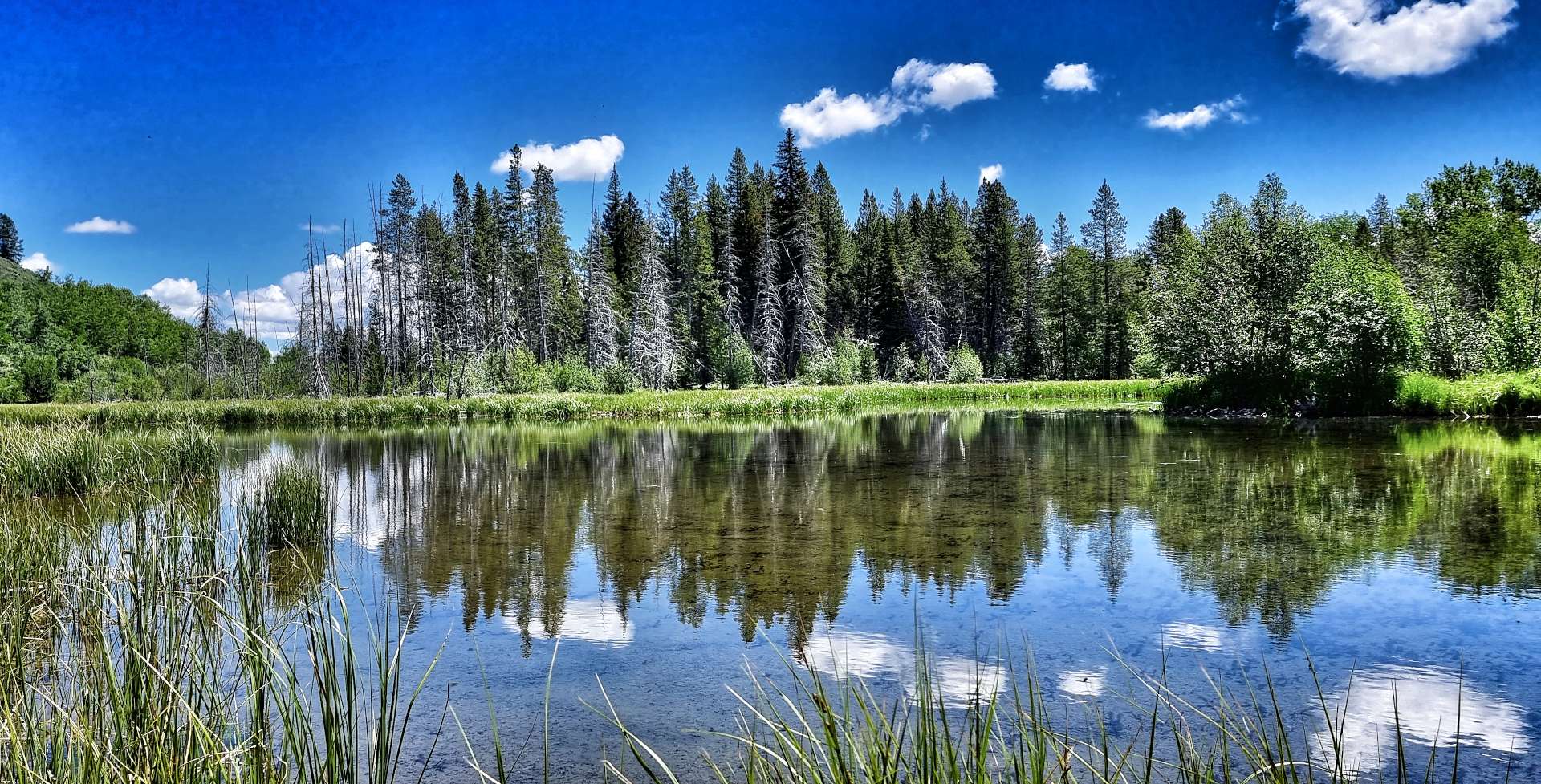 The quiet backroad took us past babbling brooks & creeks which led into or out of the many small lakes & ponds. Then as we turned a corner the forest was replaced by plains & prairie as far as the eye could see. This signalled that we were nearing the end of our remote riding on Moose Wilson Road, but there was plenty more stunning scenery ahead of us.