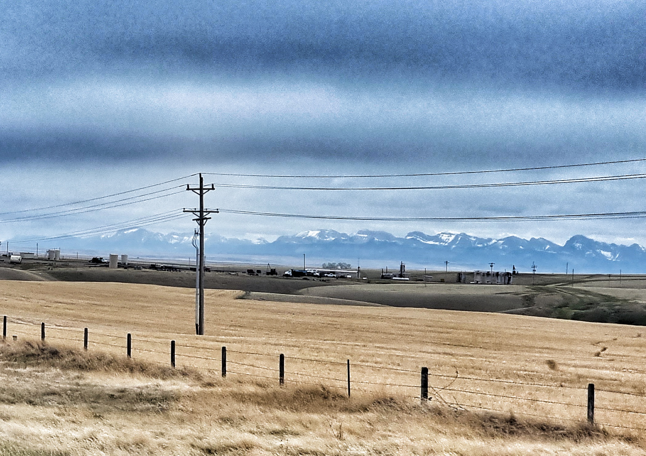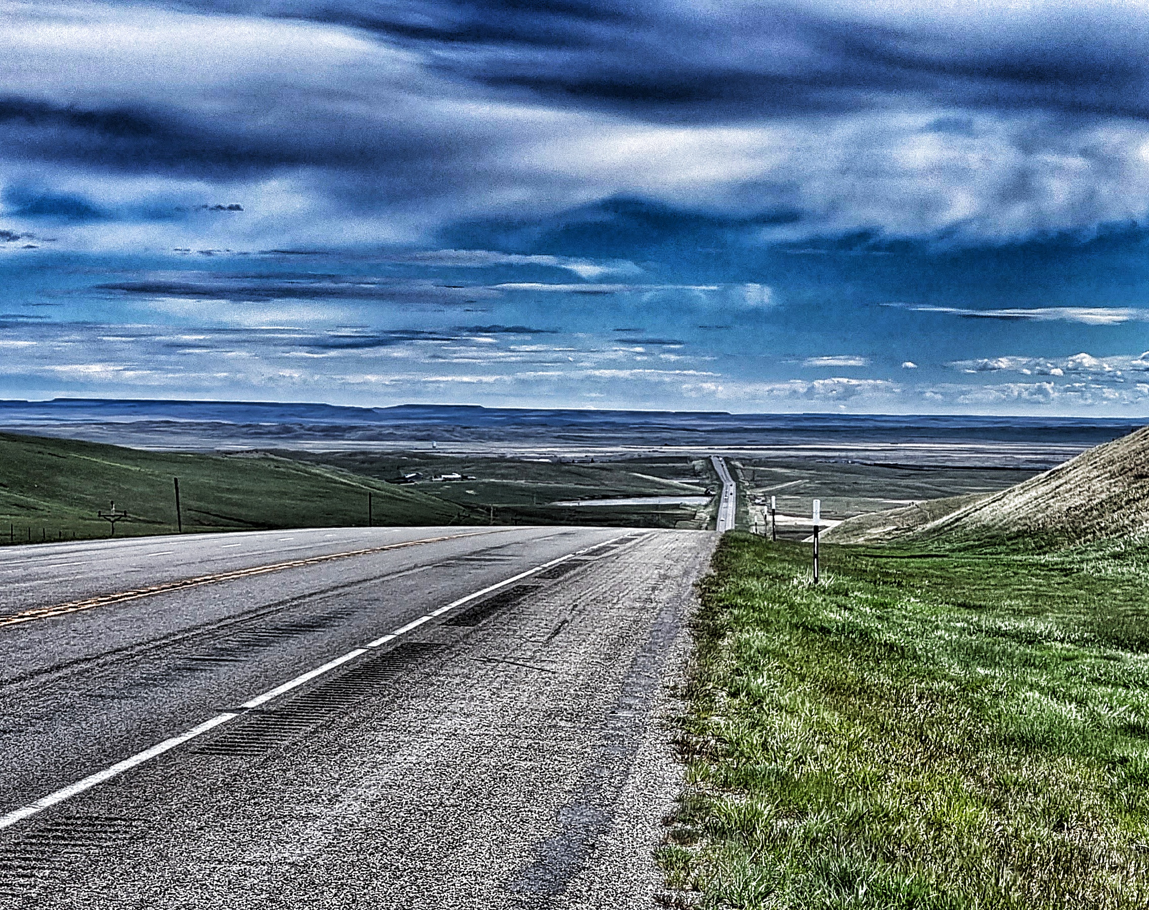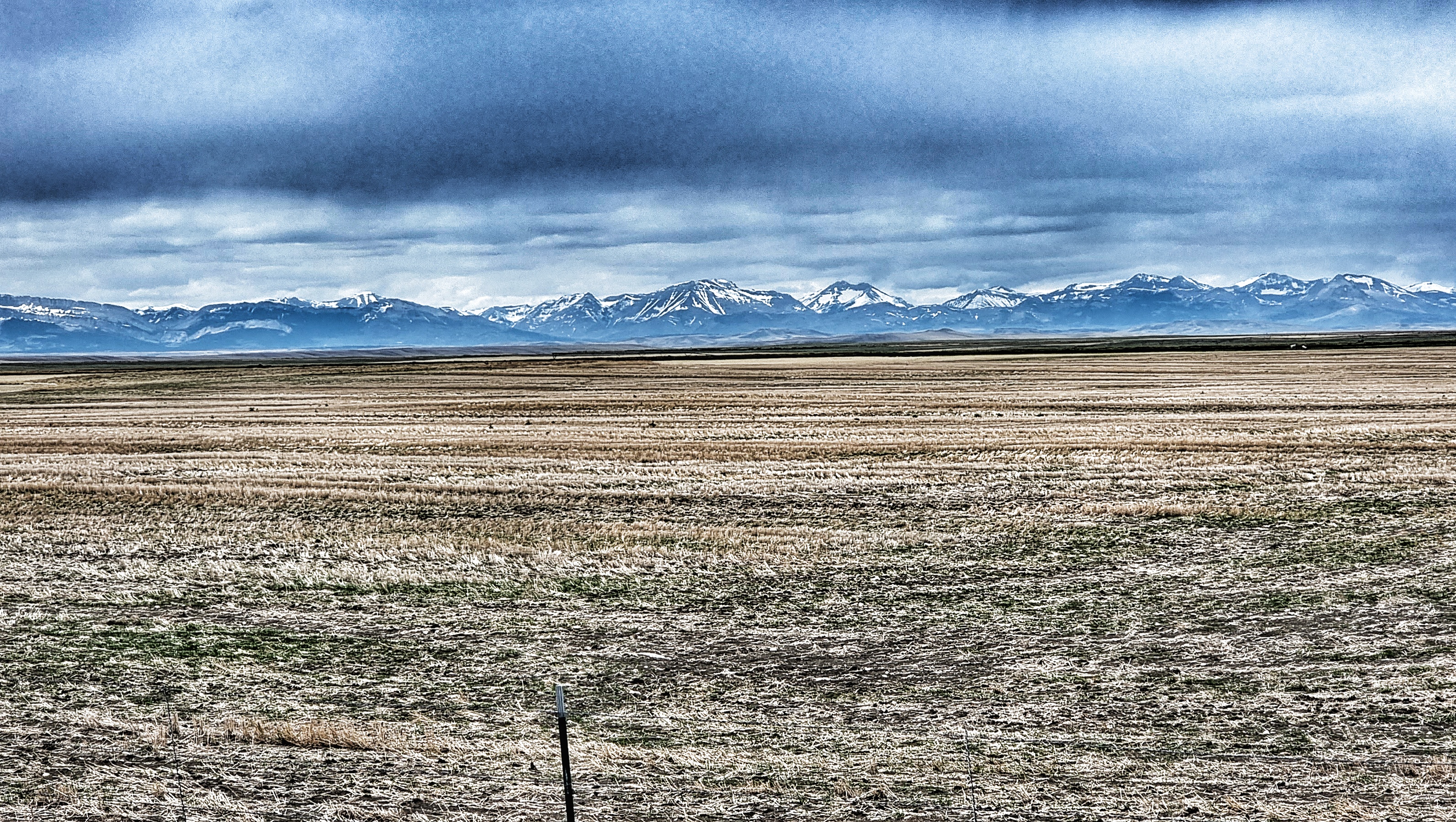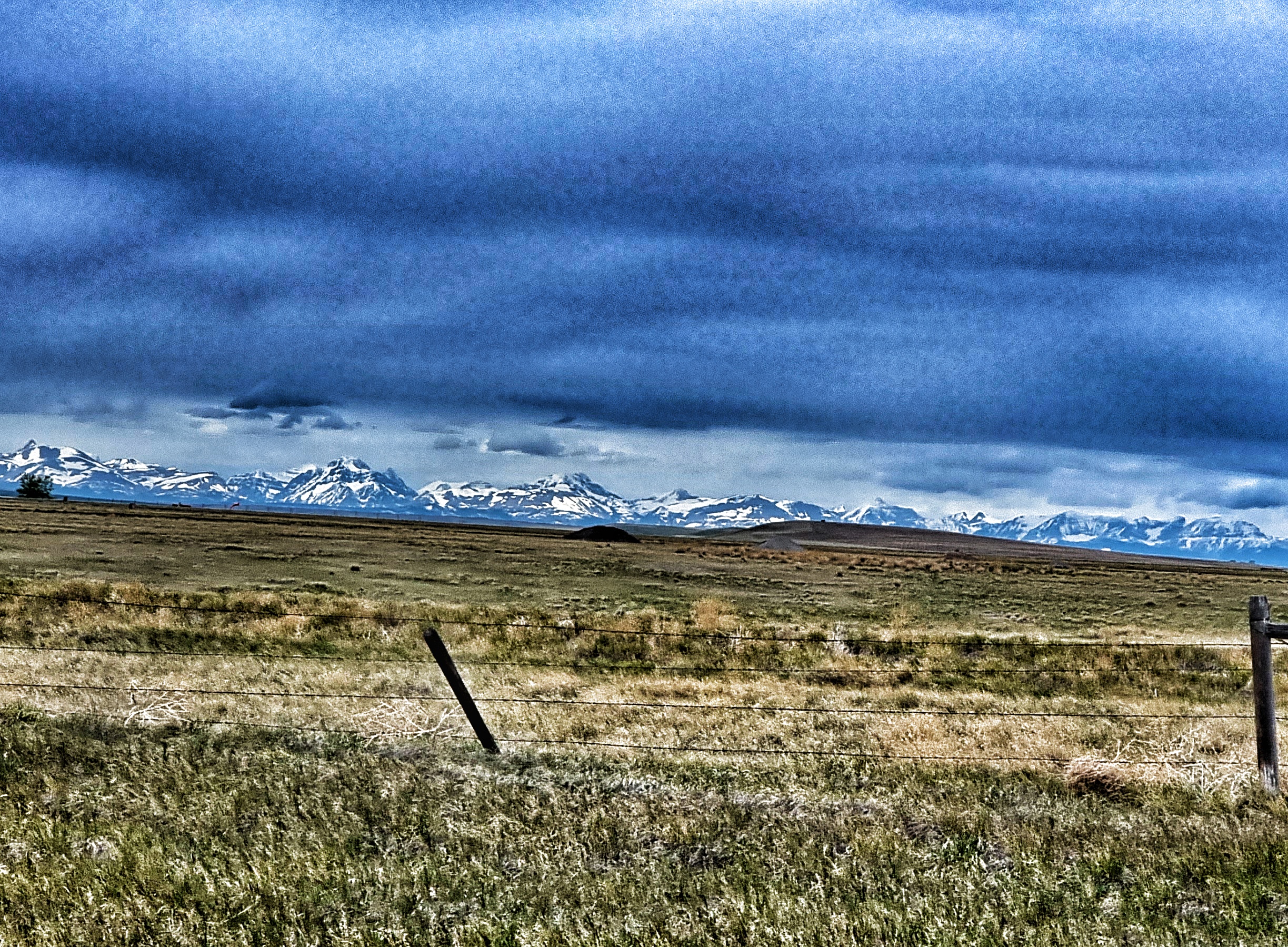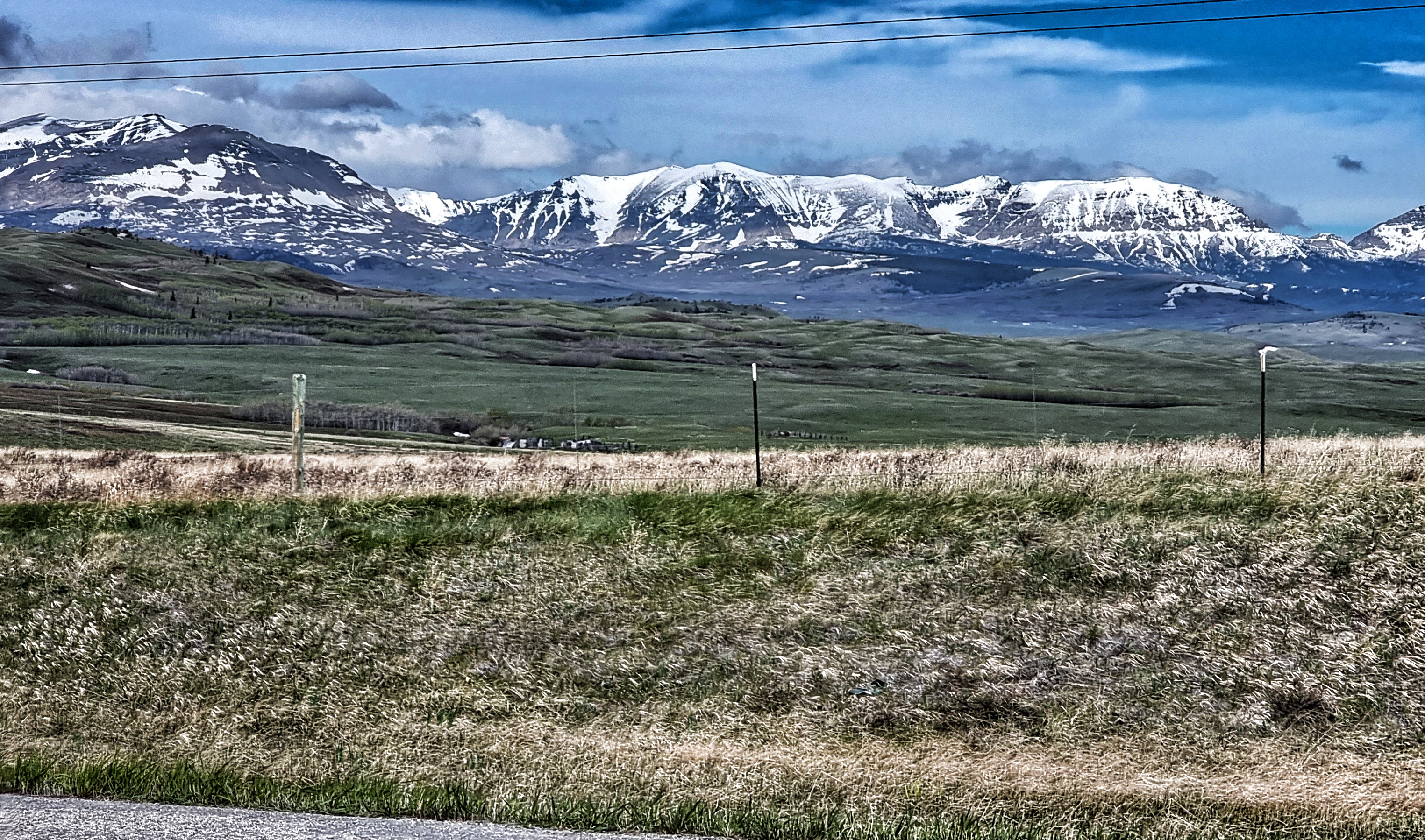 We were on straight, undulating roads again today & the breeze was behind us for the first section of today’s ride. We could still make out the snow-caps on The Rockies away to our right as they stretched north into Canada & south towards Wyoming.