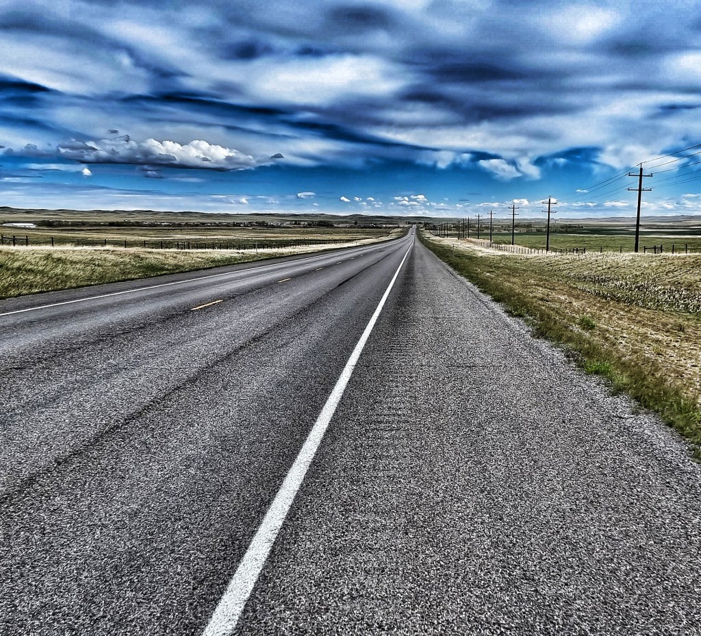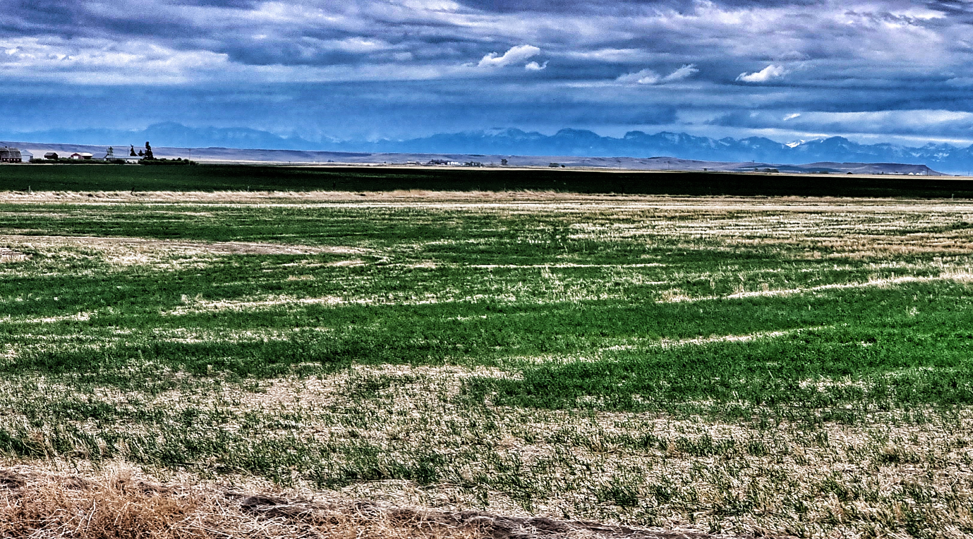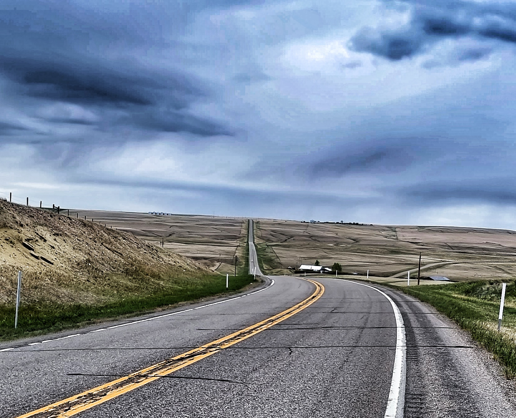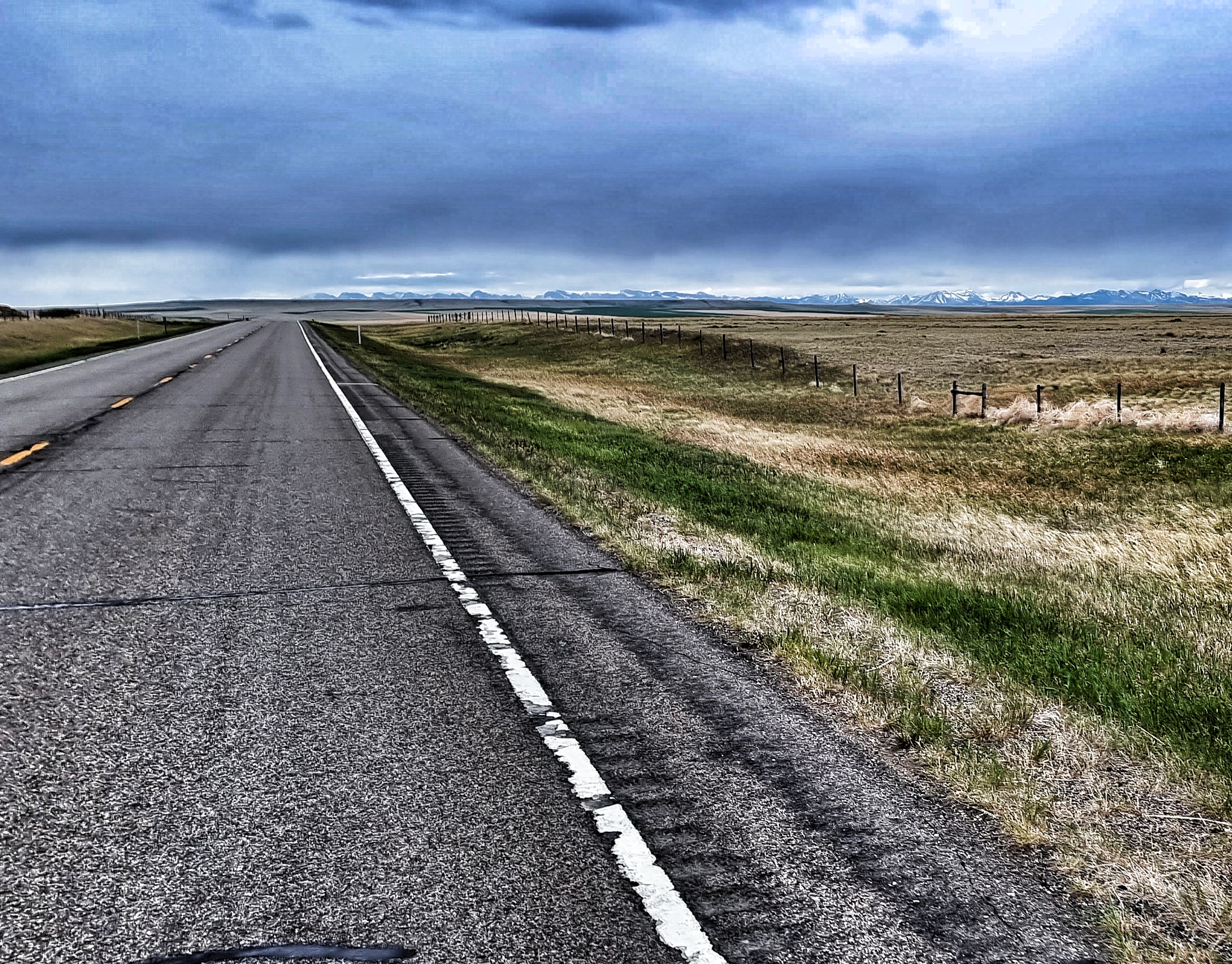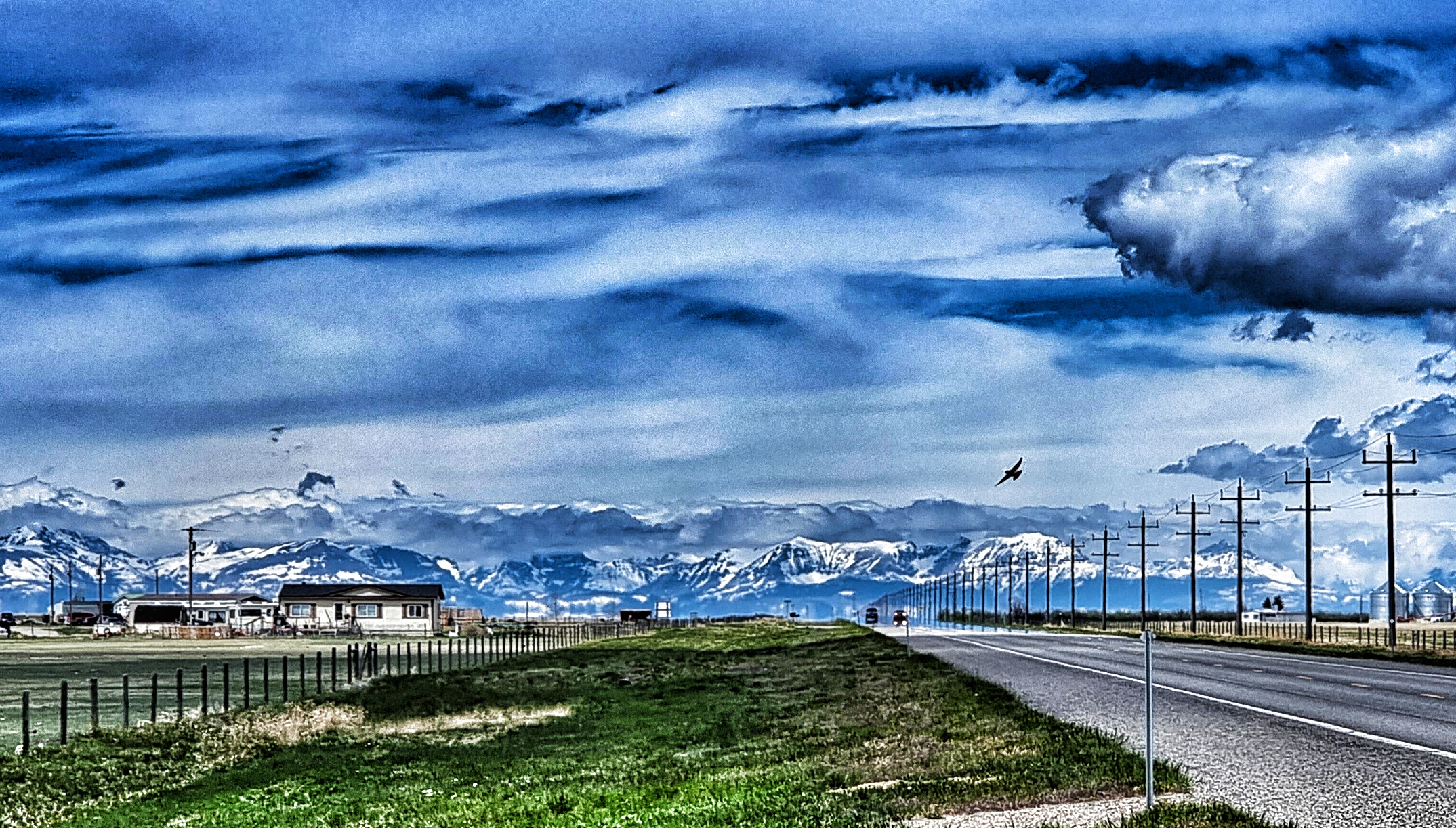 We were on straight, undulating roads again today & the breeze was behind us for the first section of today’s ride. We could still make out the snow-caps on The Rockies away to our right as they stretched north into Canada & south towards Wyoming.