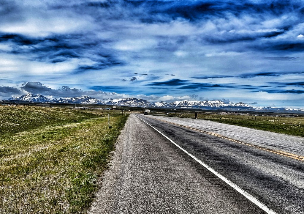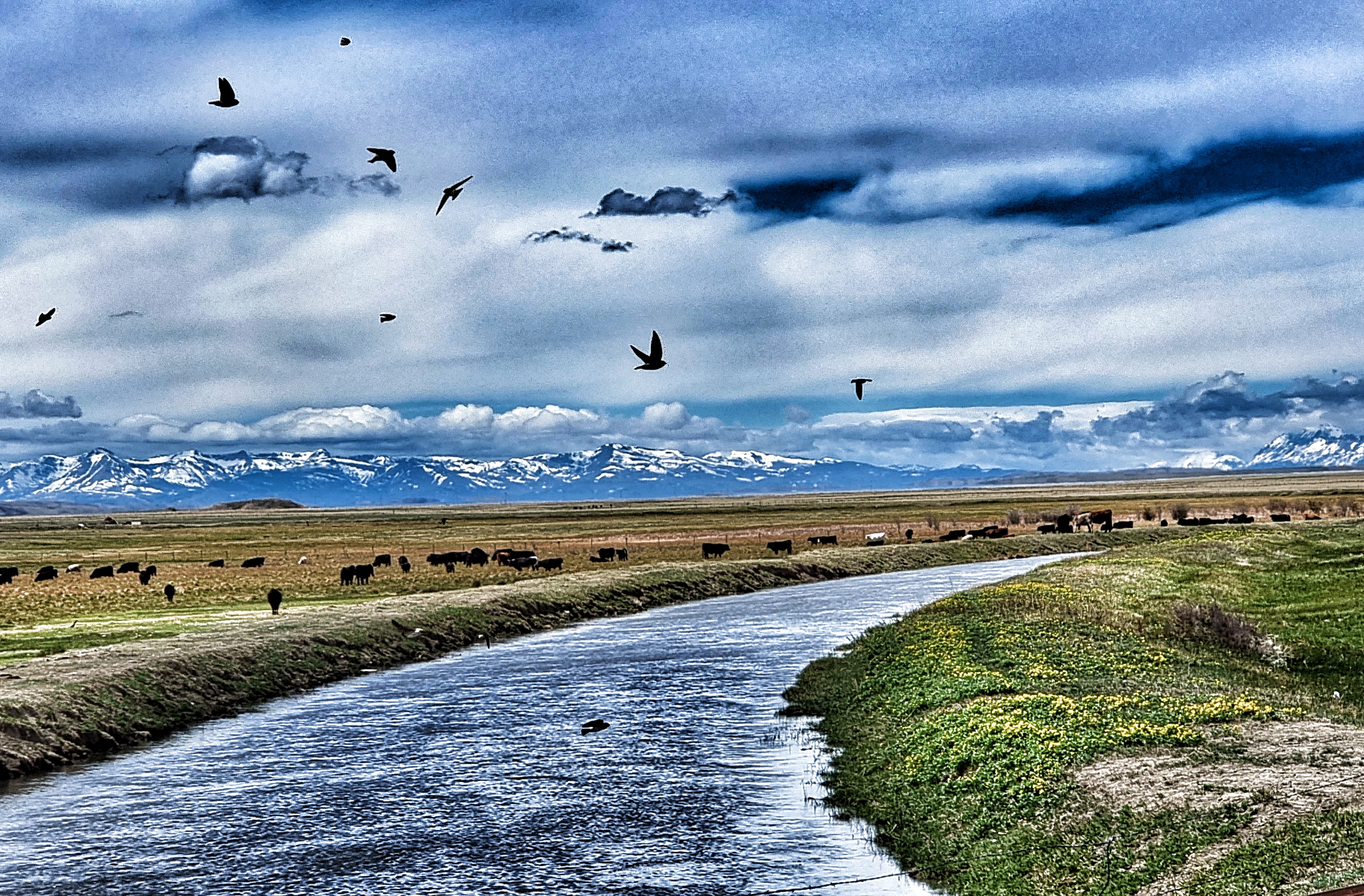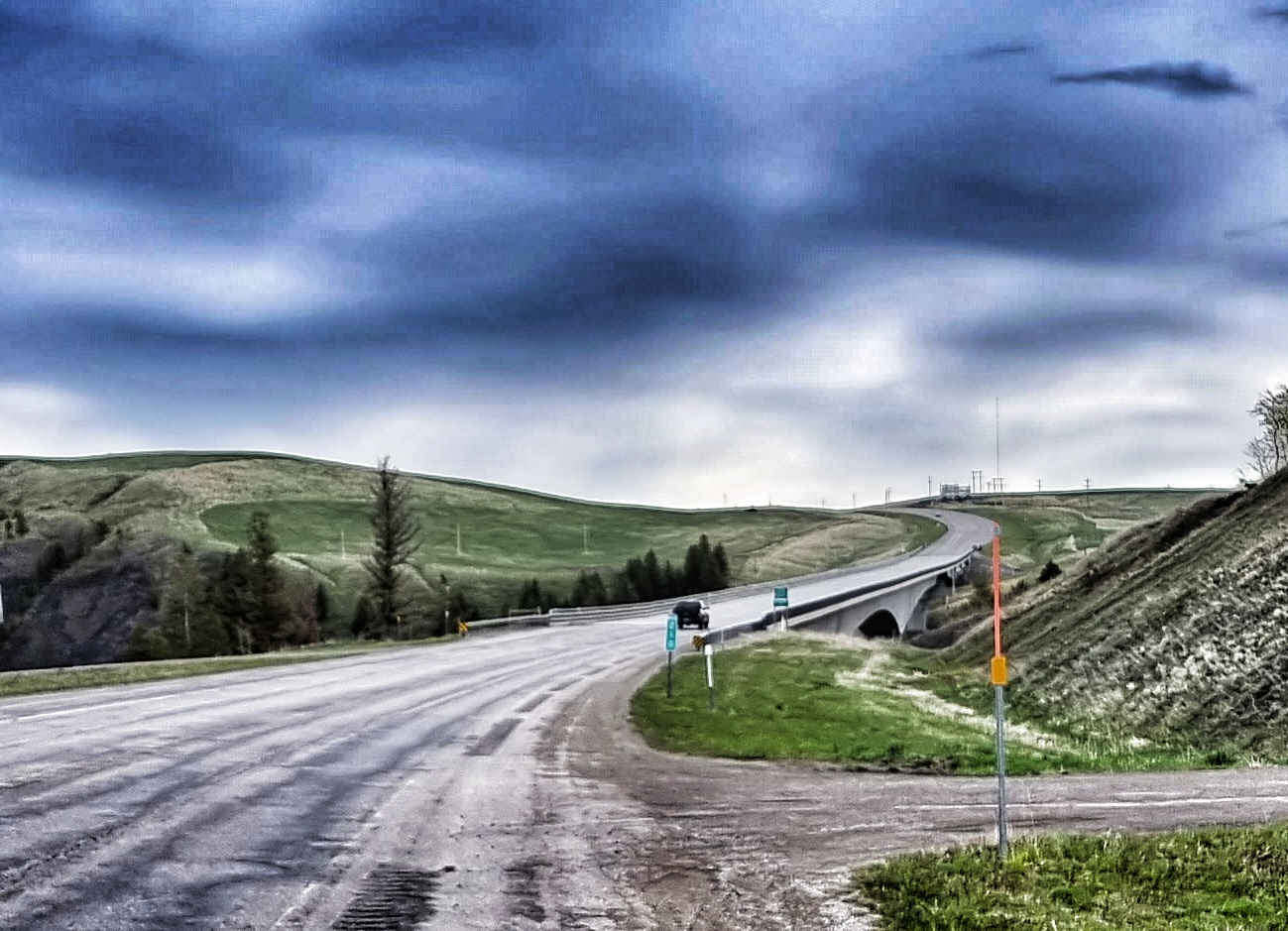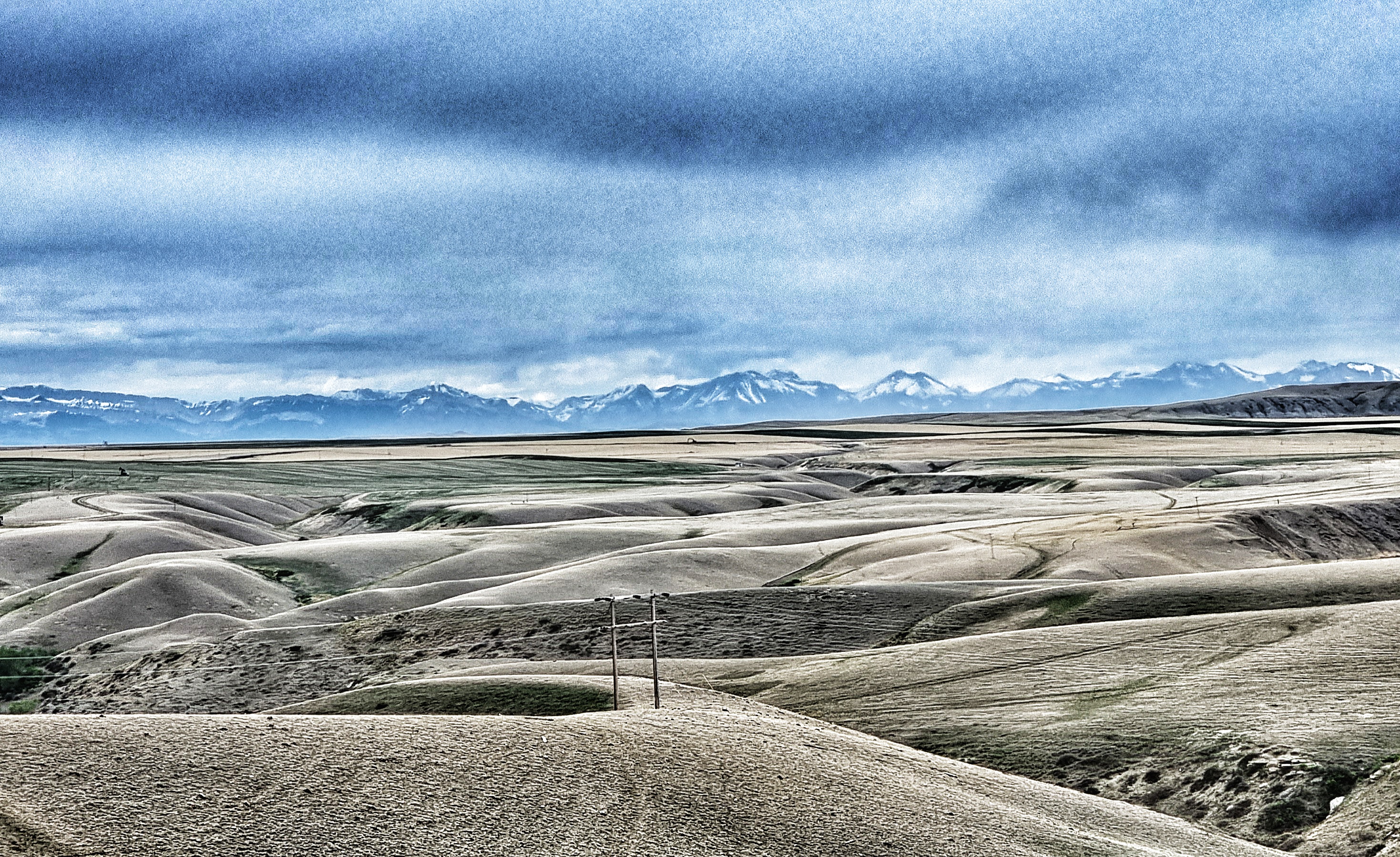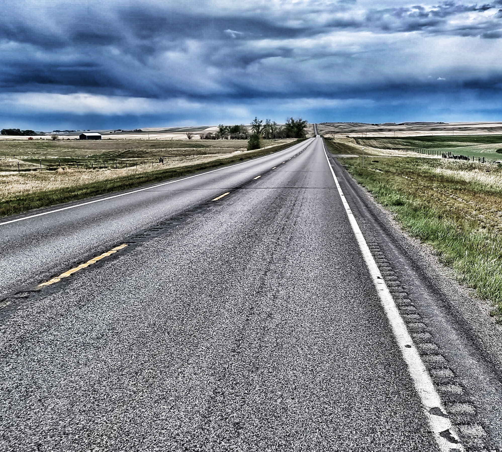 We were on straight, undulating roads again today & the breeze was behind us for the first section of today’s ride. We could still make out the snow-caps on The Rockies away to our right as they stretched north into Canada & south towards Wyoming.