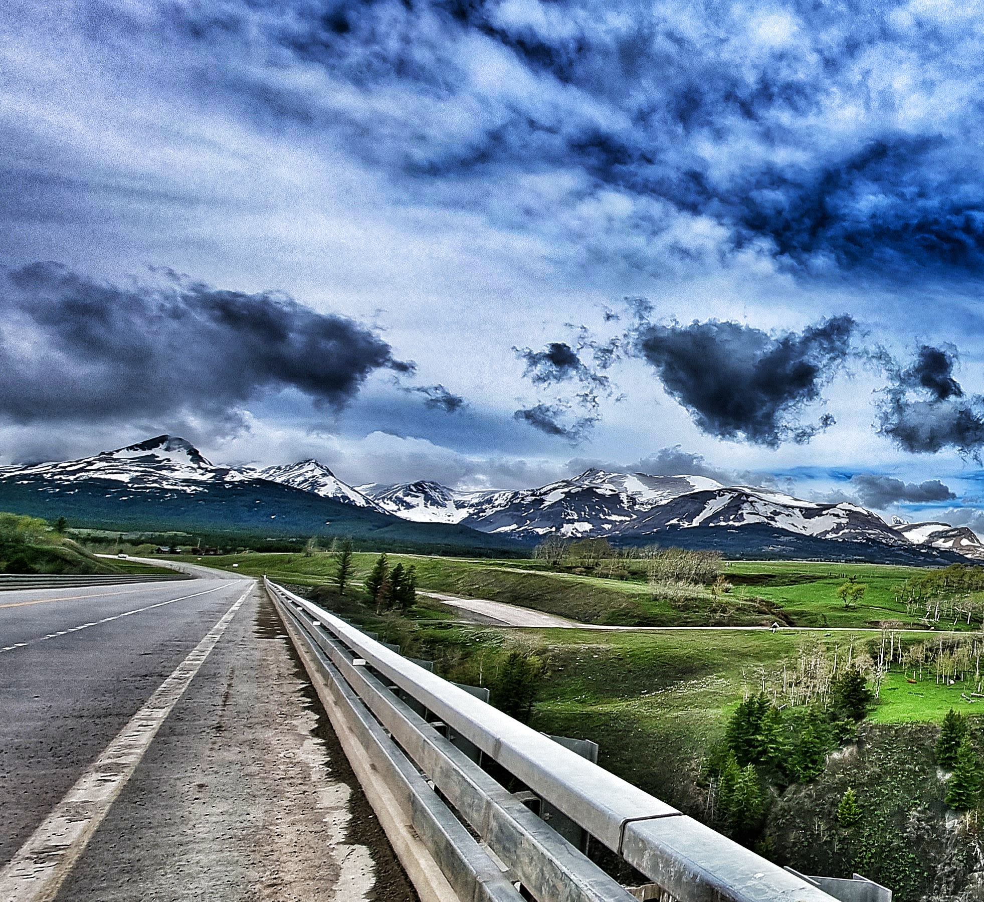 Leaving Browning behind, the road turned slightly to the left & our friendly tailwind returned as we flew along the pan-flat, almost deserted road at upwards of 20mph – it wasn’t quite a full-blown tailwind but was very enjoyable!! I stopped occasionally to take a look behind at the snowy peaks as they slowly receded, although I feel I may continue to see them for a little while yet.