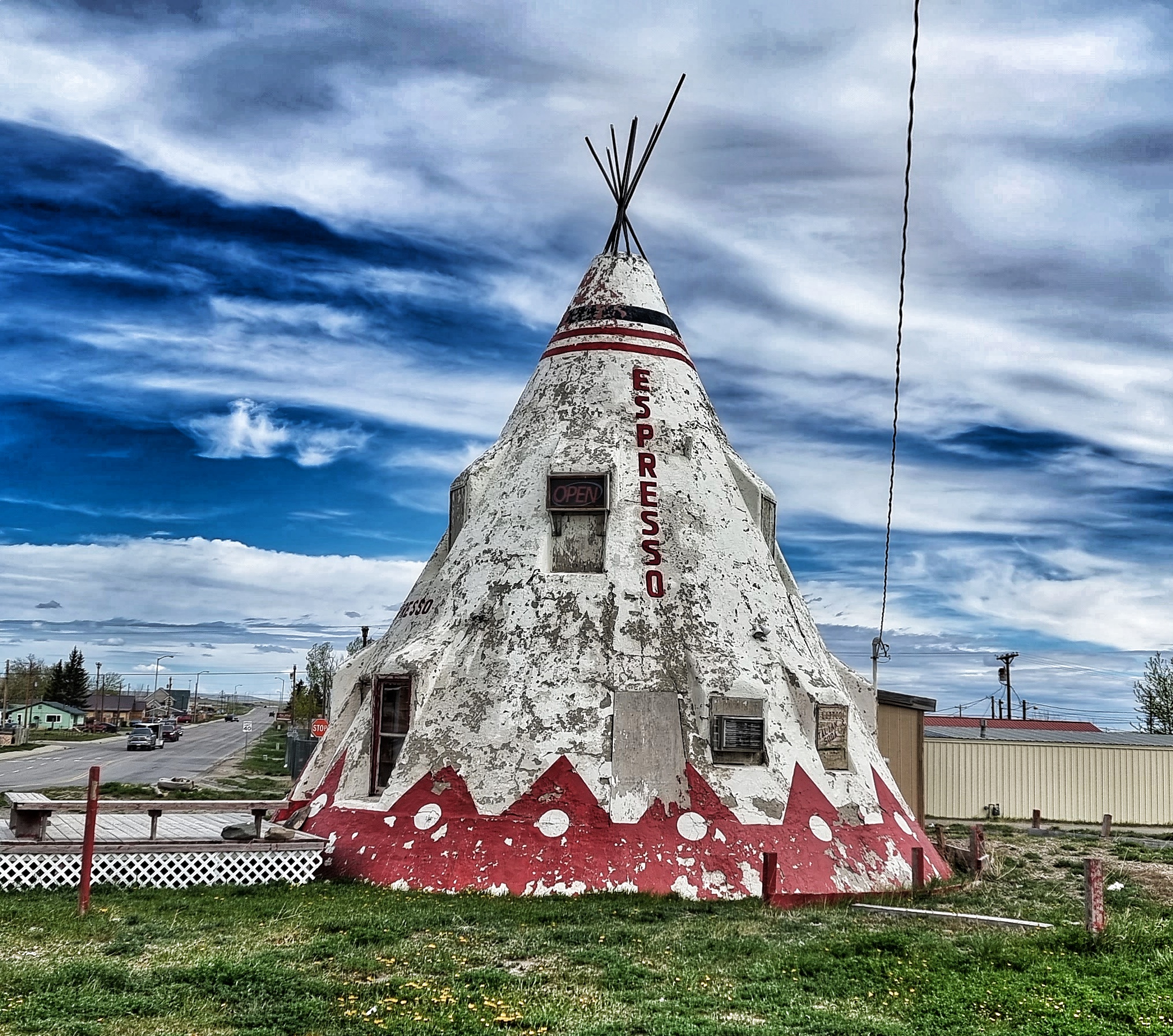 Browning is the headquarters for the Blackfeet Indian Reservation & is the only incorporated town on the Reservation. As we passed the Heritage Centre, I stopped to spend some time reading about the history of the Blackfeet & also to take in the wonderful exhibit which set out The Myth Of Creation. It’s a small town with about 880 inhabitants & it was clear that a number of businesses have struggled over the last couple of years – sadly this cool espresso teepee was one of those that had closed.