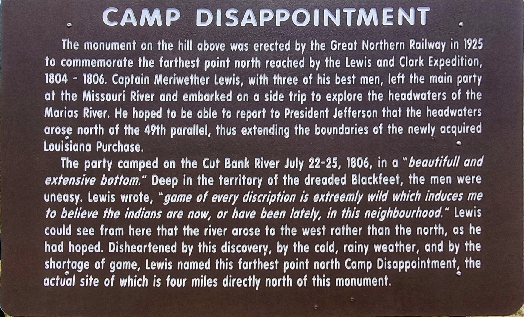 We stopped briefly at a Historical Point of Interest – these are indicated by brown signs & we’ve learned to look out for them, as they add a flavour of what life was like 125 to 200 years ago. Today we found out about Captain Meriwether Lewis & his experiences that led to the naming of Camp Disappointment. This was also the moment when the road altered direction enough to give us a full-on tailwind! We also had our first experience of the huge grain elevation silos that border the railroad tracks in this part of Montana.
