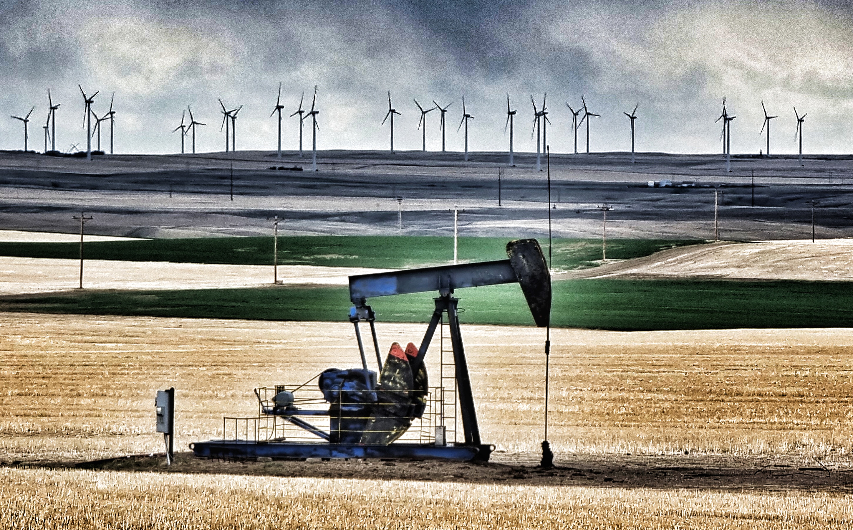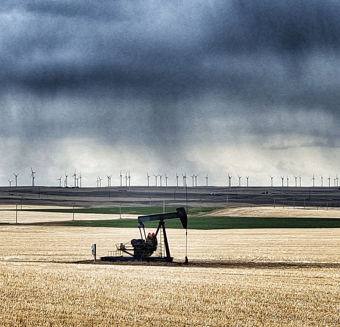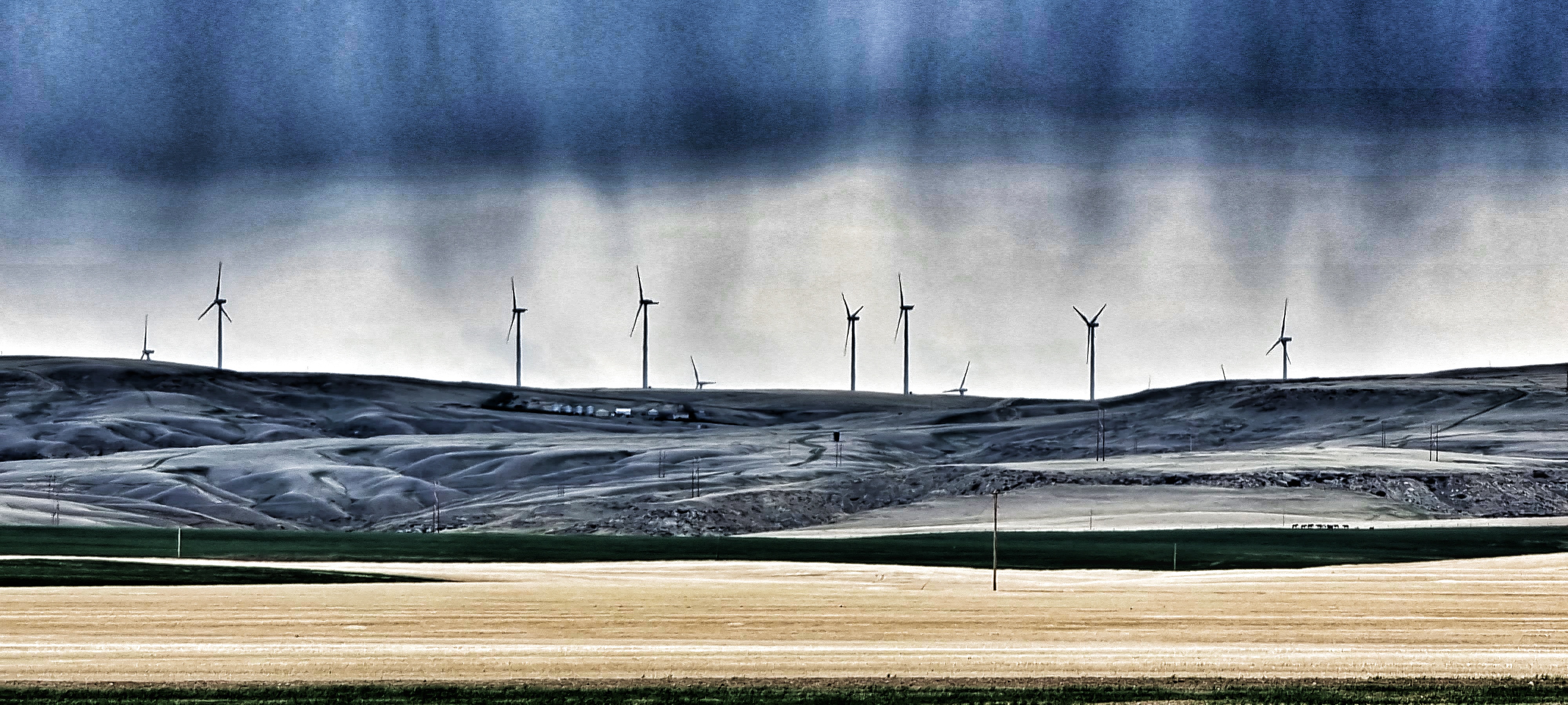 Turning to our right there were showers falling on the present & the future of America’s energy needs – a nodding donkey drawing up oil from below, while another wind farm harvested nature’s raw power. It was clear the showers were very localised, as the mountains remained in view throughout the ride.