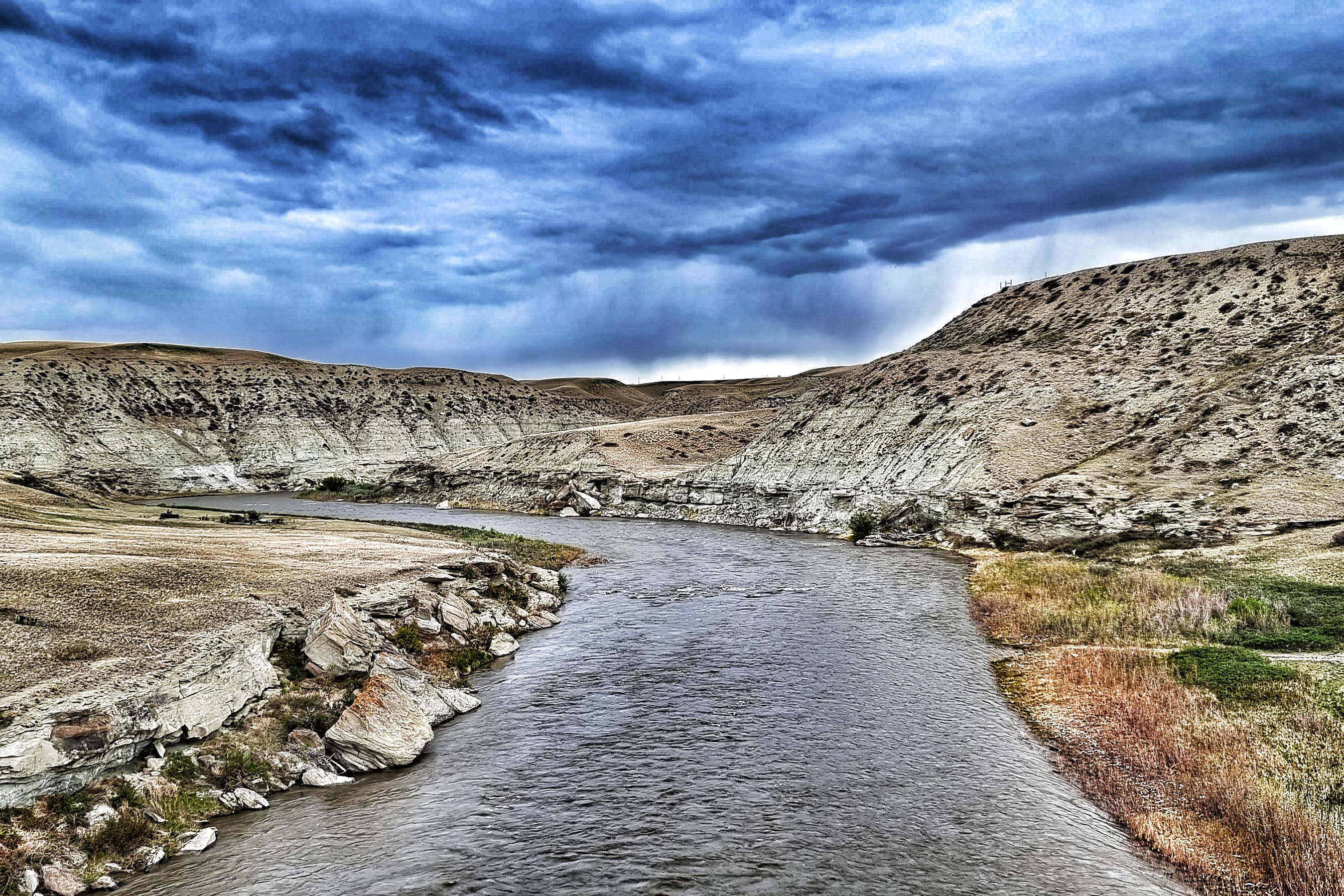 We stopped at a monument to the Two Medicine Fight Site, where the only violent encounter of the Lewis, Clark & Discovery Corps expedition took place in July 1806. There were differing accounts of what took place & why, however, what isn’t in doubt is that this was the first military conflict between US forces & a plains tribe. The site itself is on Blackfeet Nation land & requires permission to visit it. Crossing the Two Medicine river very little has changed in the intervening 200 years.