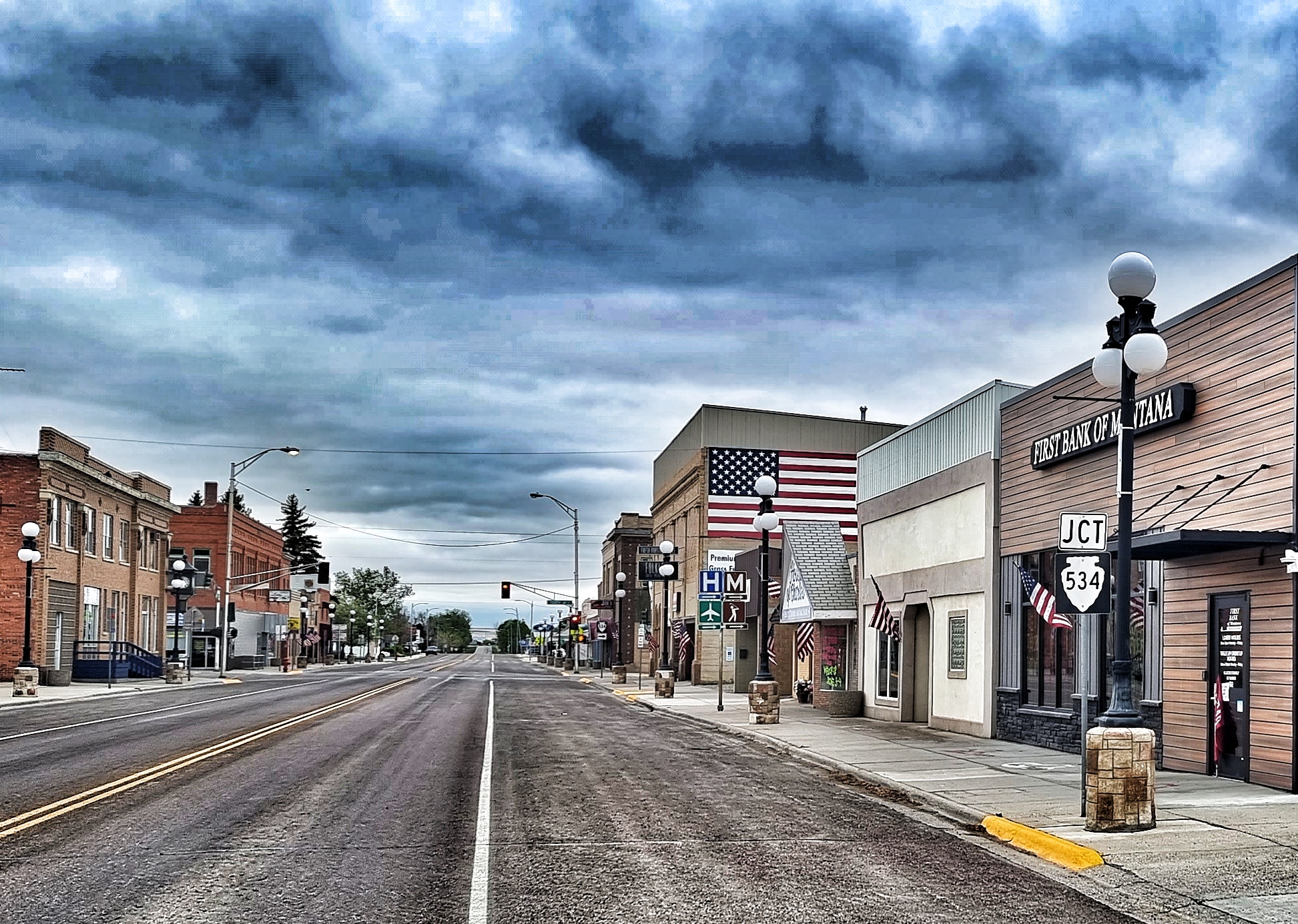 Monday 30th May is Memorial Day in the USA & most of Conrad was closed to enjoy the Bank Holiday. We took the opportunity to take a stroll along Main Street & then return via Front Street which bordered the railroad. Walking along Main Street, the first thing we noticed was that almost every building had a Stars & Stripes flag flying. As we reached 4th Street I spotted an old map of Conrad that had been drawn on chipboard in 1986 & mounted on the wall. The town has spent a significant amount of effort retaining the 1950’s vibe & it was a look that worked.
