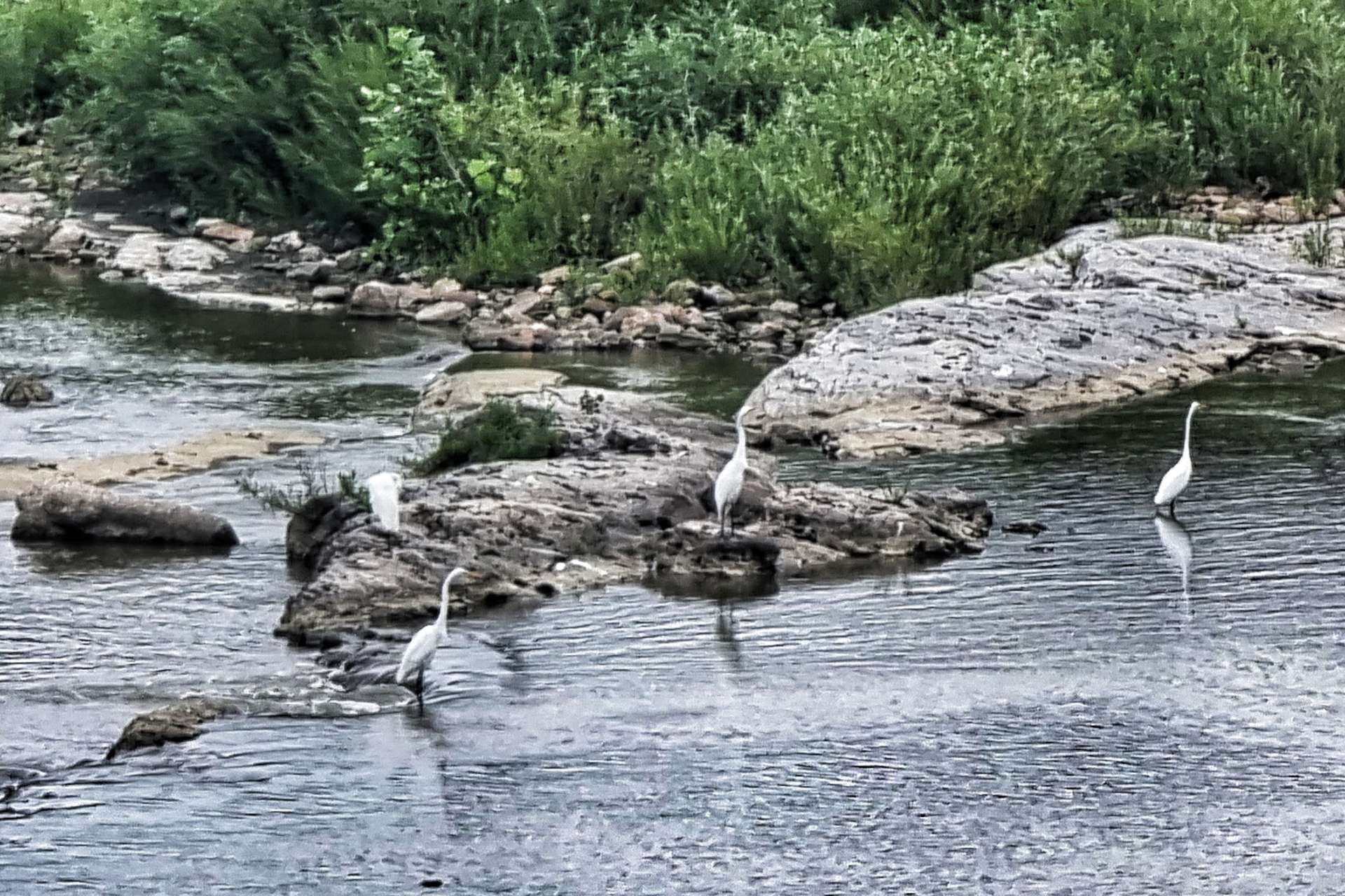 We were on our way by 9.30am (a slightly shorter ride today), under leaden grey skies – rain is forecast for late morning / early afternoon, so we’re expecting to get wet at some point today. We re-traced our tyre tracks the 5 miles back to Stockbridge, where we picked up the White River again & warmed up our legs on a couple of steep ramps that took us over some bluffs.